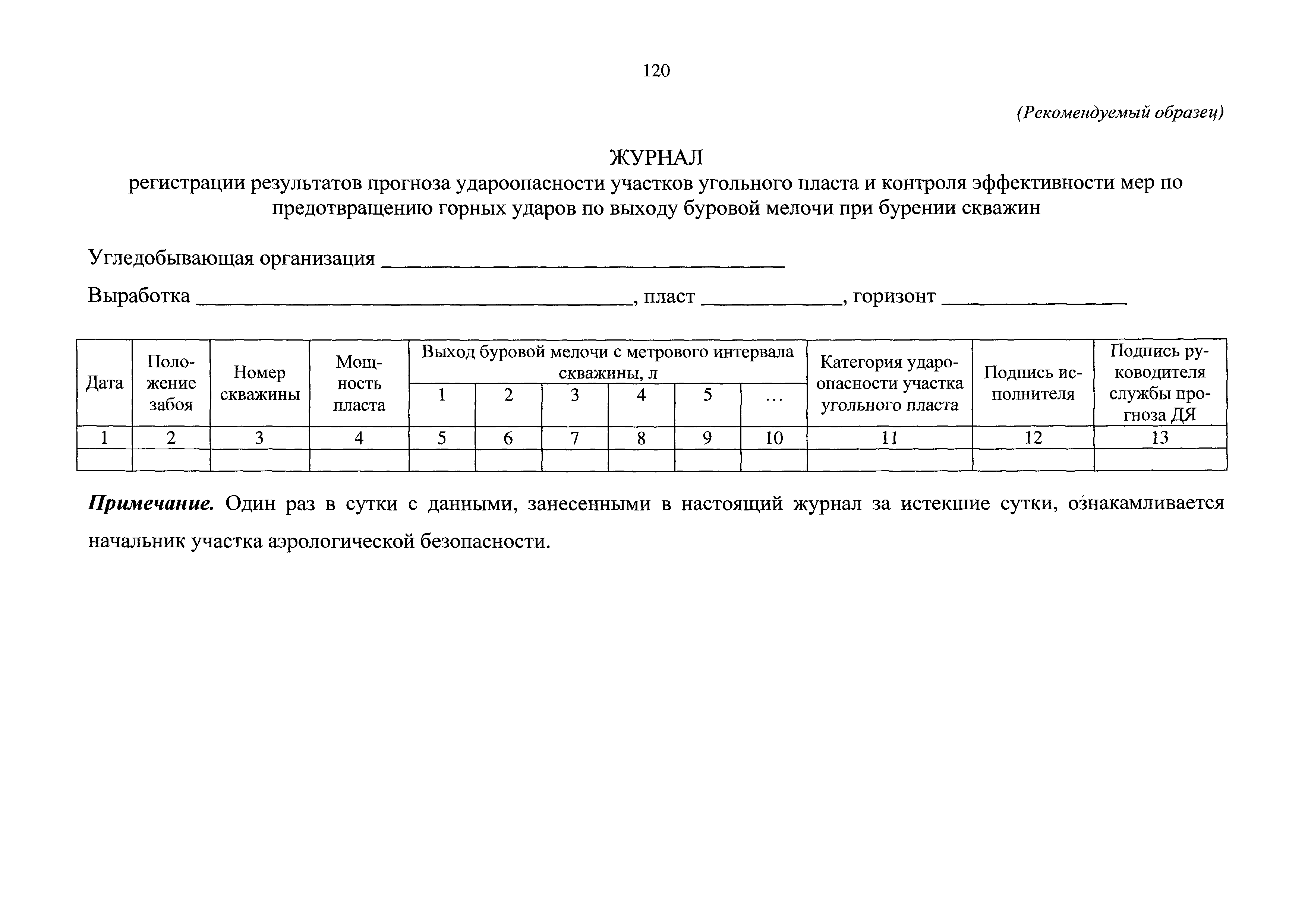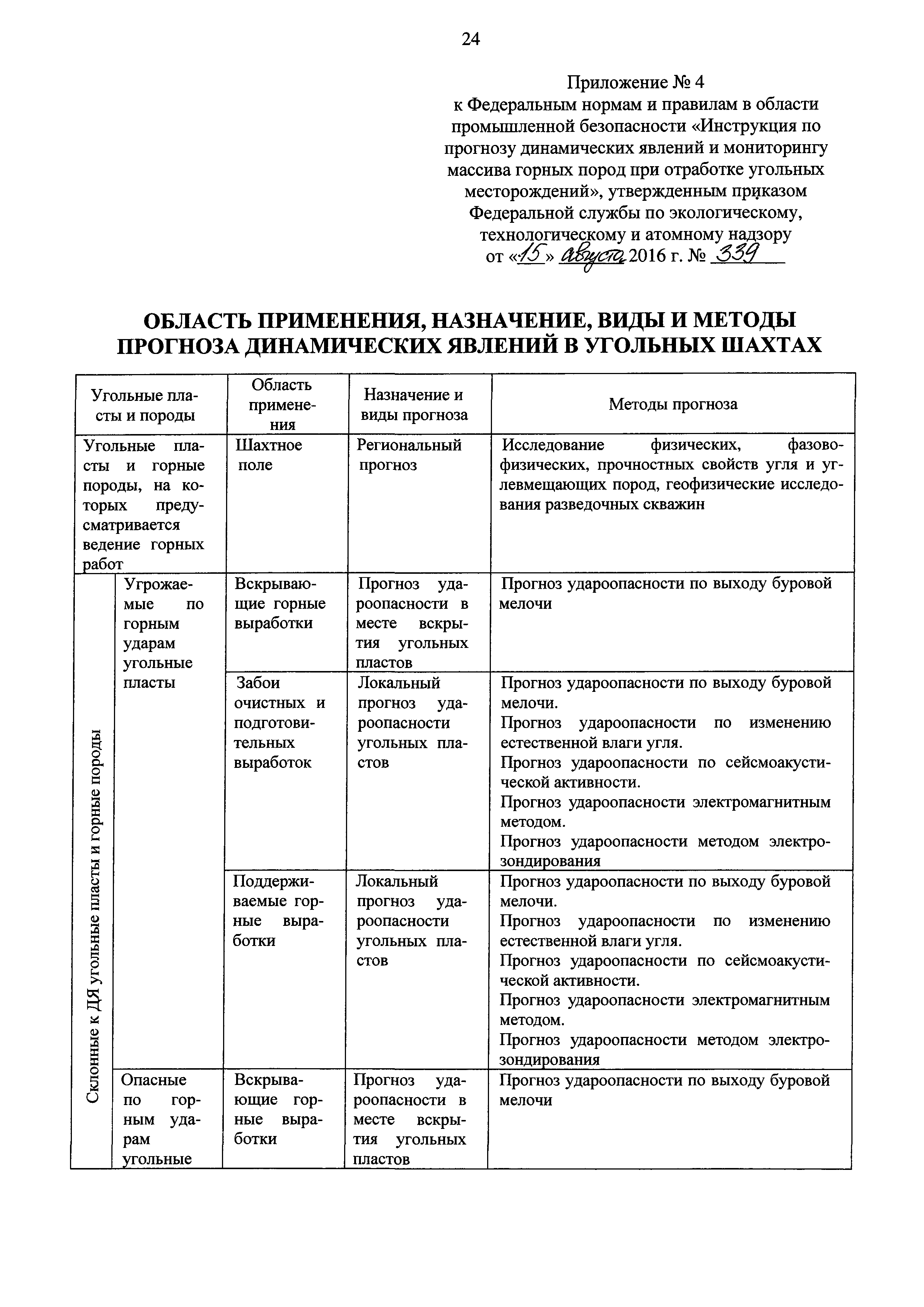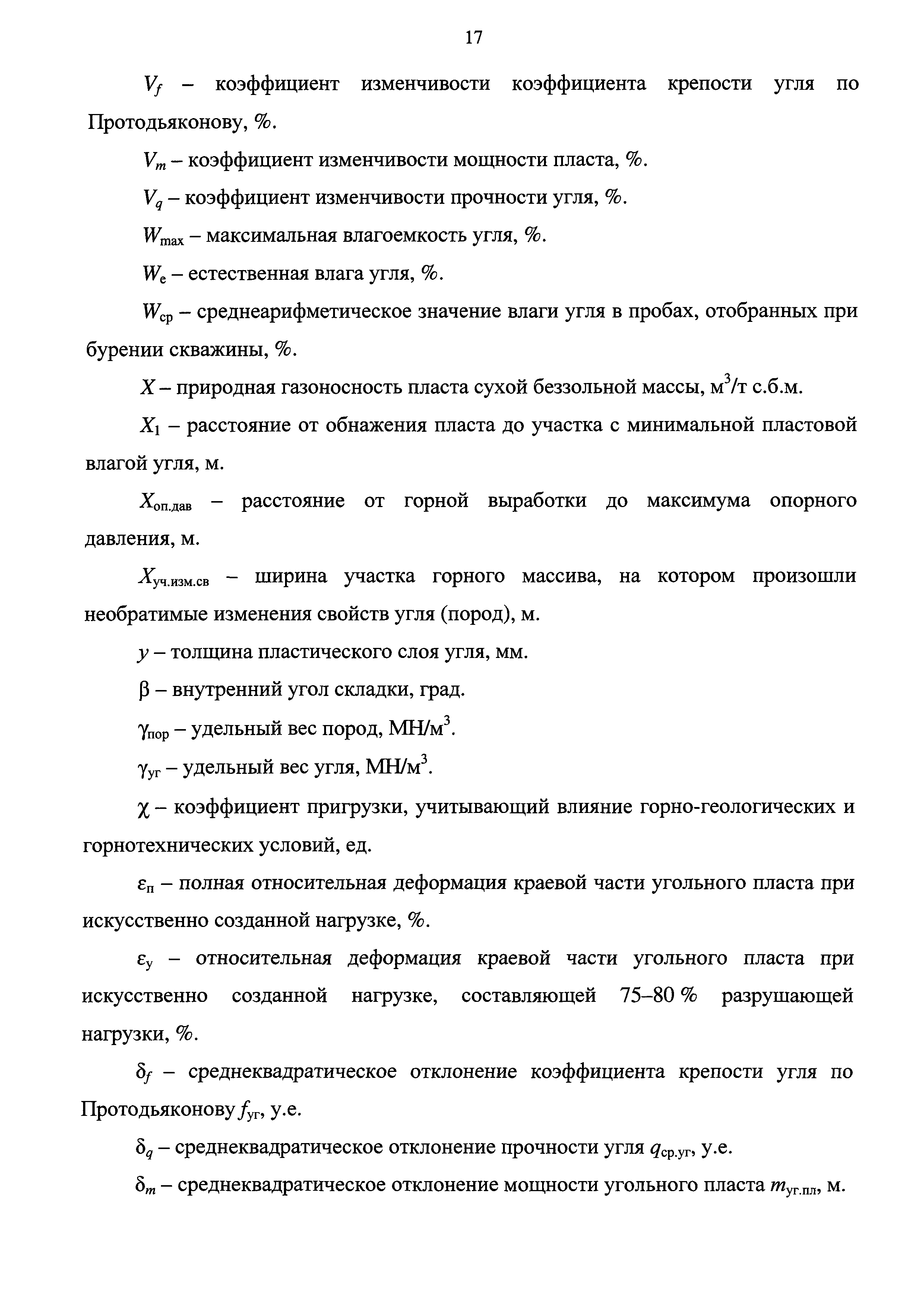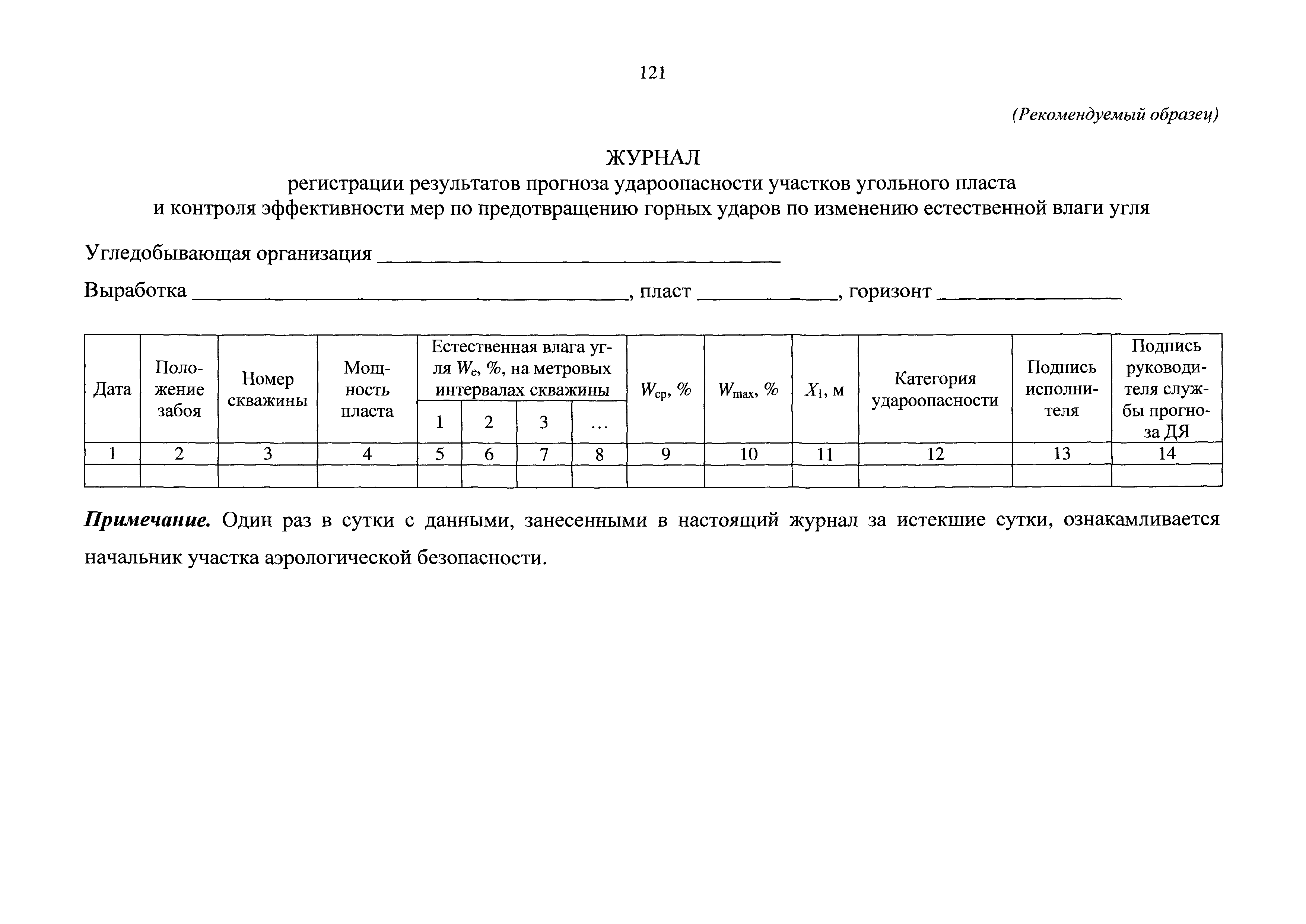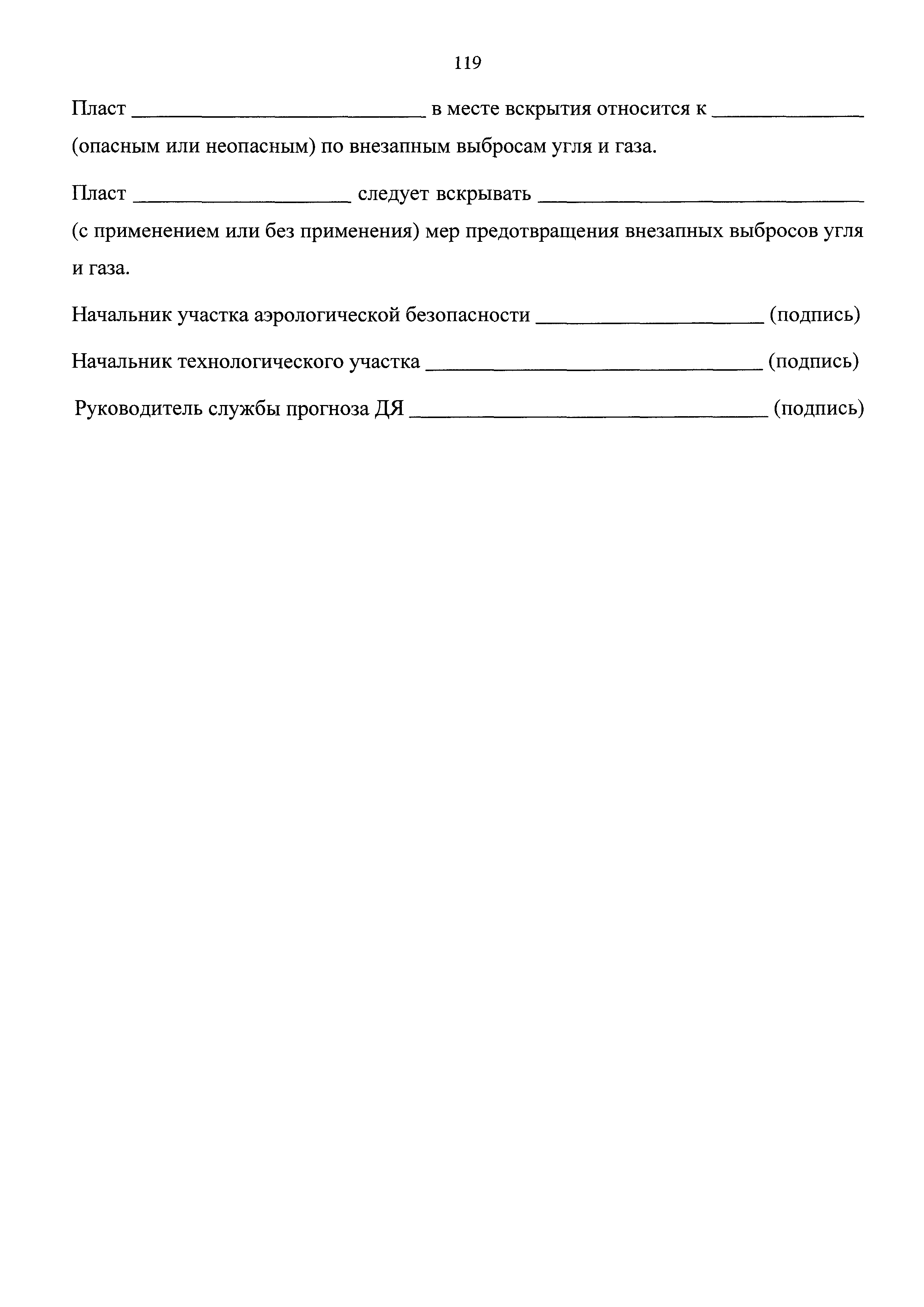 | Оглавление: | Приложение № 1. Условные обозначения Приложение № 2. Признаки динамических явлений и события, предшествующие динамическим явлениям Приложение № 3. Геодинамическое районирование участка недр Приложение № 4. Область применения, назначения, виды и методы прогноза динамических явлений в угольных шахтах Приложение № 5. Порядок проведения регионального прогноза по данным, полученным при ведении геолого-разведочных работ Приложение № 6. Порядок проведения регионального прогноза по непрерывным сейсмоакустическим наблюдениям Приложение № 7. Порядок проведения прогноза динамических явлений в месте вскрытия склонных к динамическим явления угольных пластов и склонных к динамическим явлениям горных пород Приложение № 8. Методы локального прогноза Приложение № 9. Порядок проведения локального прогноза удароопасности угольных пластов Приложение № 10. Методы текущего прогноза удароопасности угольных пластов Приложение № 11. Методы прогноза удароопасности горных пород Приложение № 12. Порядок проведения локального прогноза выбросоопасных угольных пластов Приложение № 13. Методы текущего прогноза выбросоопасности угольных пластов Приложение № 14. Порядок и методы прогноза выбросоопасности горных пород Приложение № 15. Методы и порядок проведения прогноза динамических разрушений пород почвы горных выработок Приложение № 16. Метод прогноза внезапных выдавливаний угля Приложение № 17. Метод прогноза динамических разрушений пород почвы с интенсивным газовыделением Приложение № 18. Порядок мониторинга массива горных пород Приложение № 19. Меры предотвращения динамических явлений Приложение № 20. Порядок и методы контроля эффективности мер по предотвращению динамических явлений Приложение № 21. Порядок определения выхода буровой мелочи Приложение № 22. Определение прочности и коэффициента крепости угля по Протодьяконову Приложение № 23. Порядок определения начальной скорости газовыделения Приложение № 24. Порядок проведения разведочных и контрольных наблюдений на склонных к внезапным выбросам угля и газа угольных пластах Приложение № 25. Акт определения выбросоопасности пласта в месте вскрытия угольного пласта |