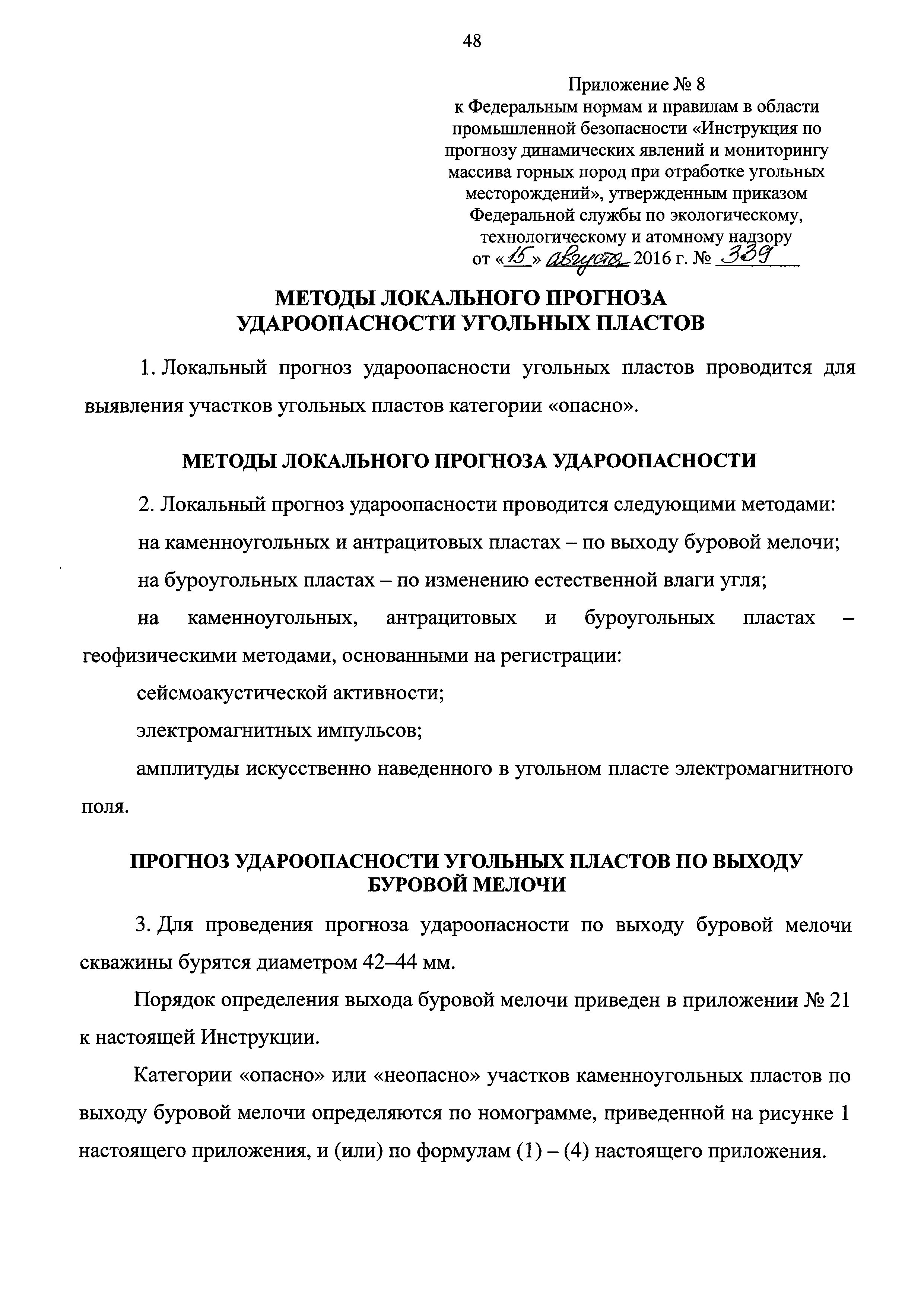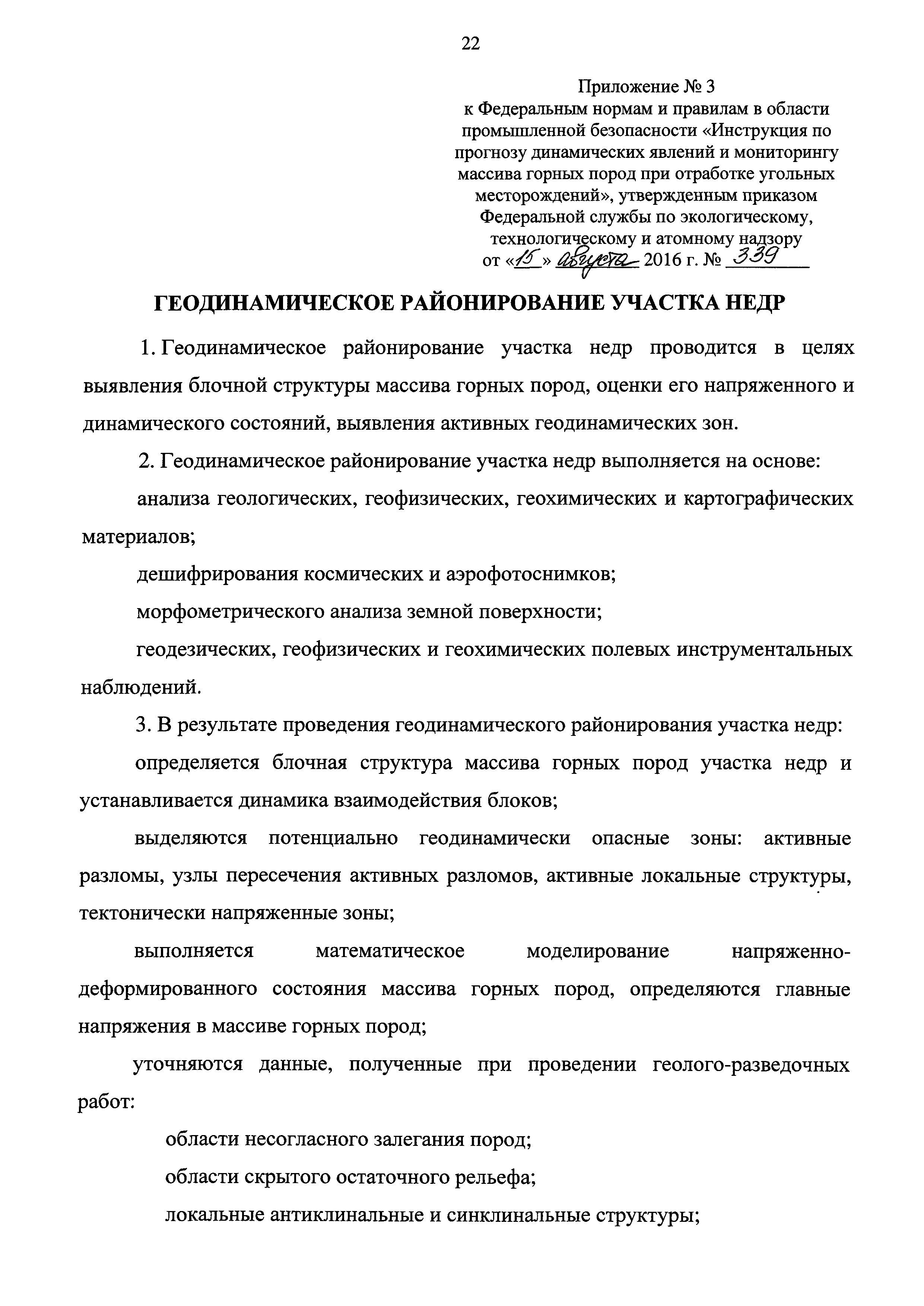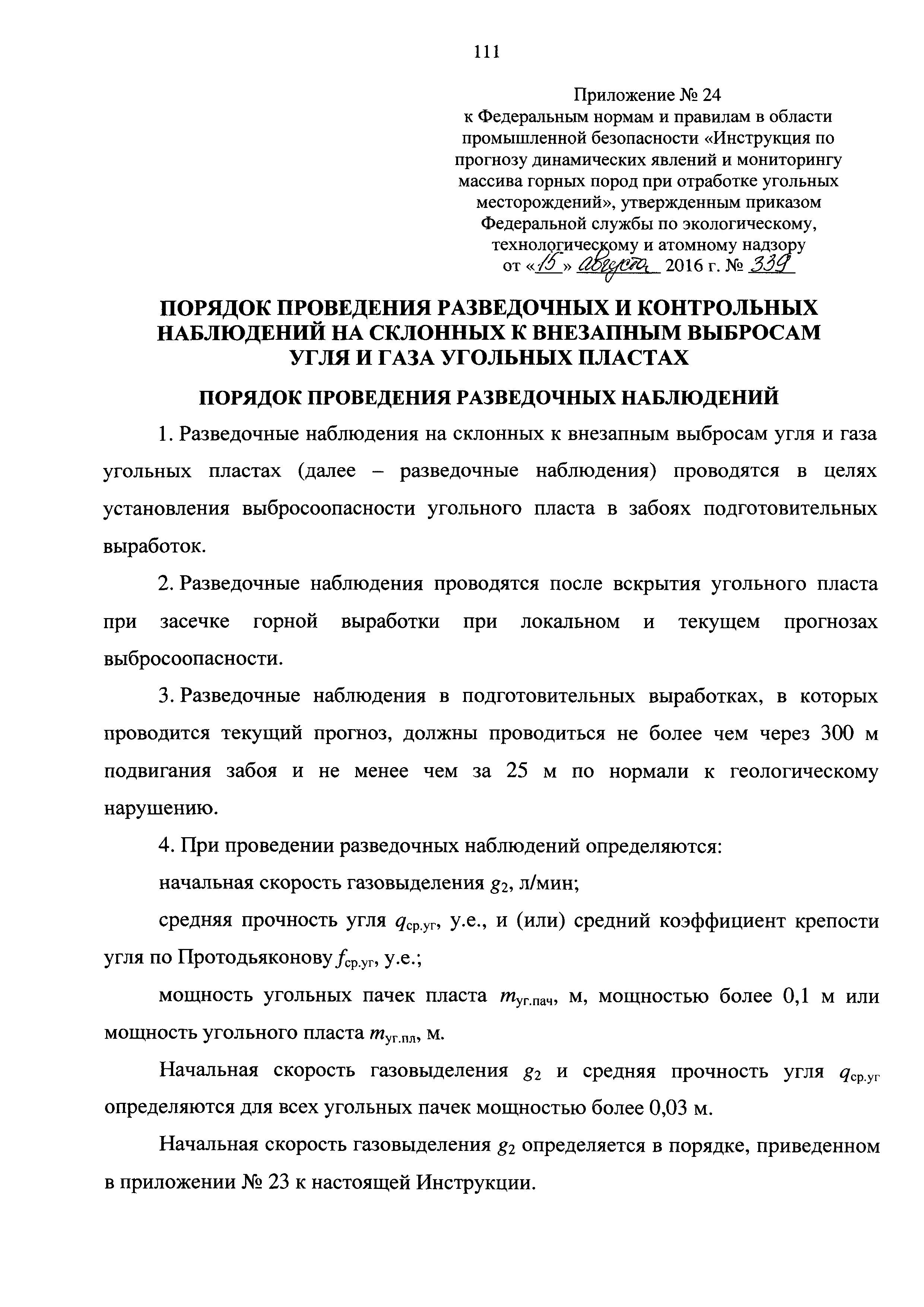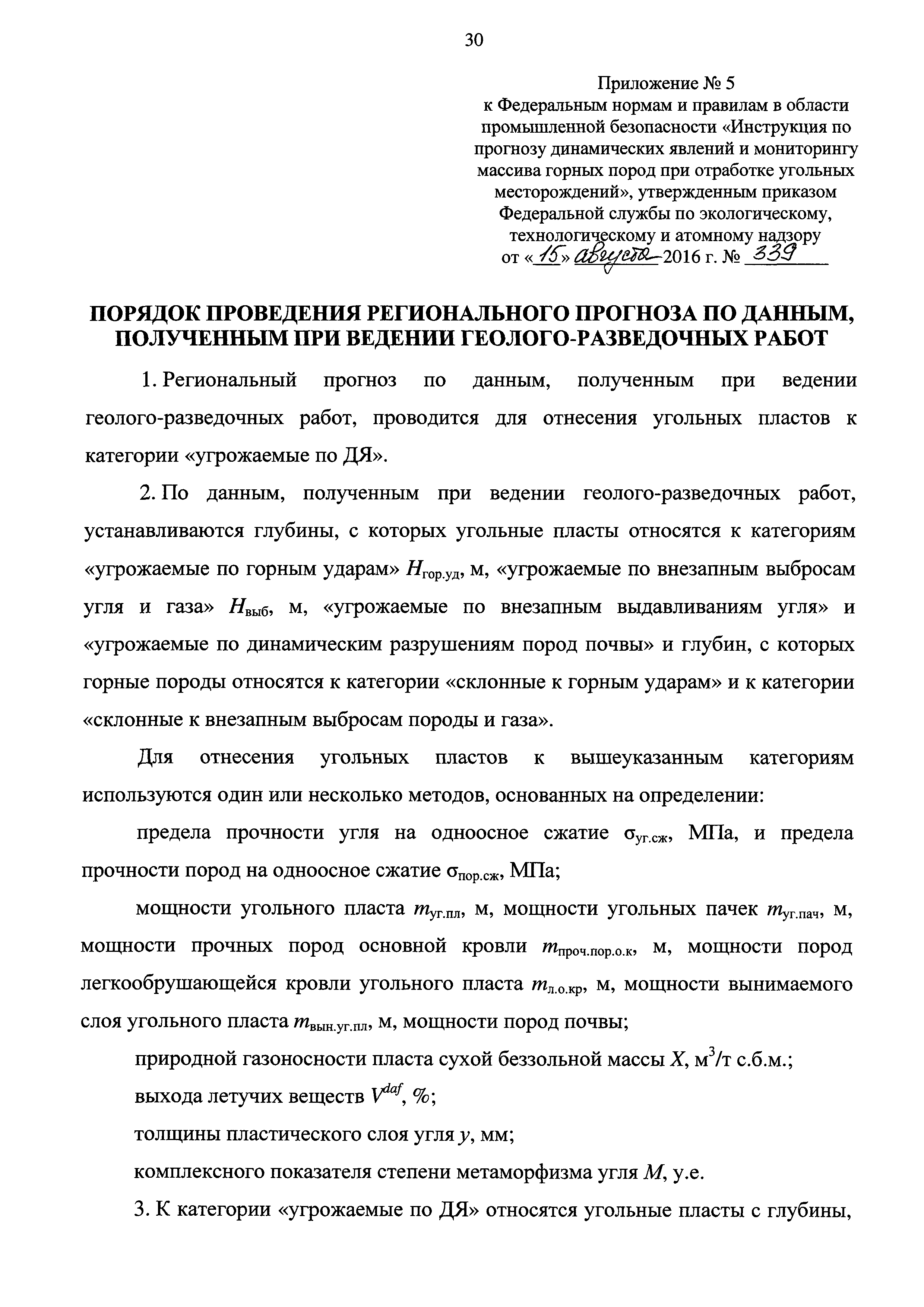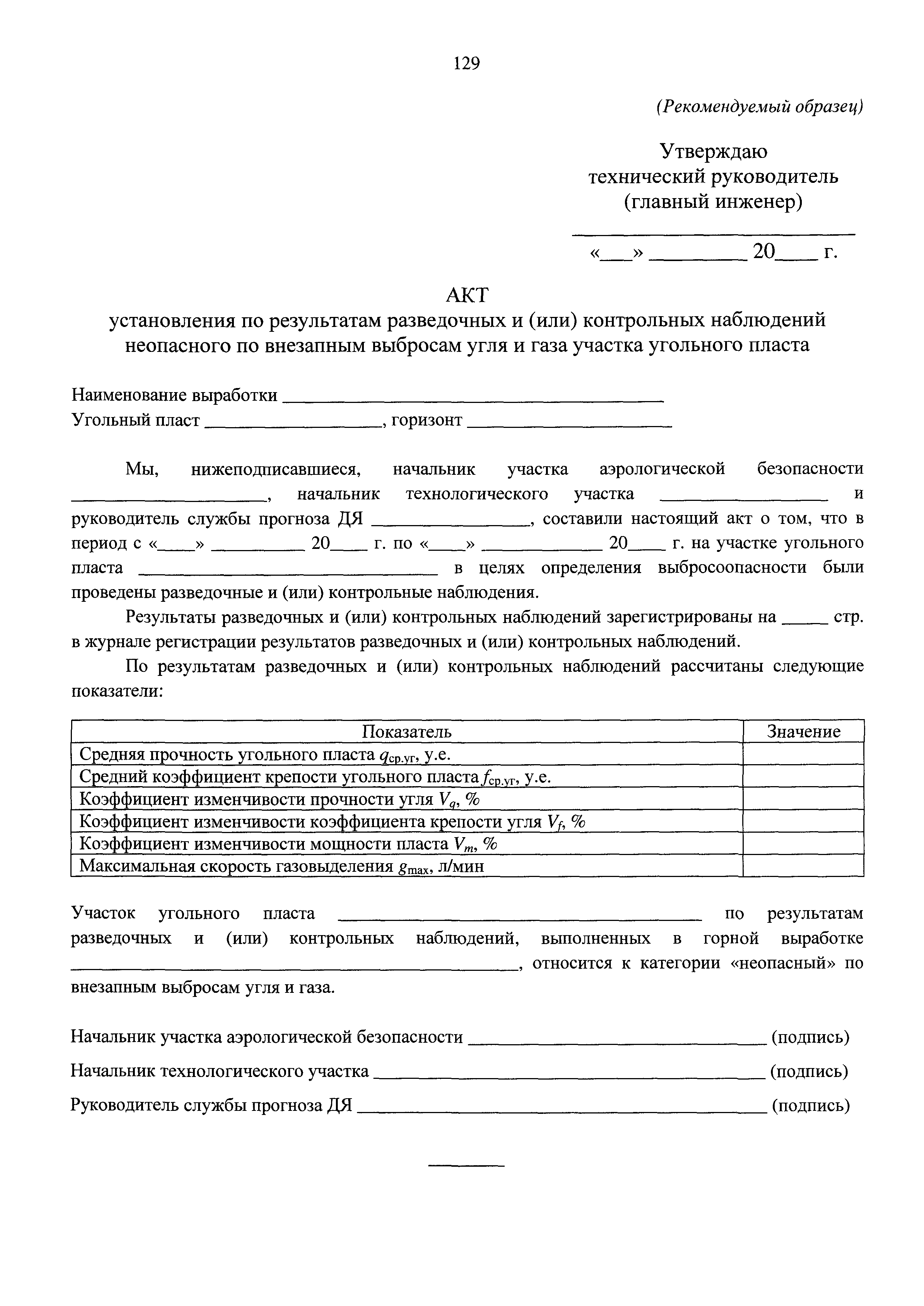 | Оглавление: | Приложение № 1. Условные обозначения Приложение № 2. Признаки динамических явлений и события, предшествующие динамическим явлениям Приложение № 3. Геодинамическое районирование участка недр Приложение № 4. Область применения, назначения, виды и методы прогноза динамических явлений в угольных шахтах Приложение № 5. Порядок проведения регионального прогноза по данным, полученным при ведении геолого-разведочных работ Приложение № 6. Порядок проведения регионального прогноза по непрерывным сейсмоакустическим наблюдениям Приложение № 7. Порядок проведения прогноза динамических явлений в месте вскрытия склонных к динамическим явления угольных пластов и склонных к динамическим явлениям горных пород Приложение № 8. Методы локального прогноза Приложение № 9. Порядок проведения локального прогноза удароопасности угольных пластов Приложение № 10. Методы текущего прогноза удароопасности угольных пластов Приложение № 11. Методы прогноза удароопасности горных пород Приложение № 12. Порядок проведения локального прогноза выбросоопасных угольных пластов Приложение № 13. Методы текущего прогноза выбросоопасности угольных пластов Приложение № 14. Порядок и методы прогноза выбросоопасности горных пород Приложение № 15. Методы и порядок проведения прогноза динамических разрушений пород почвы горных выработок Приложение № 16. Метод прогноза внезапных выдавливаний угля Приложение № 17. Метод прогноза динамических разрушений пород почвы с интенсивным газовыделением Приложение № 18. Порядок мониторинга массива горных пород Приложение № 19. Меры предотвращения динамических явлений Приложение № 20. Порядок и методы контроля эффективности мер по предотвращению динамических явлений Приложение № 21. Порядок определения выхода буровой мелочи Приложение № 22. Определение прочности и коэффициента крепости угля по Протодьяконову Приложение № 23. Порядок определения начальной скорости газовыделения Приложение № 24. Порядок проведения разведочных и контрольных наблюдений на склонных к внезапным выбросам угля и газа угольных пластах Приложение № 25. Акт определения выбросоопасности пласта в месте вскрытия угольного пласта |