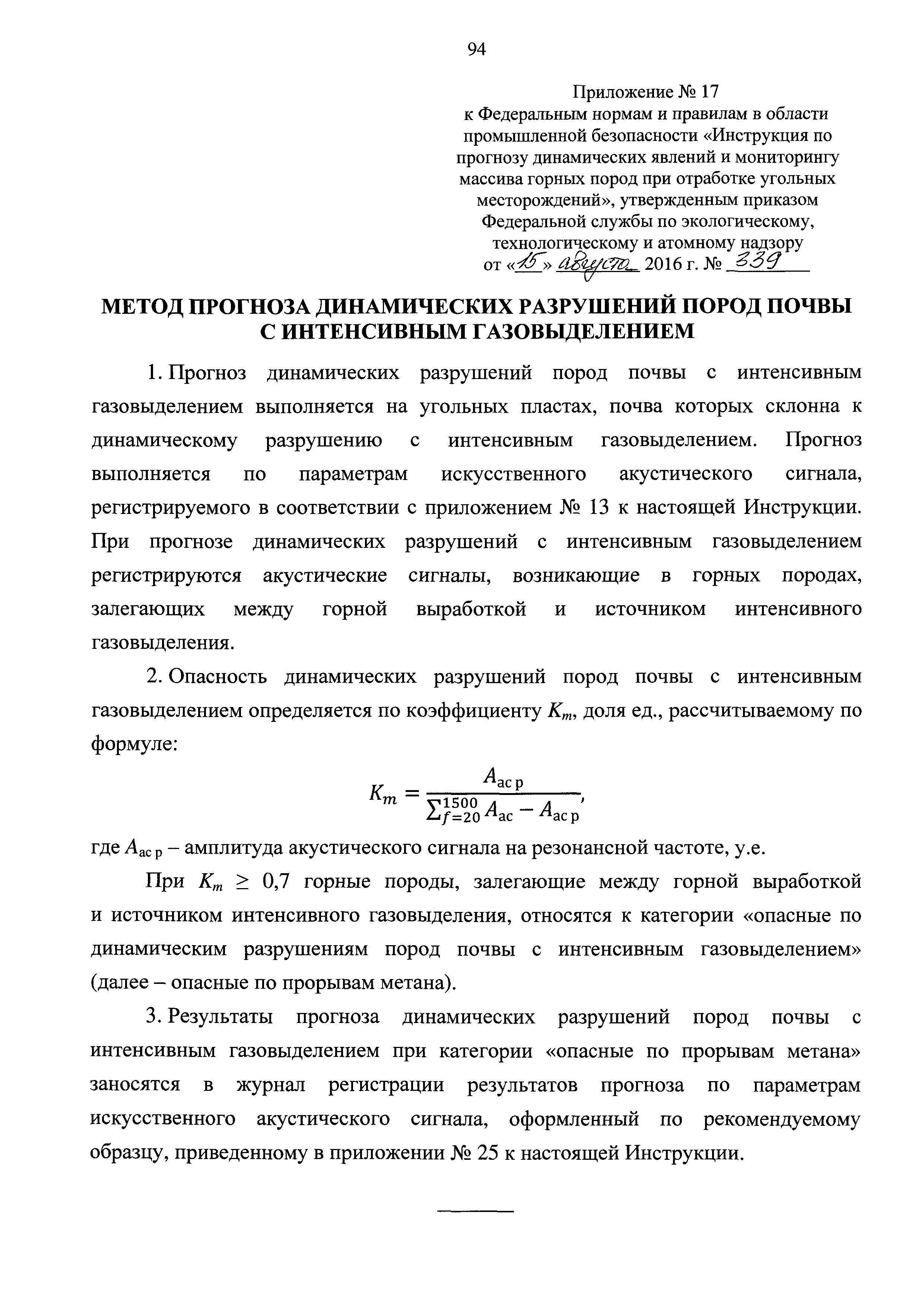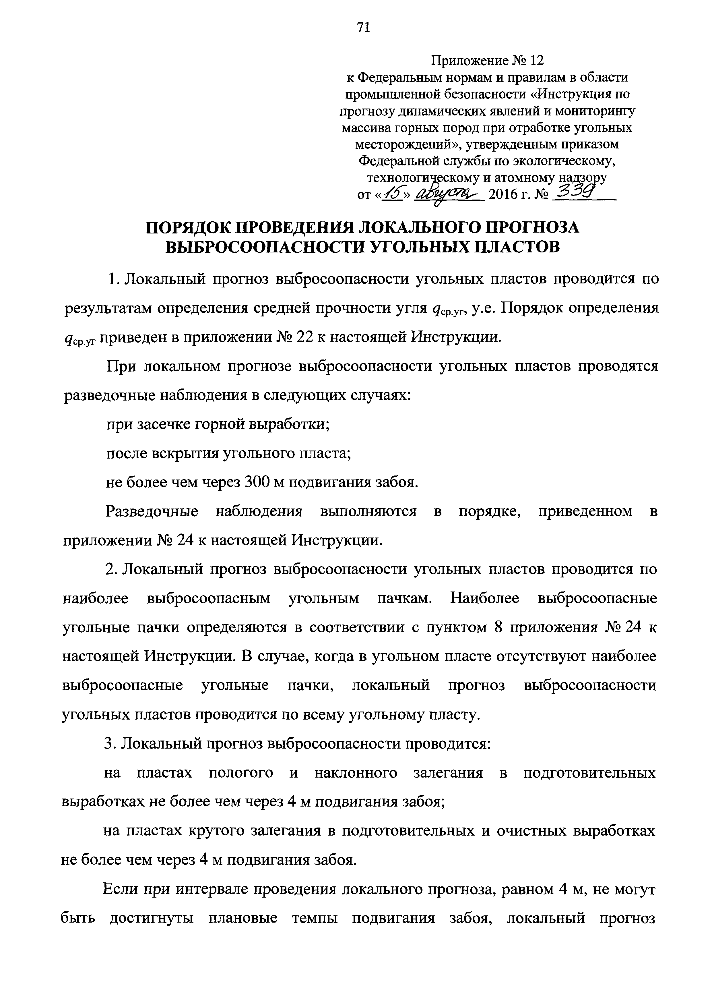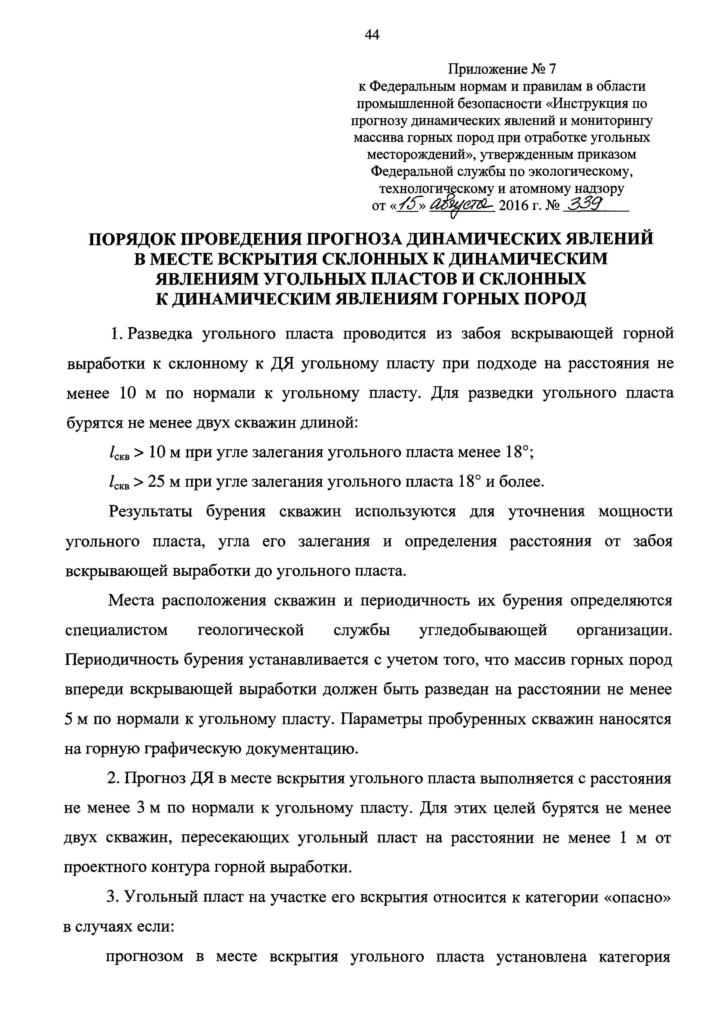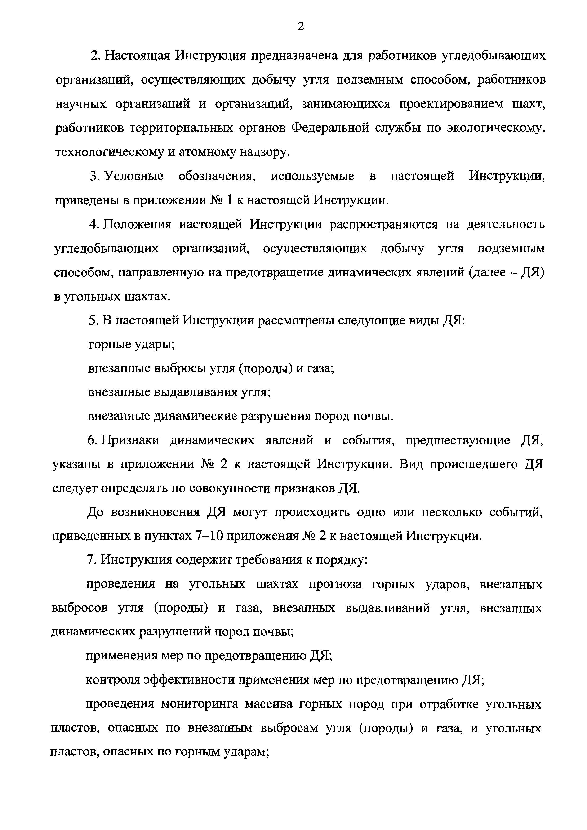 | Название рус.: | Федеральные нормы и правила в области промышленной безопасности "Инструкция по прогнозу динамических явлений и мониторингу массива горных пород при отработке угольных месторождений" |