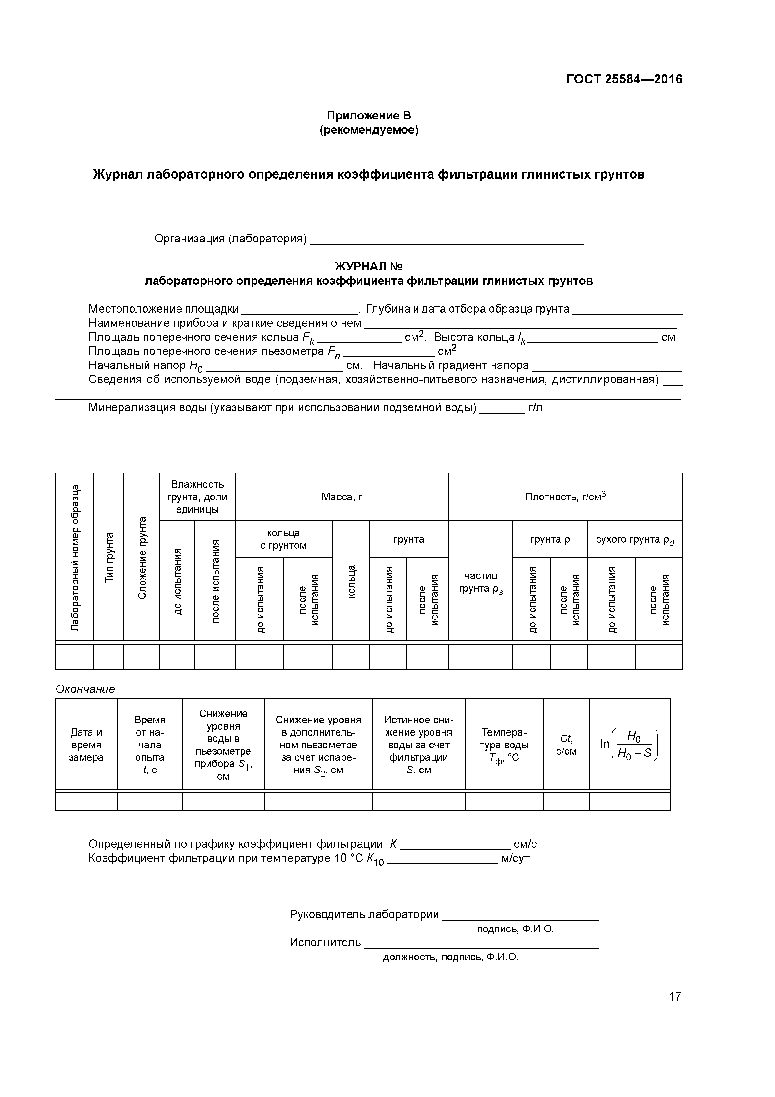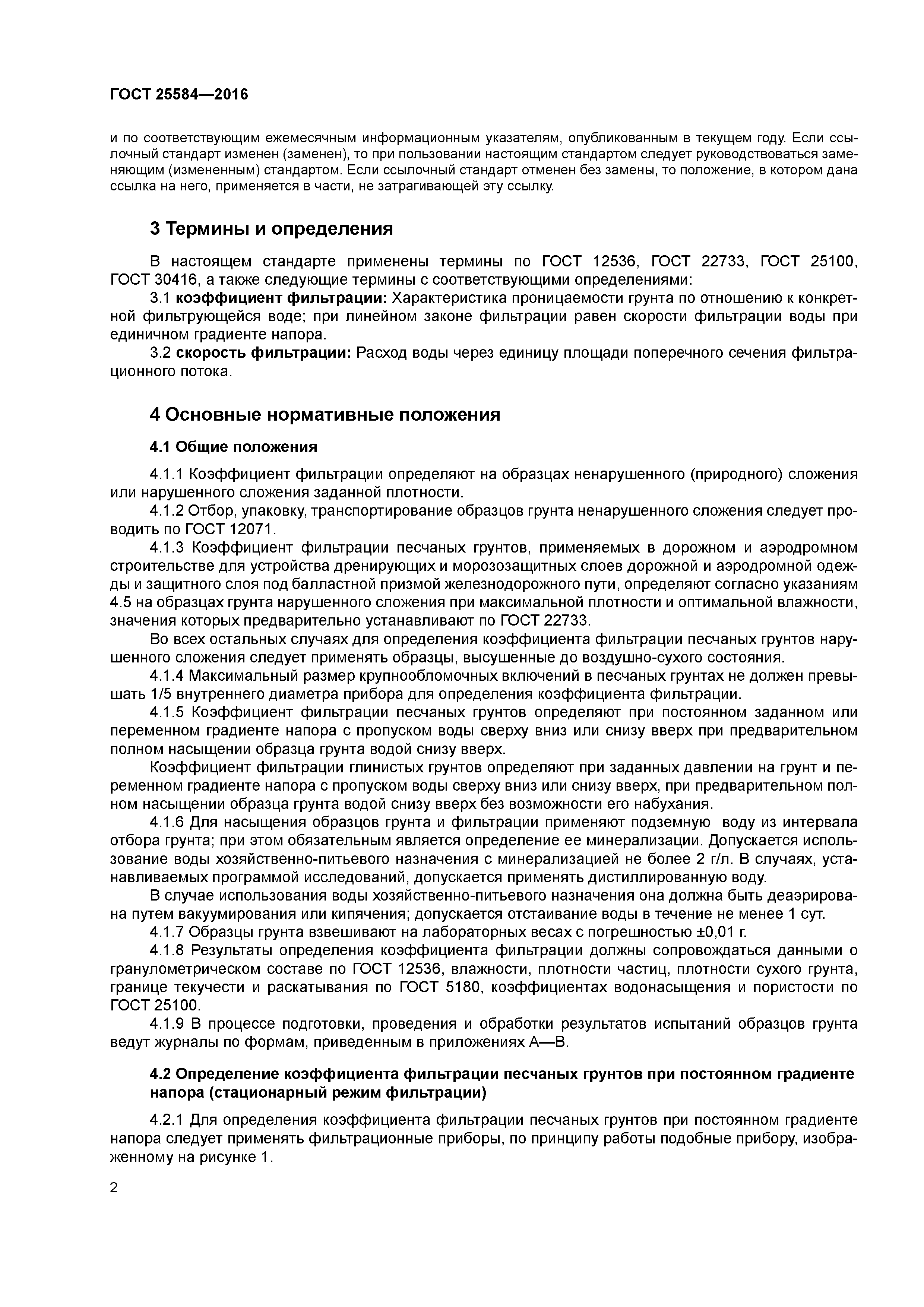 Скачать ГОСТ 25584-2016 Грунты. Методы лабораторного определения коэффициента фильтрацииДата актуализации: 01.01.2021