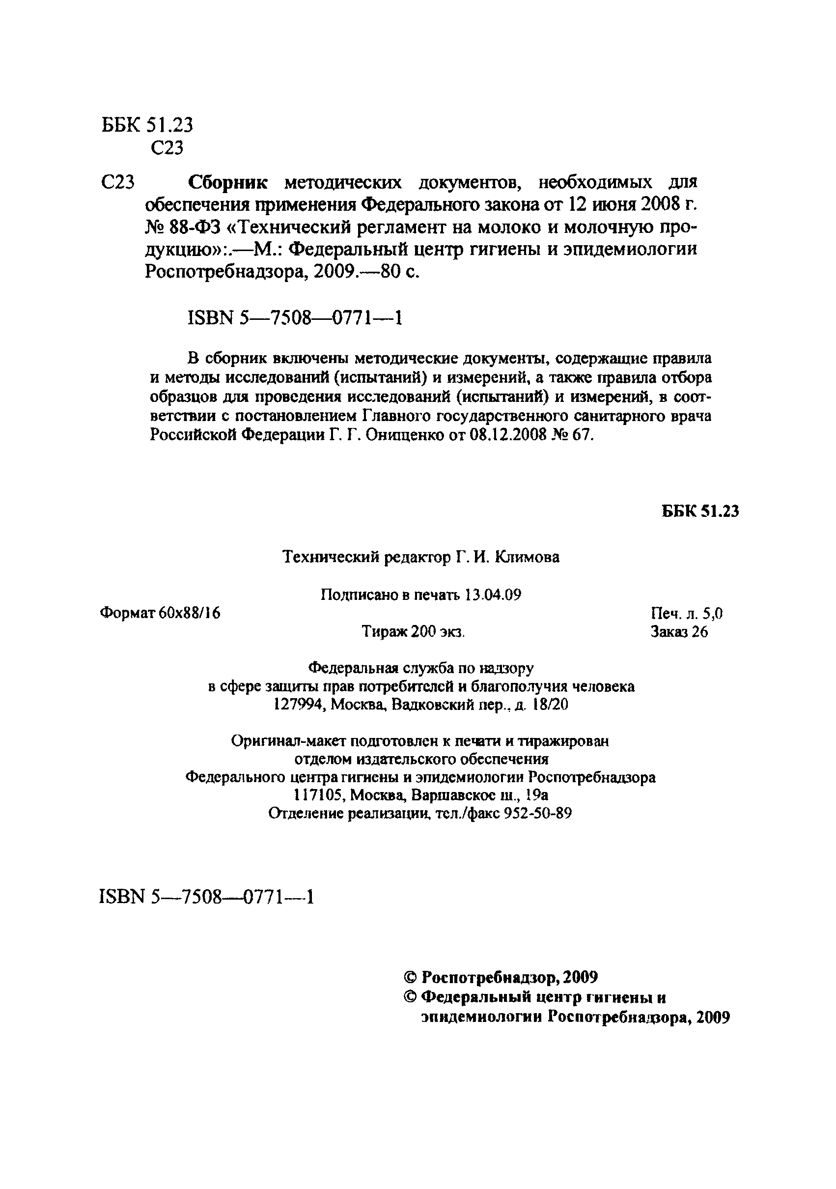 | | Издан: | Роспотребнадзор (2009 г. )