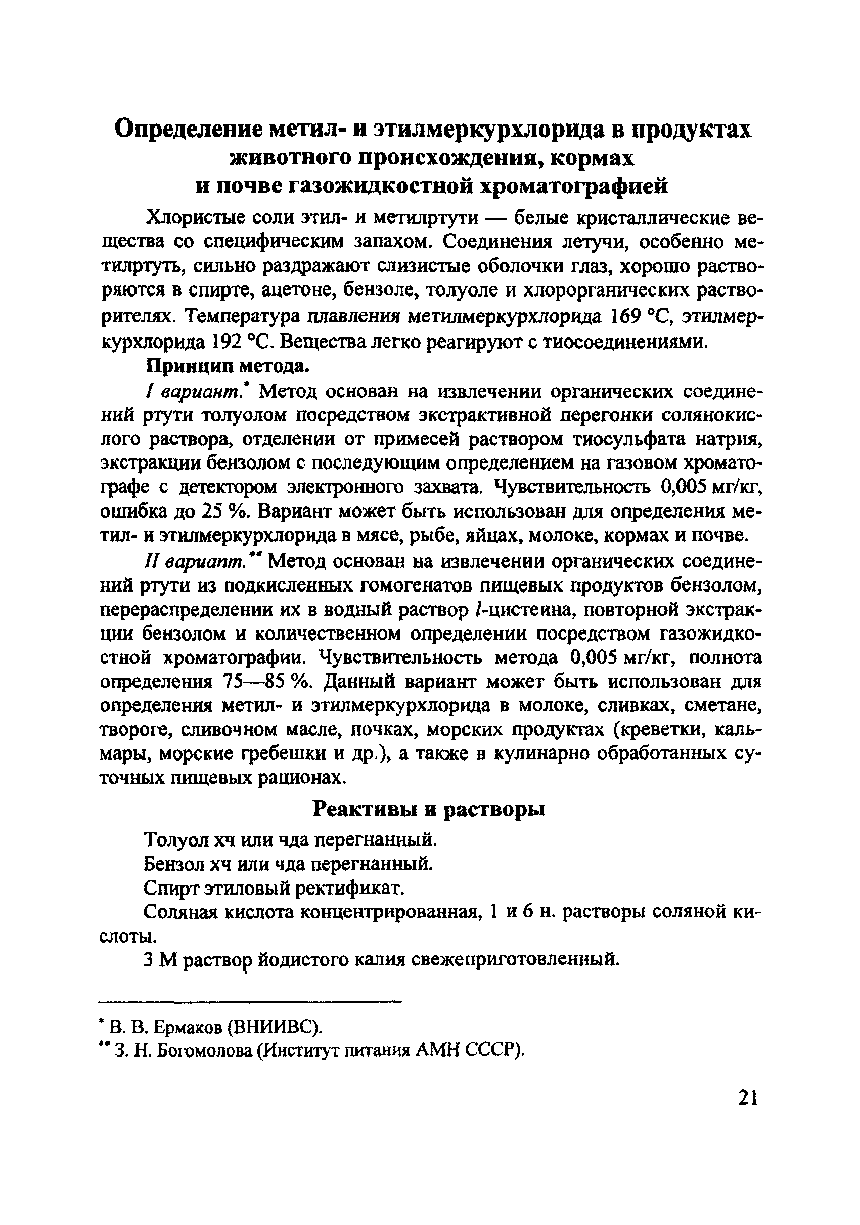 Определение метил- и этилмеркурхлорида в продуктах животного происхождения, кормах и почве газожидкостной хроматографией| Статус: | действует | | Название рус.: | Определение метил- и этилмеркурхлорида в продуктах животного происхождения, кормах и почве газожидкостной хроматографией | | Дата добавления в базу: | 01.02.2017 | | Дата актуализации: | 01.01.2021 | | Оглавление: | Реактивы и растворы Приборы и посуда Ход анализа Условия хроматографирования | | Разработан: | Институт питания АМН СССР ВНИИВС