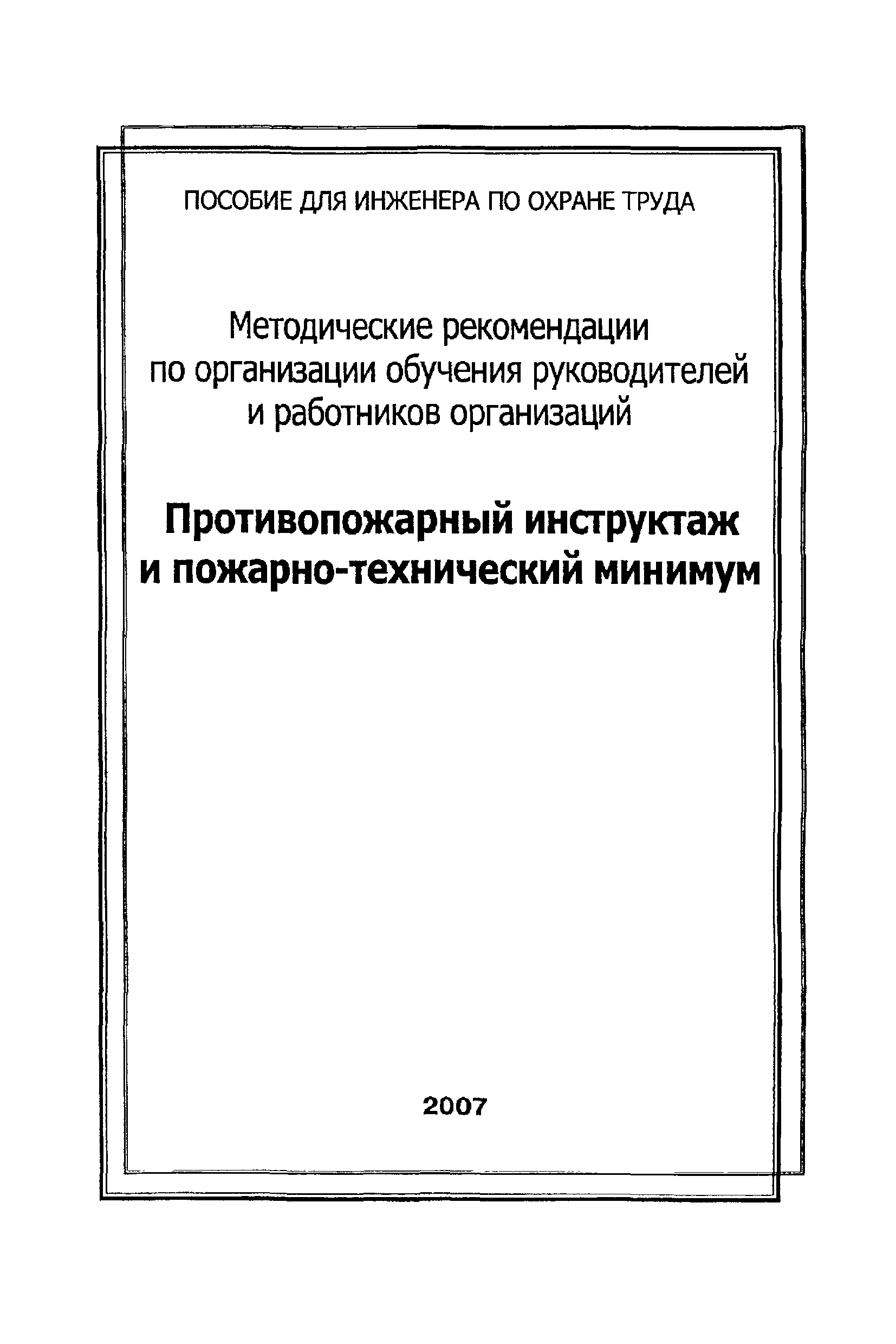 | Название рус.: | Методические рекомендации по организации обучения руководителей и работников организаций. Противопожарный инструктаж и пожарно-технический минимум |