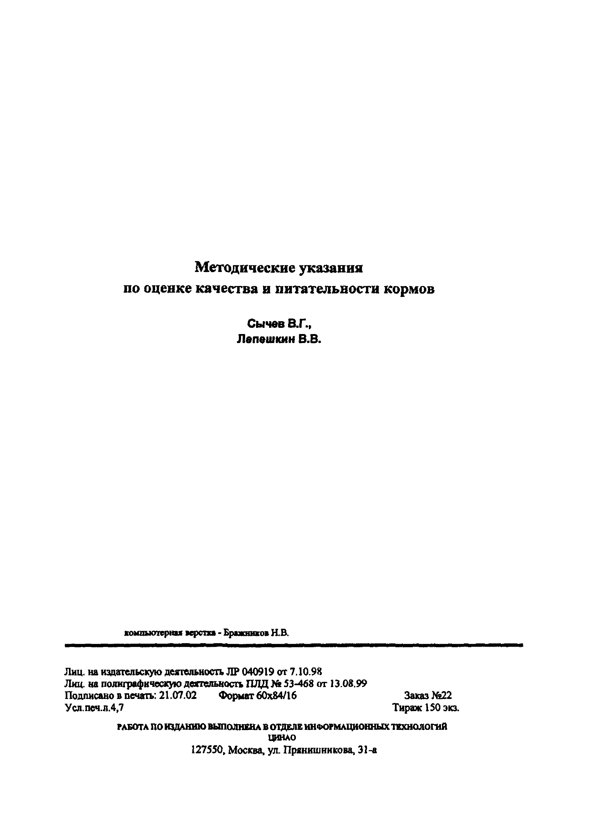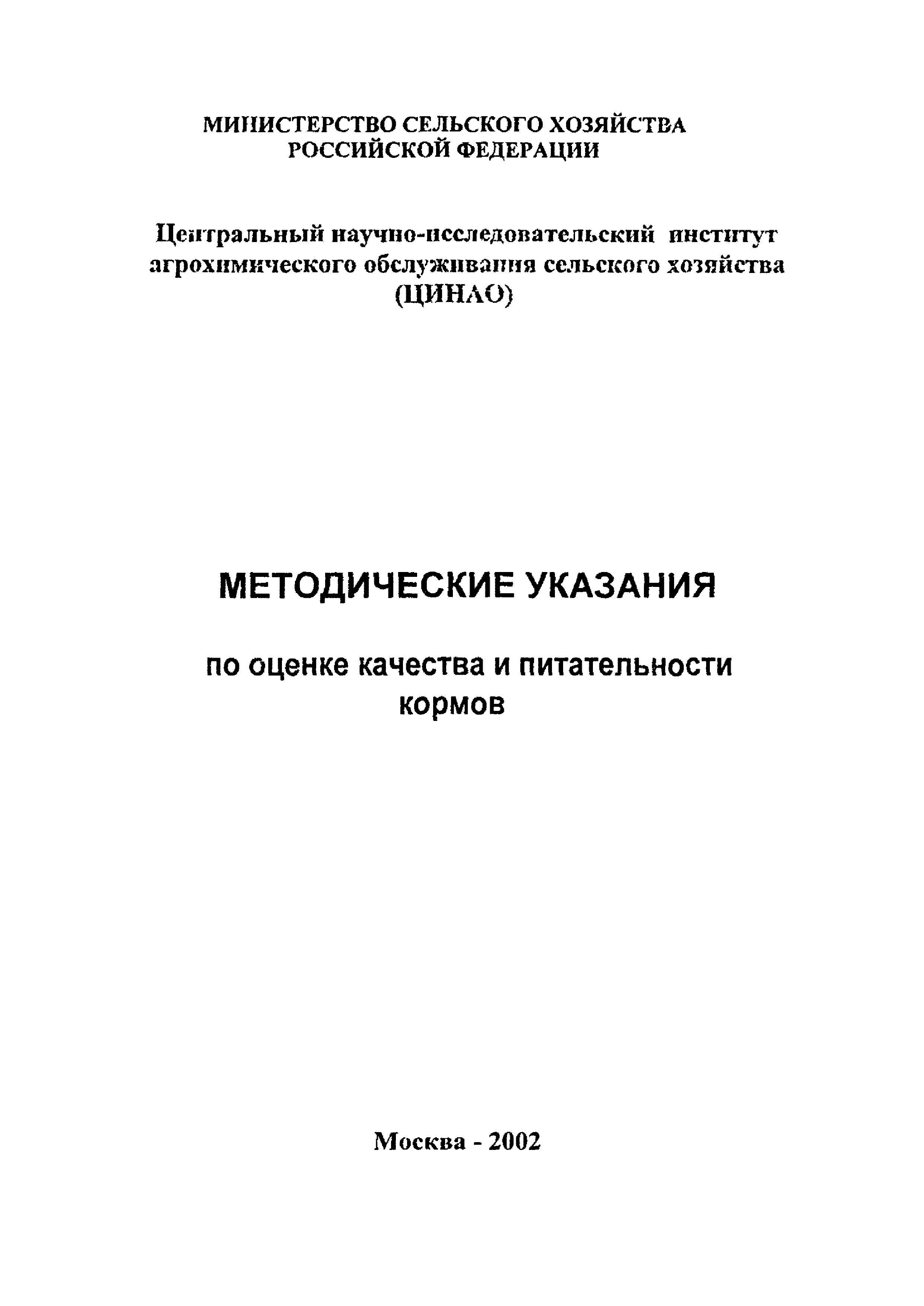 | Название рус.: | Методические указания по оценке качества и питательности кормов |