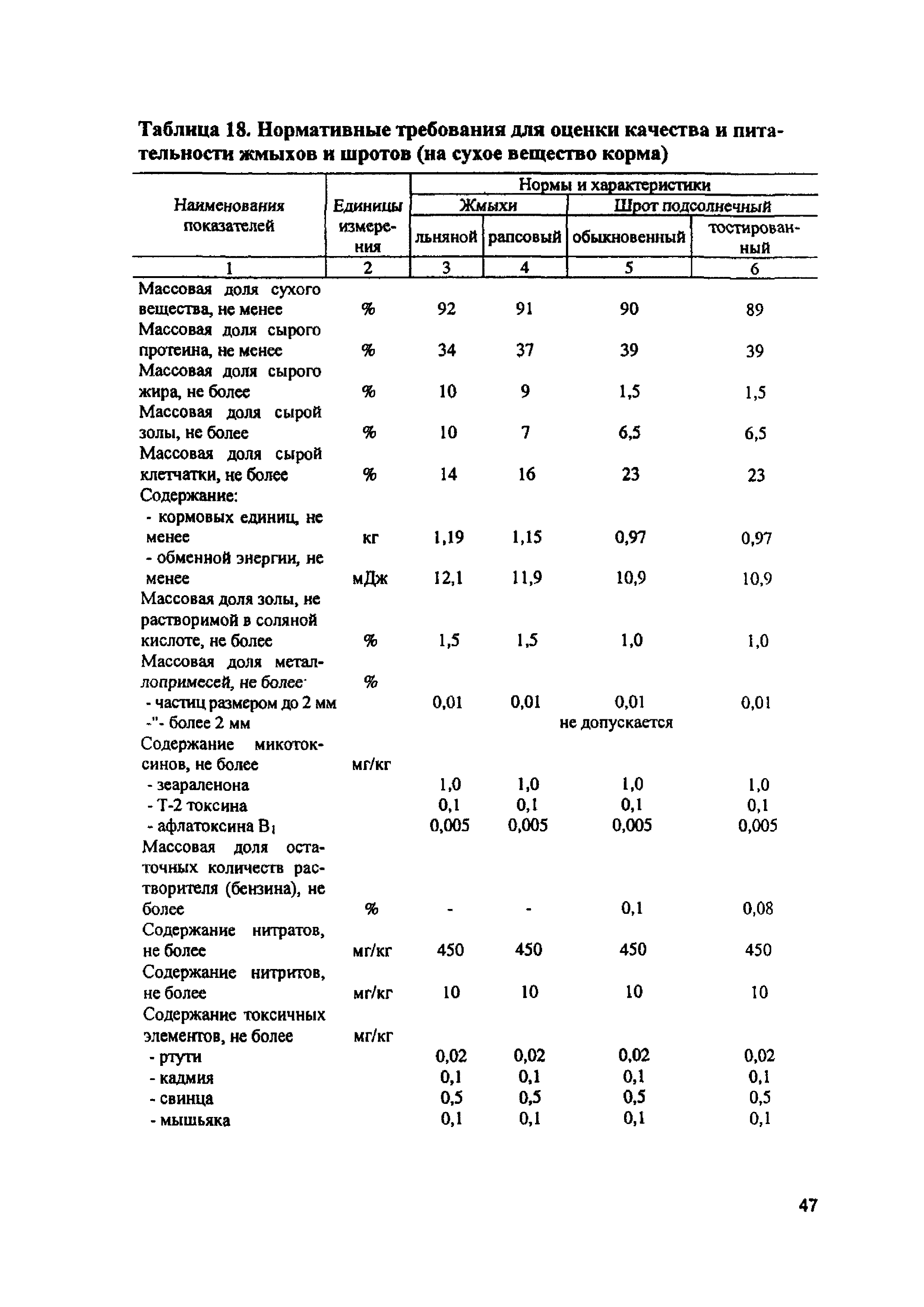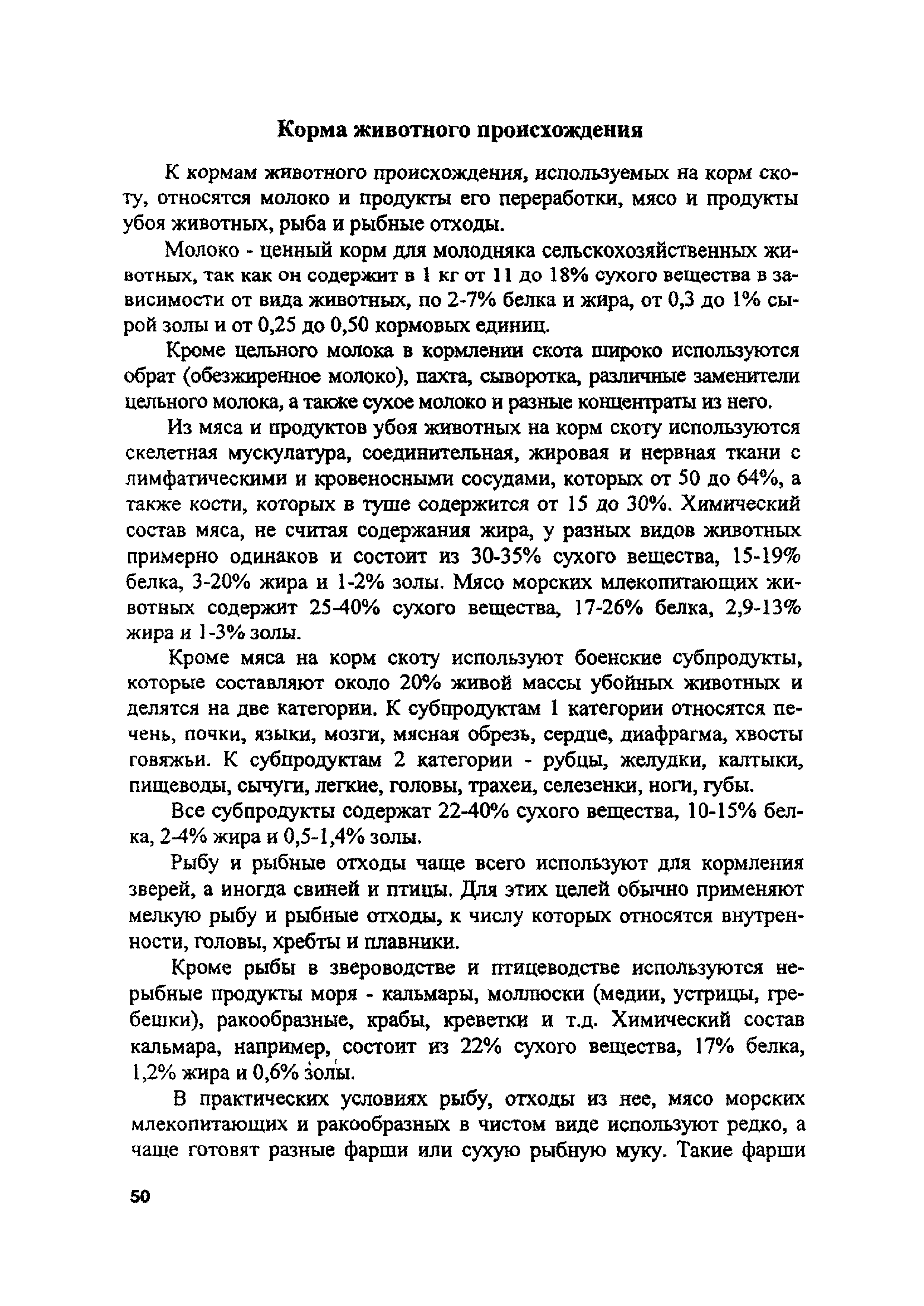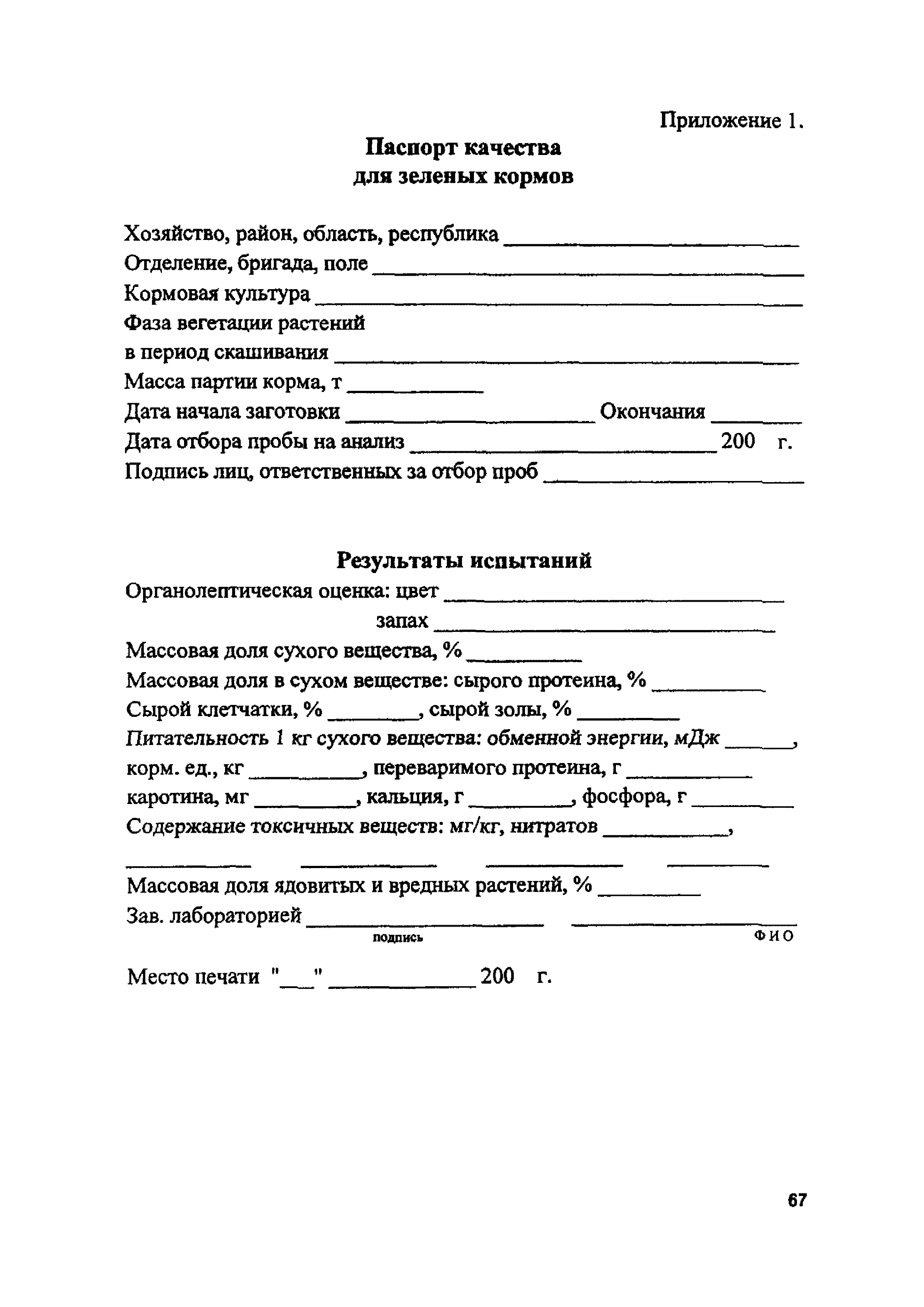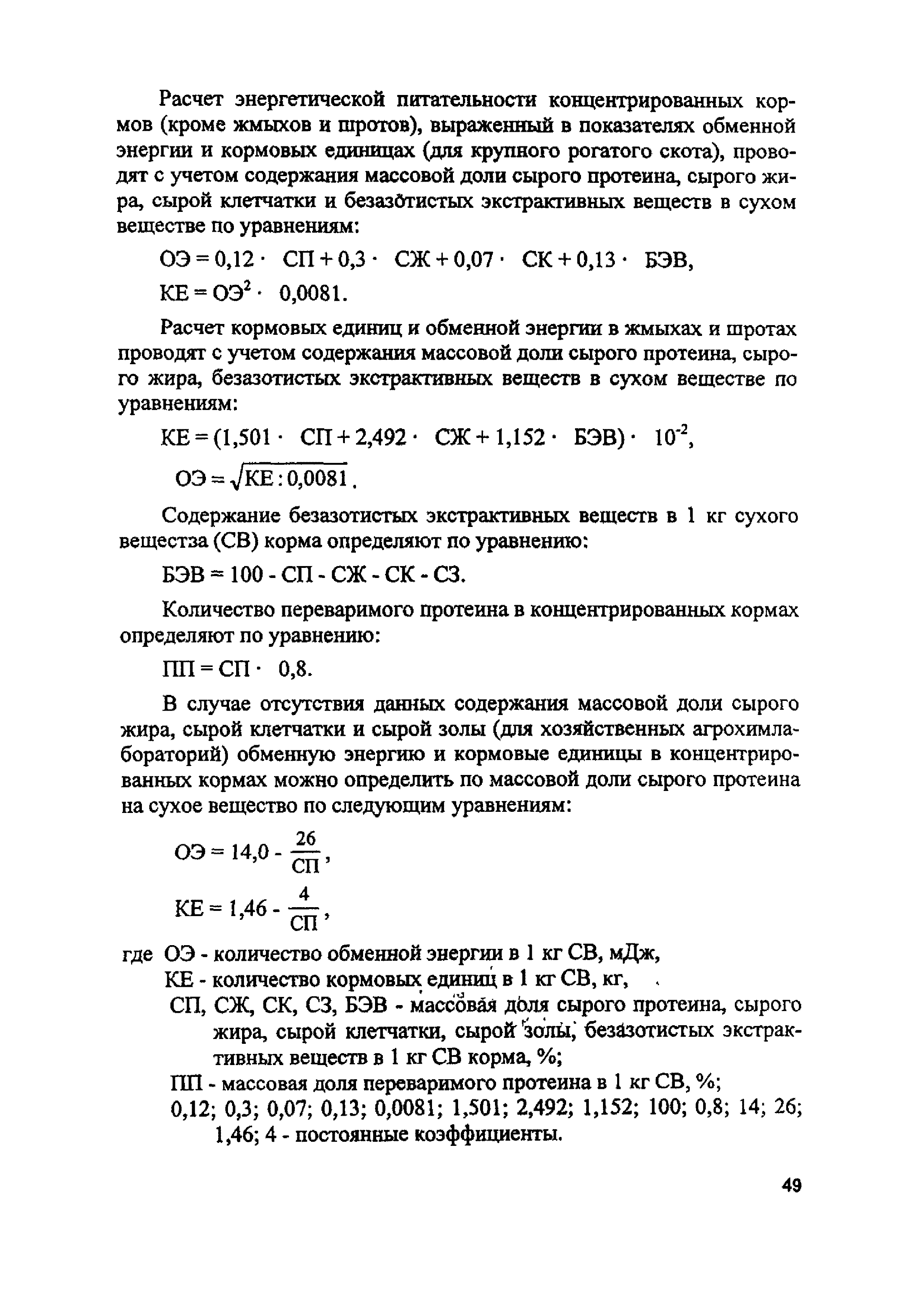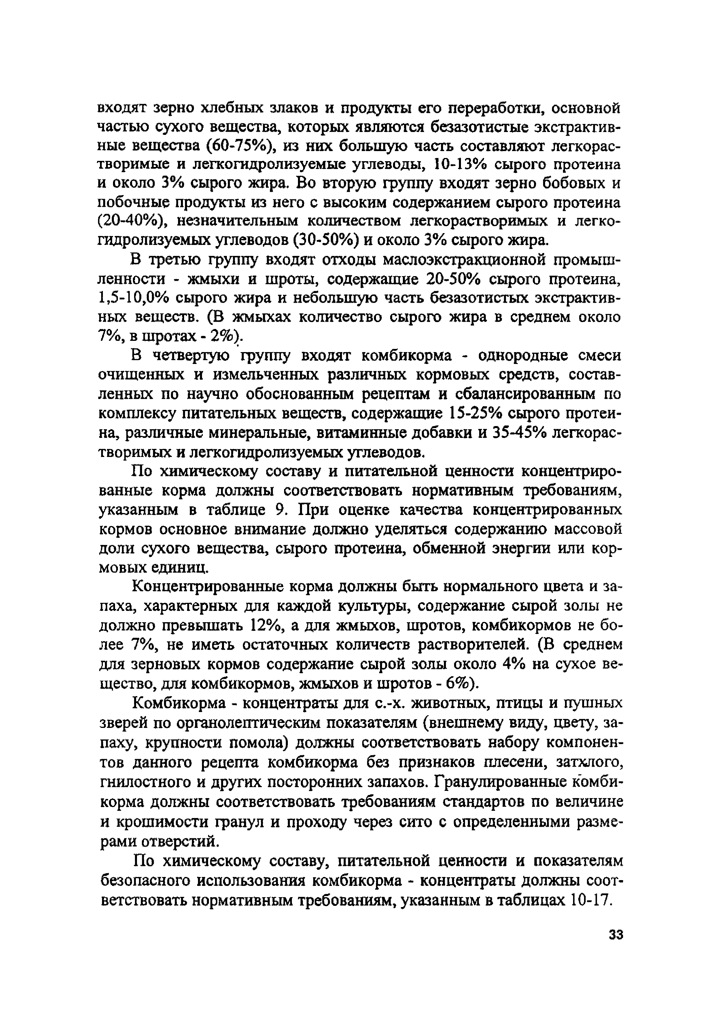 | Оглавление: | Введение Правила отбора проб кормов и доставки их в лабораторию Нормативные требования оценки качества и питательности кормов Зеленые корма Сено Солома и мякина (полова) Веточный корм Корма травяные искусственно высушенные Сенаж Силос Корнеклубнеплоды Концентрированные корма Комбикорма концентраты: для - крупного рогатого скота - свиней - овец - лошадей - кур - уток и гусей - индеек - нутрий, кроликов и пушных зверей Жмыхи, шроты Корма животного происхождения Корма и побочные продукты крахмало-паточного и сахарного производства, пивоваренной и спиртовой промышленности, пищевые отходы Порядок заполнения таблиц по результатам исследований качества и питательности кормов в процессе заготовки и хранения Уравнения для расчета энергетической и протеиновой питательности кормов по содержанию сырых питательных веществ: для свиней для птицы Коэффициенты пересчета джоулей в калории Приложения "Паспорт качества корма" Список литературы |