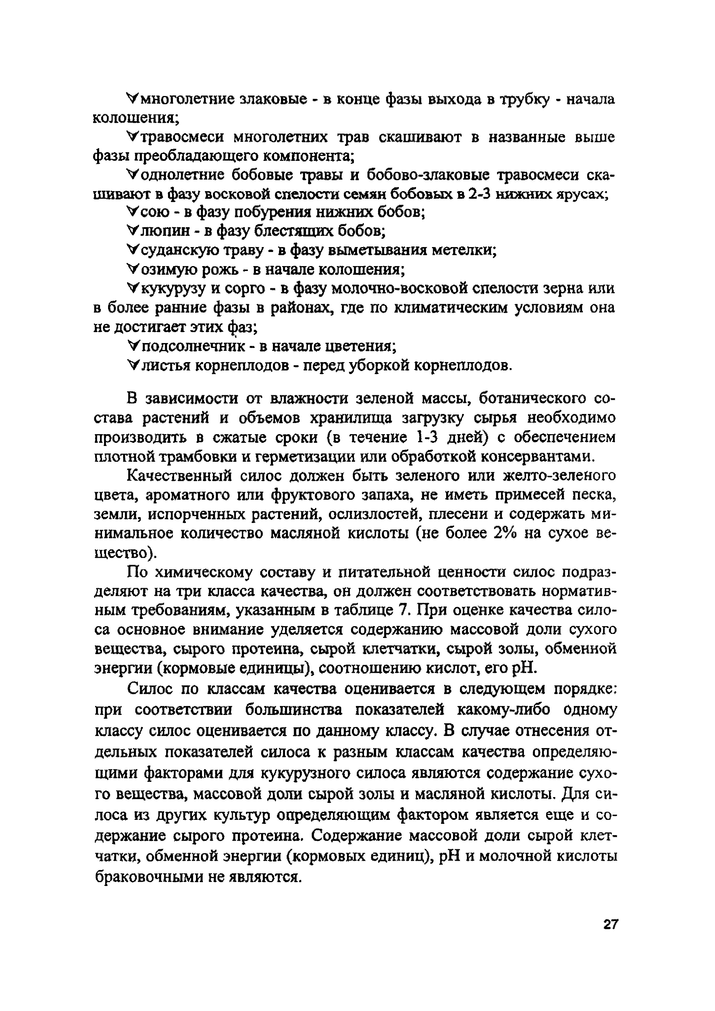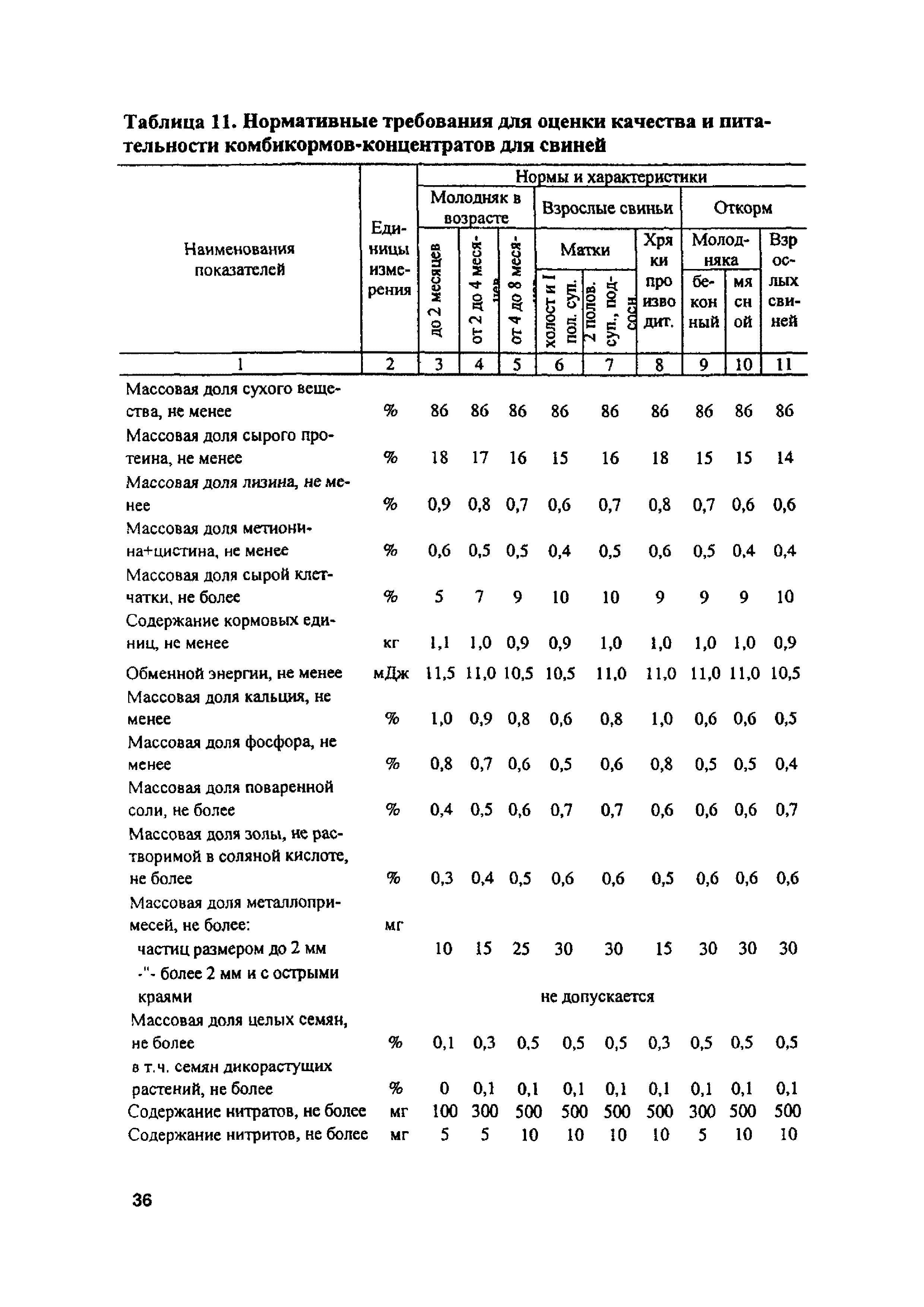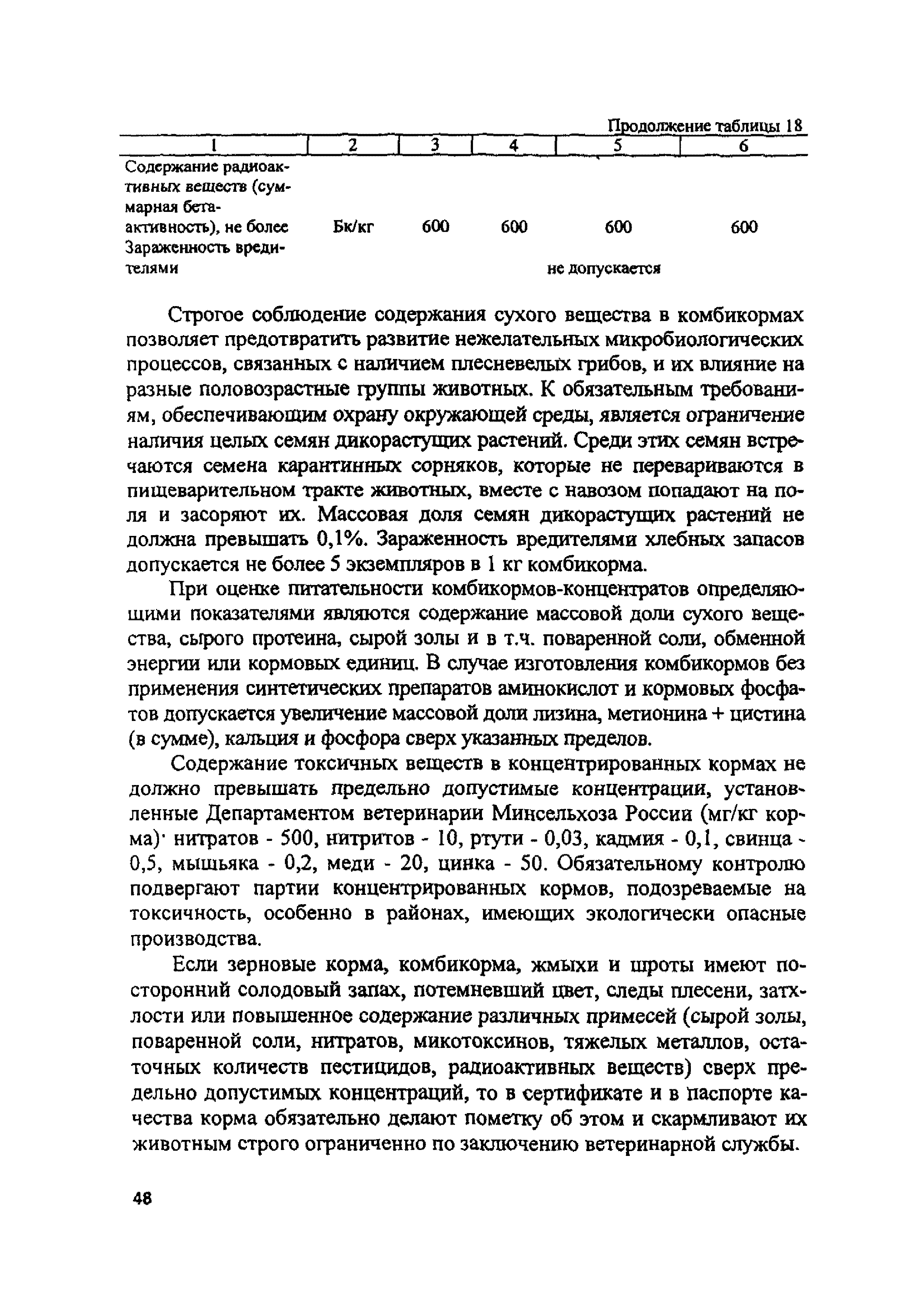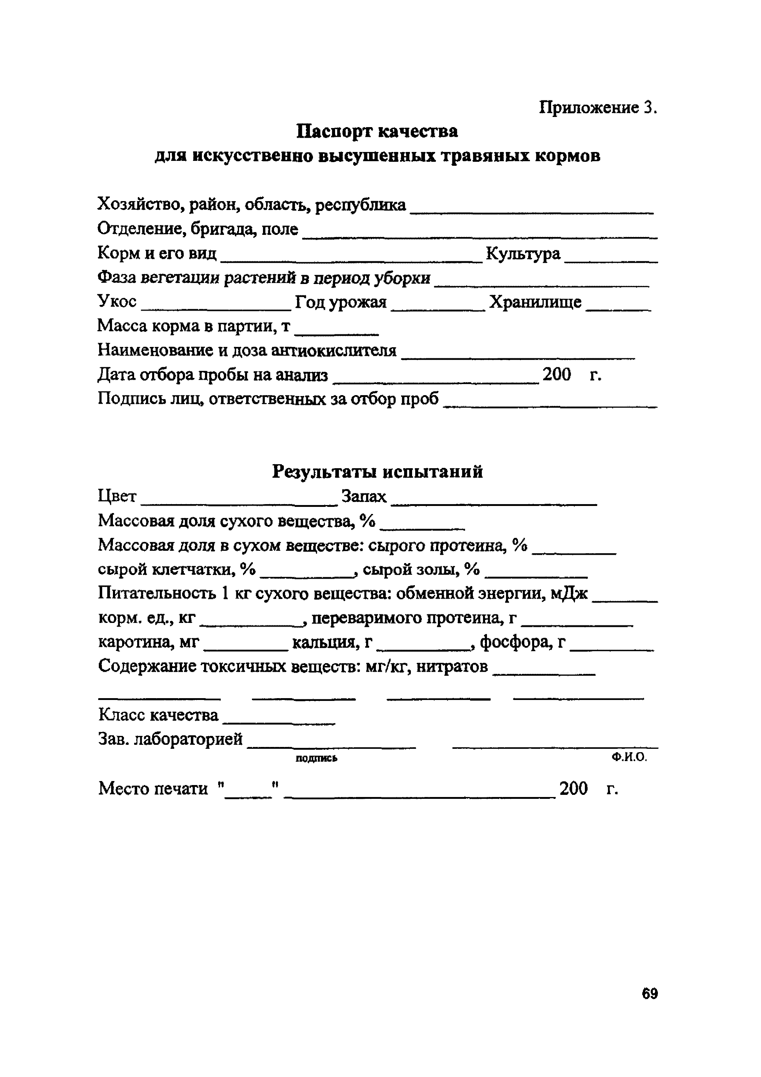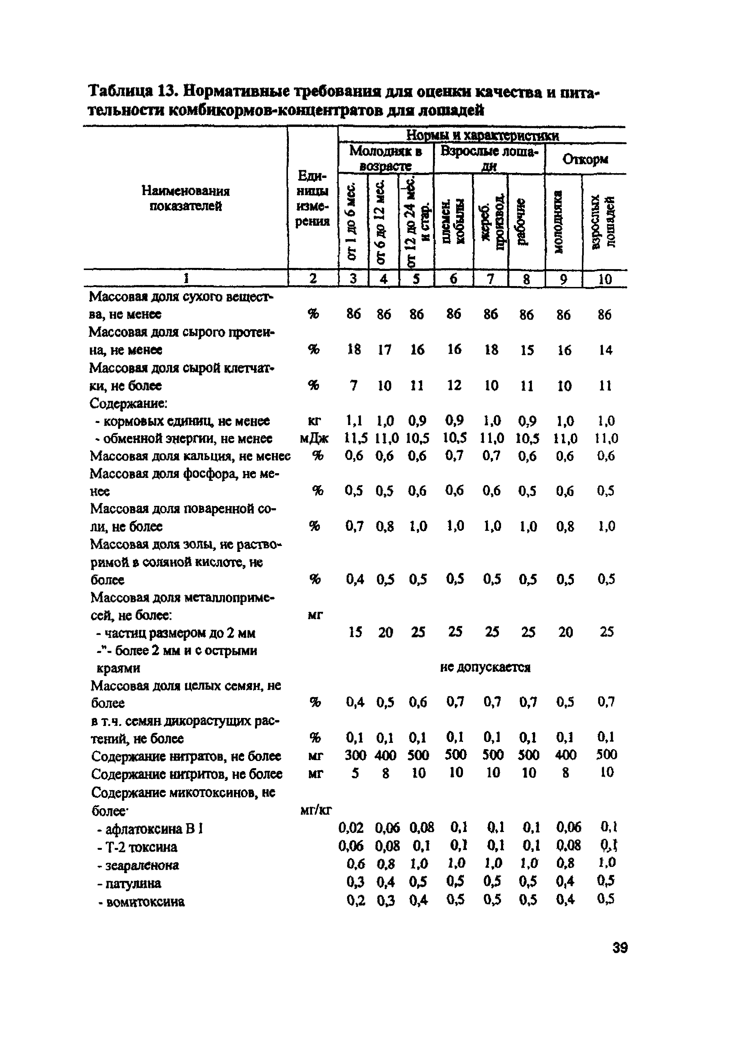 | Оглавление: | Введение Правила отбора проб кормов и доставки их в лабораторию Нормативные требования оценки качества и питательности кормов Зеленые корма Сено Солома и мякина (полова) Веточный корм Корма травяные искусственно высушенные Сенаж Силос Корнеклубнеплоды Концентрированные корма Комбикорма концентраты: для - крупного рогатого скота - свиней - овец - лошадей - кур - уток и гусей - индеек - нутрий, кроликов и пушных зверей Жмыхи, шроты Корма животного происхождения Корма и побочные продукты крахмало-паточного и сахарного производства, пивоваренной и спиртовой промышленности, пищевые отходы Порядок заполнения таблиц по результатам исследований качества и питательности кормов в процессе заготовки и хранения Уравнения для расчета энергетической и протеиновой питательности кормов по содержанию сырых питательных веществ: для свиней для птицы Коэффициенты пересчета джоулей в калории Приложения "Паспорт качества корма" Список литературы |