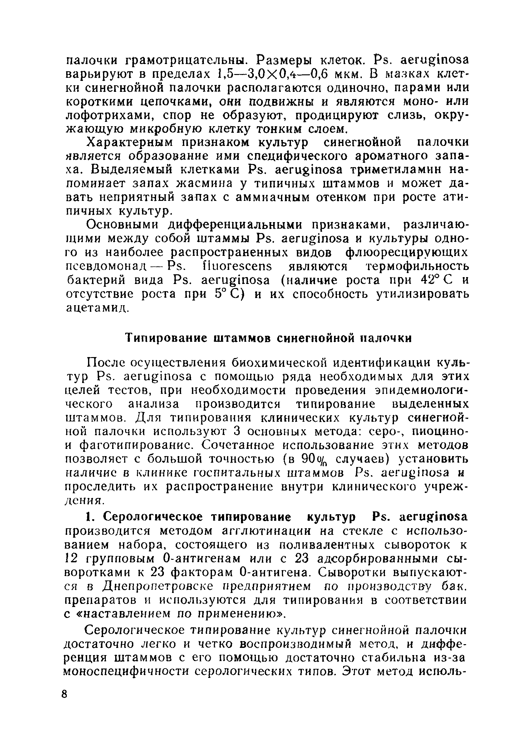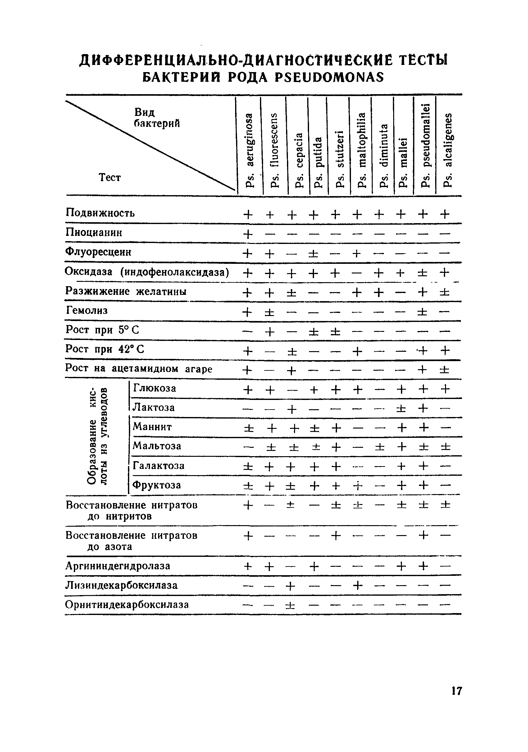 | Оглавление: | Общие сведения о бактериях рода PSEUDOMONAS Характеристика и идентификация культур синегнойной палочки Способы взятия и посева исследуемого материала Схема и методика исследования материала Типирование штаммов синегнойной палочки Определение чувствительности Рs. Aeruginosa к антибактериальным веществам Приложение. Основные методы, используемые для определения биохимических свойств Рs. Aeruginosa Дифференциально-диагностические тесты бактерий рода PSEUDOMONAS |