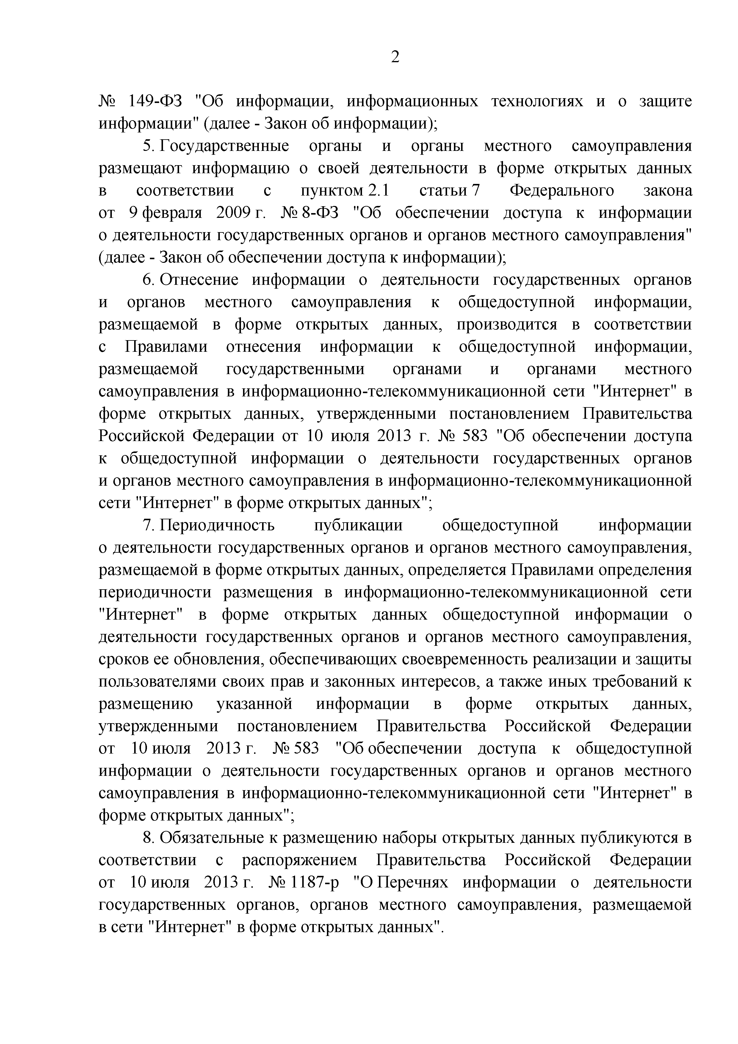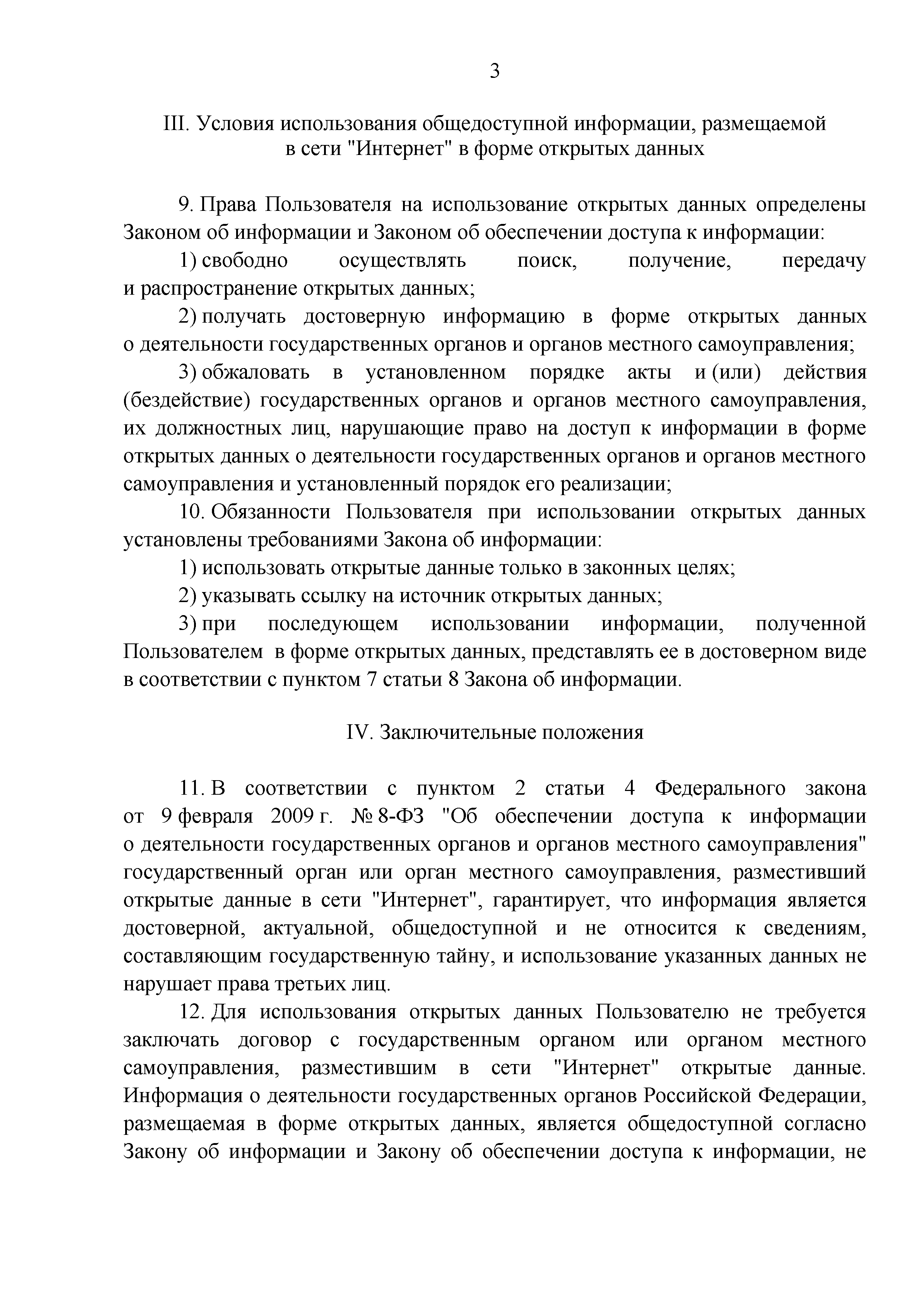 | Оглавление: | I. Общие положения II. Размещение общедоступной информации в информационно-телекоммуникационной сети "Интернет" в форме открытых данных III. Условия использования общедоступной информации, размещаемой в сети "Интернет" в форме открытых данных IV. Заключительные положения |