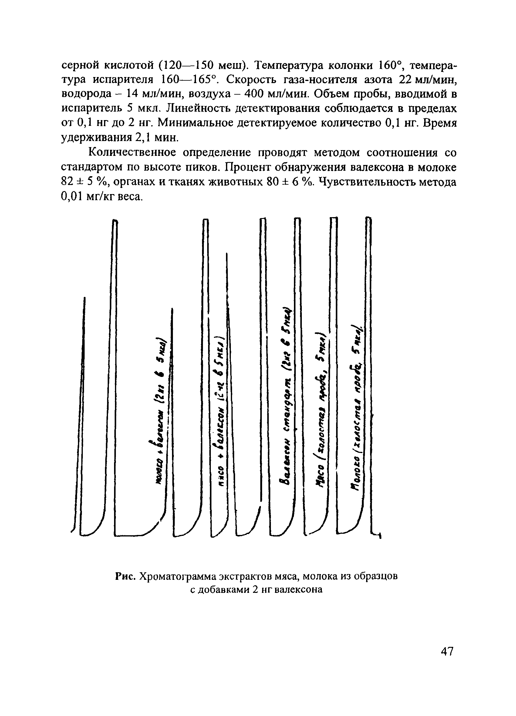 Газохроматографический метод определения валексона в молоке, органах и тканях животных| Статус: | действует | | Название рус.: | Газохроматографический метод определения валексона в молоке, органах и тканях животных | | Дата добавления в базу: | 01.02.2017 | | Дата актуализации: | 01.01.2021 | | Оглавление: | Принцип метода Реактивы и растворы Приборы и посуда Экстракция валексона из молока, органов и тканей и очистка экстрактов Условия хроматографирования | | Разработан: | ВНИИ ветеринарной санитарии