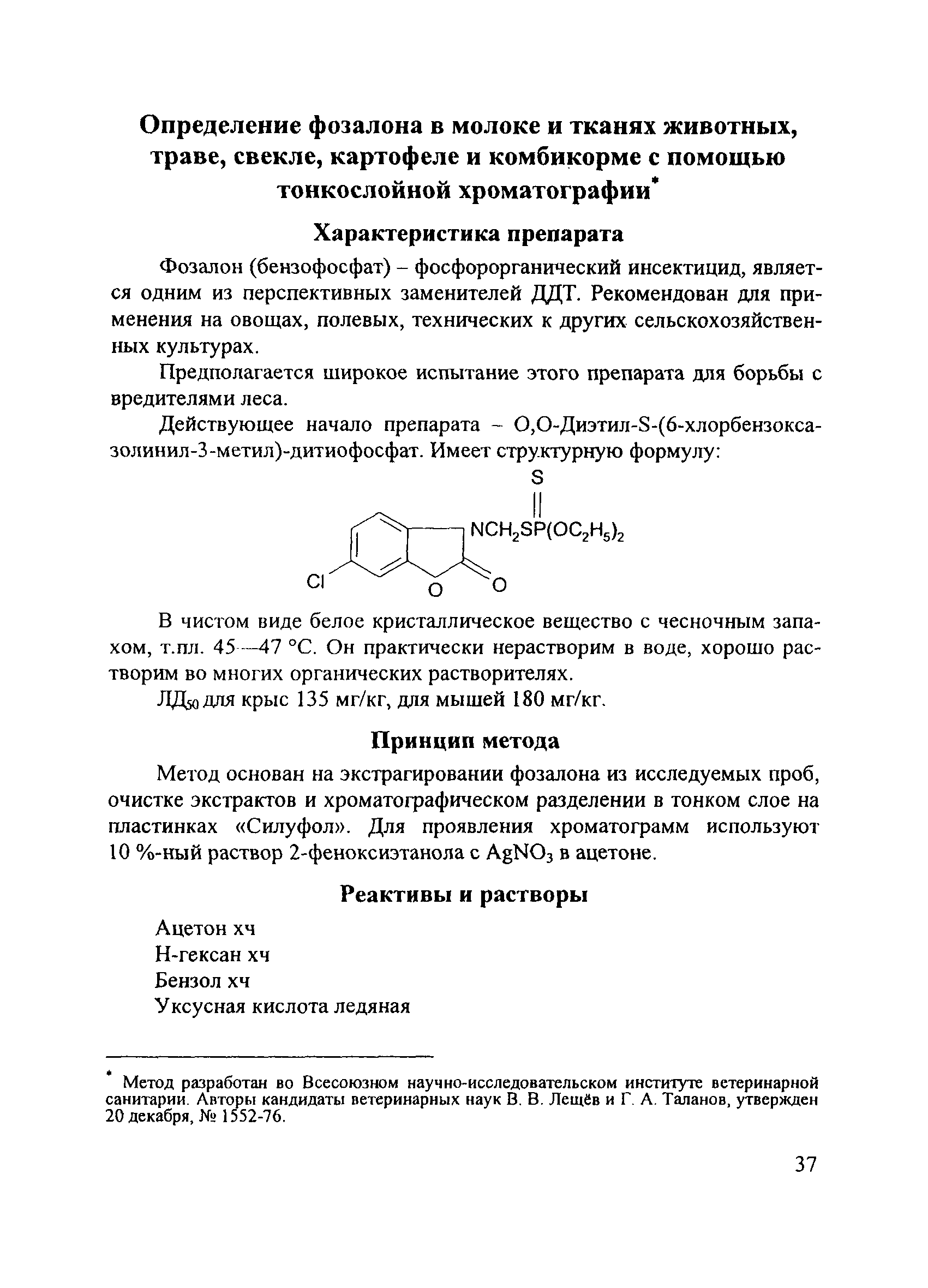 Скачать Определение фозалона в молоке и тканях животных, траве, свекле, картофеле и комбикорме с помощью тонкослойной хроматографииДата актуализации: 01.01.2021