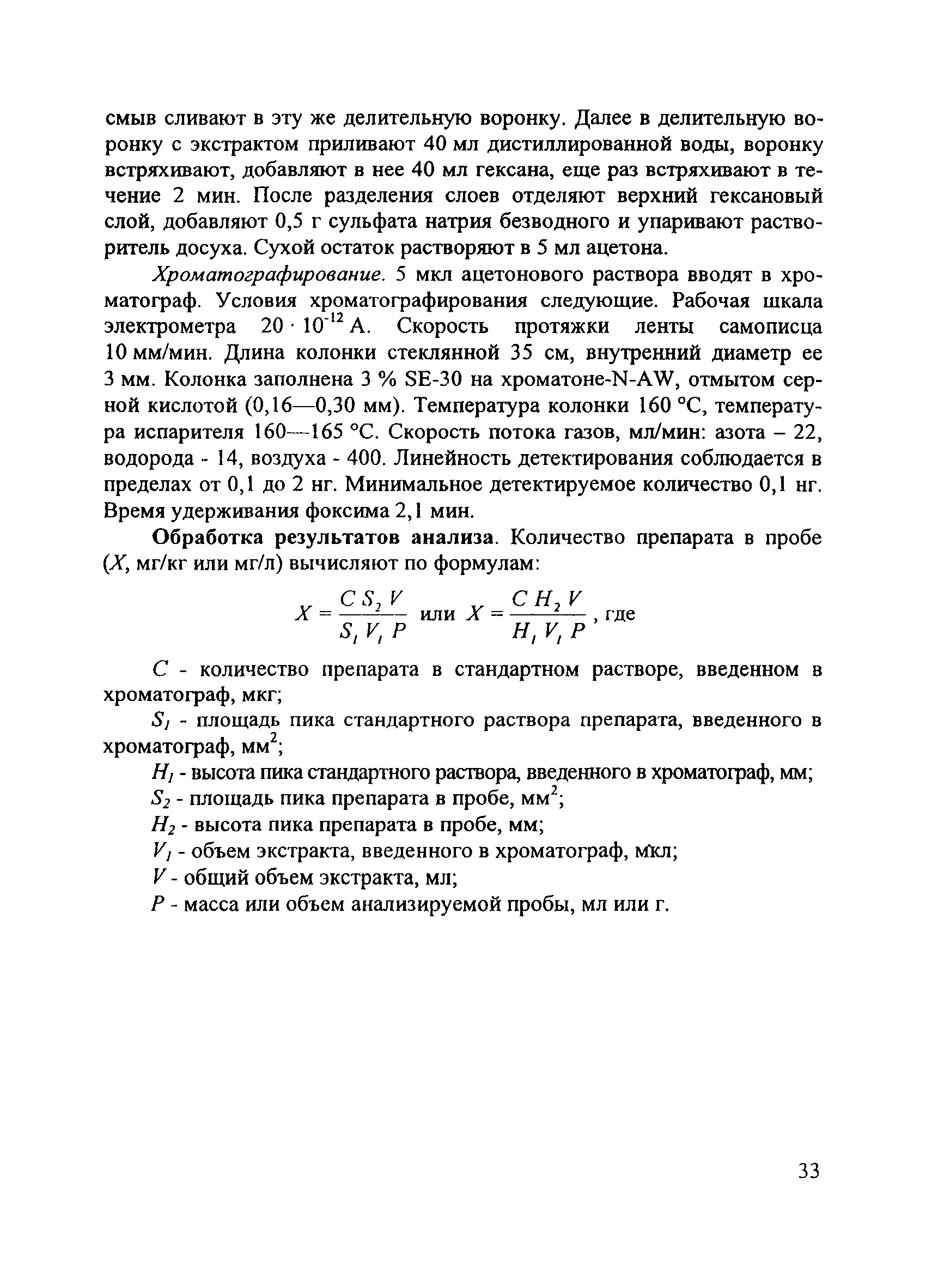 | Оглавление: | Методика определения фоксима в молоке и тканях животных газожидкостной хроматографией. Основные положения Реактивы и растворы Приборы и посуда Ход анализа Обработка результатов анализа |