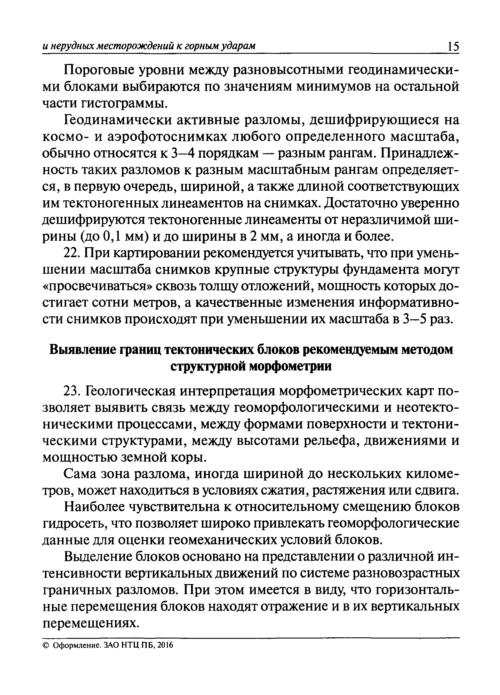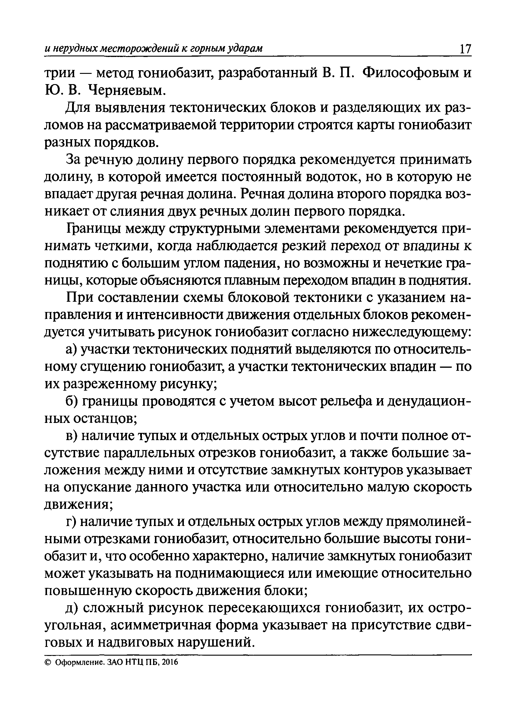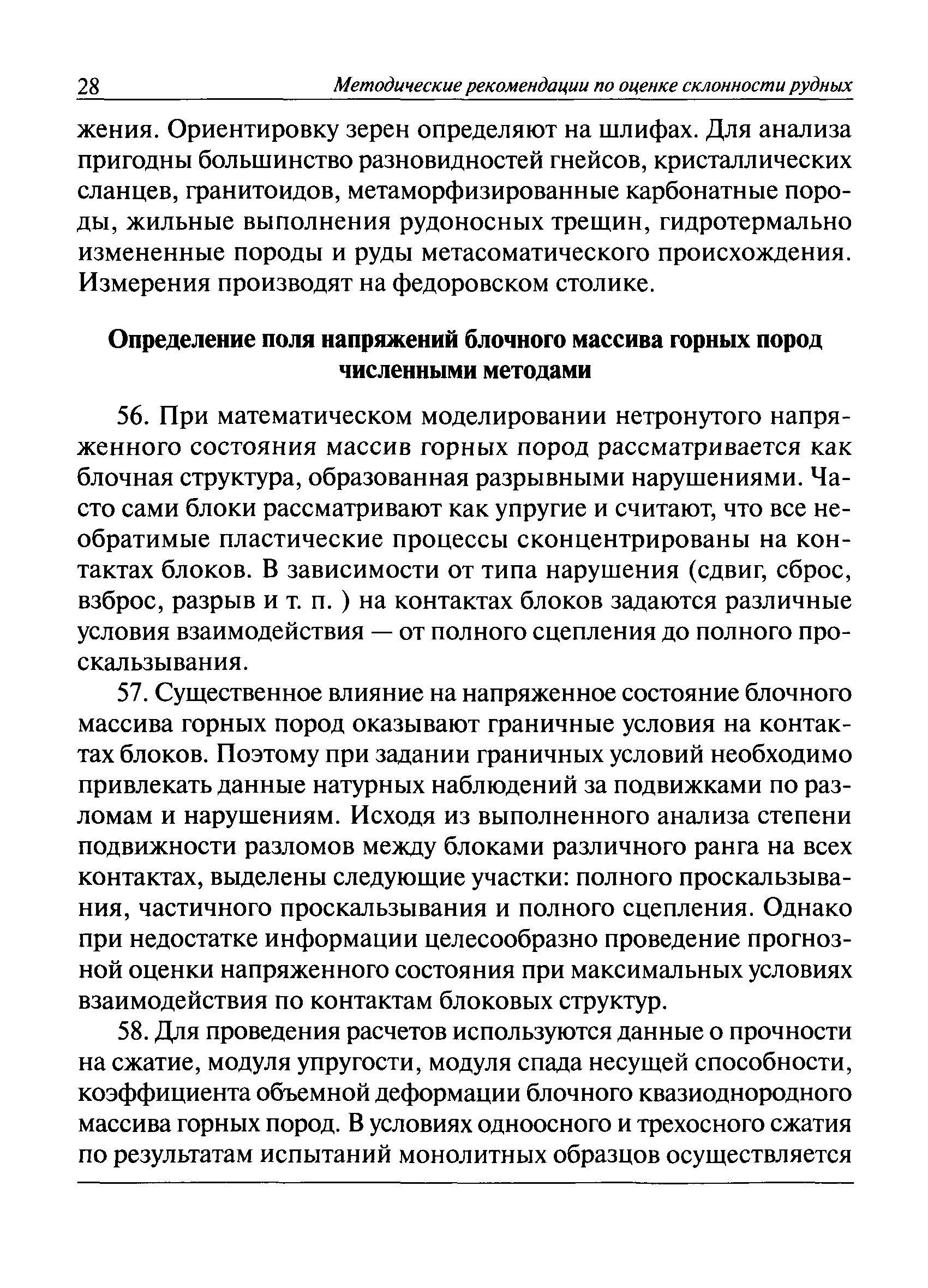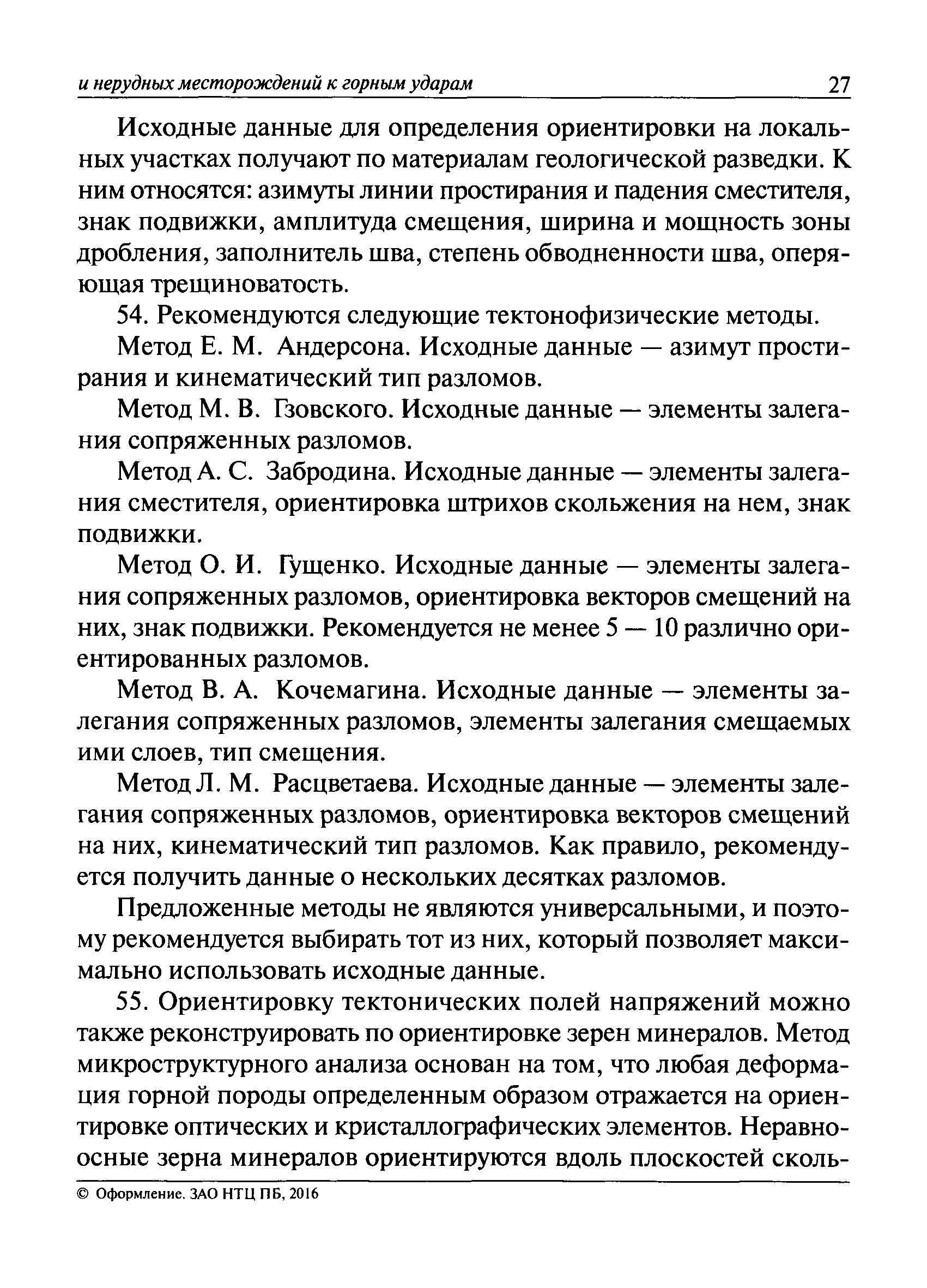 | Оглавление: | I Общие положения II Основные положения по геодинамическому районированию III Выявление блочной структуры горного массива IV Установление естественного напряженного состояния блочного массива горных пород V Оценка удароопасности по дискованию кернов VI Оценка удароопасности по хрупкости пород с помощью запредельного деформирования VII Перечень месторождений и объектов подземного строительства, склонных и опасных по горным ударам Приложение 1. Классификация по характеру нарушения сплошности массива Приложение 2. Применение морфометрических методов Приложение 3. Перечень месторождений и объектов подземного строительства, склонных и опасных методов |