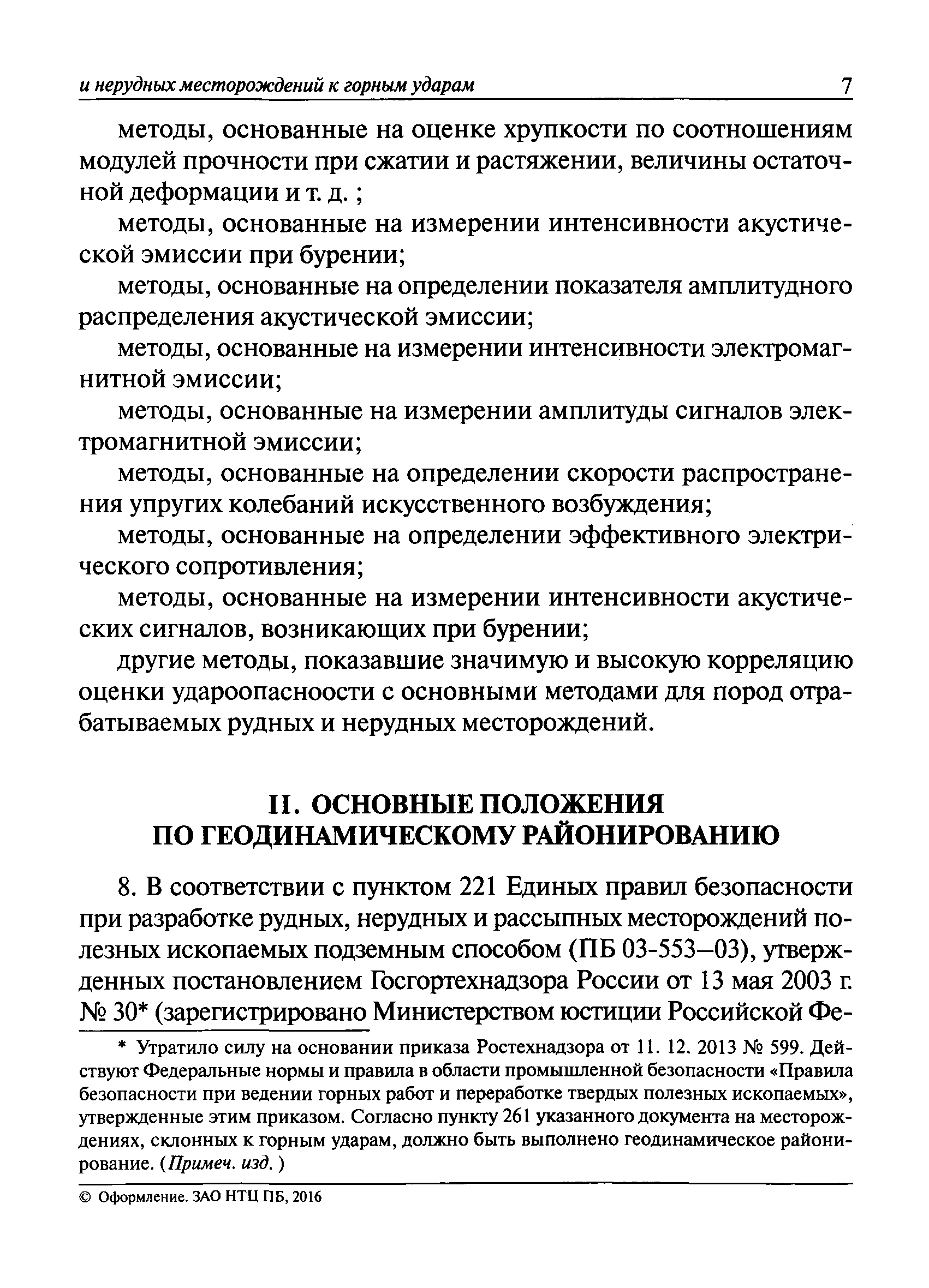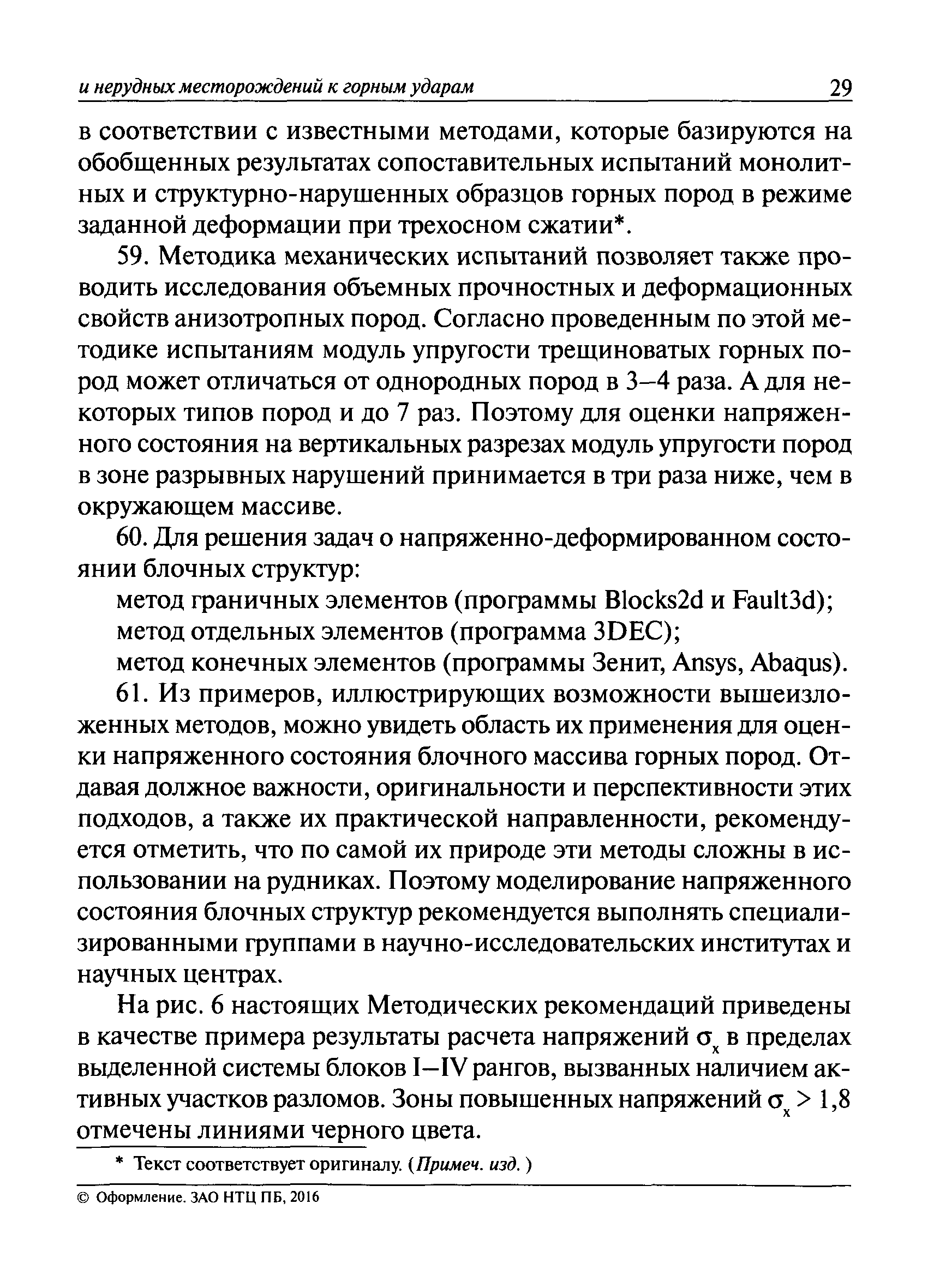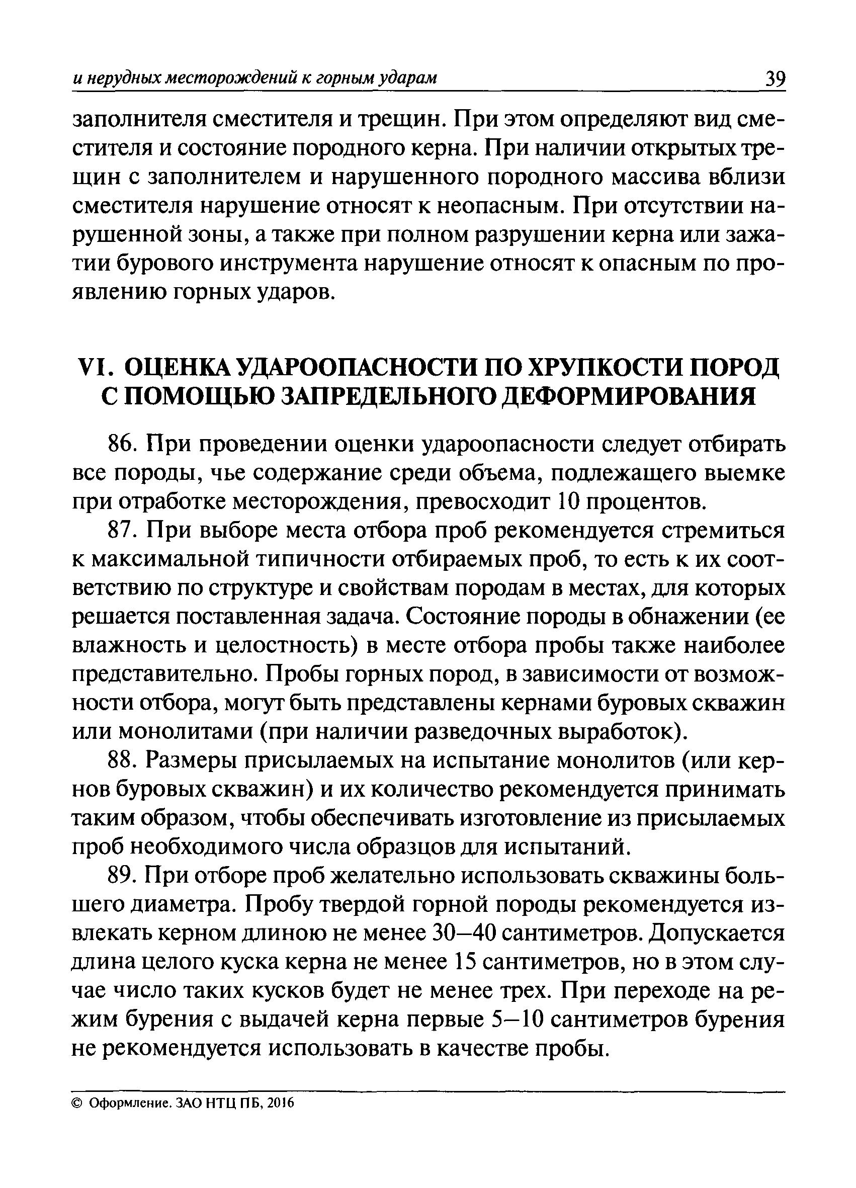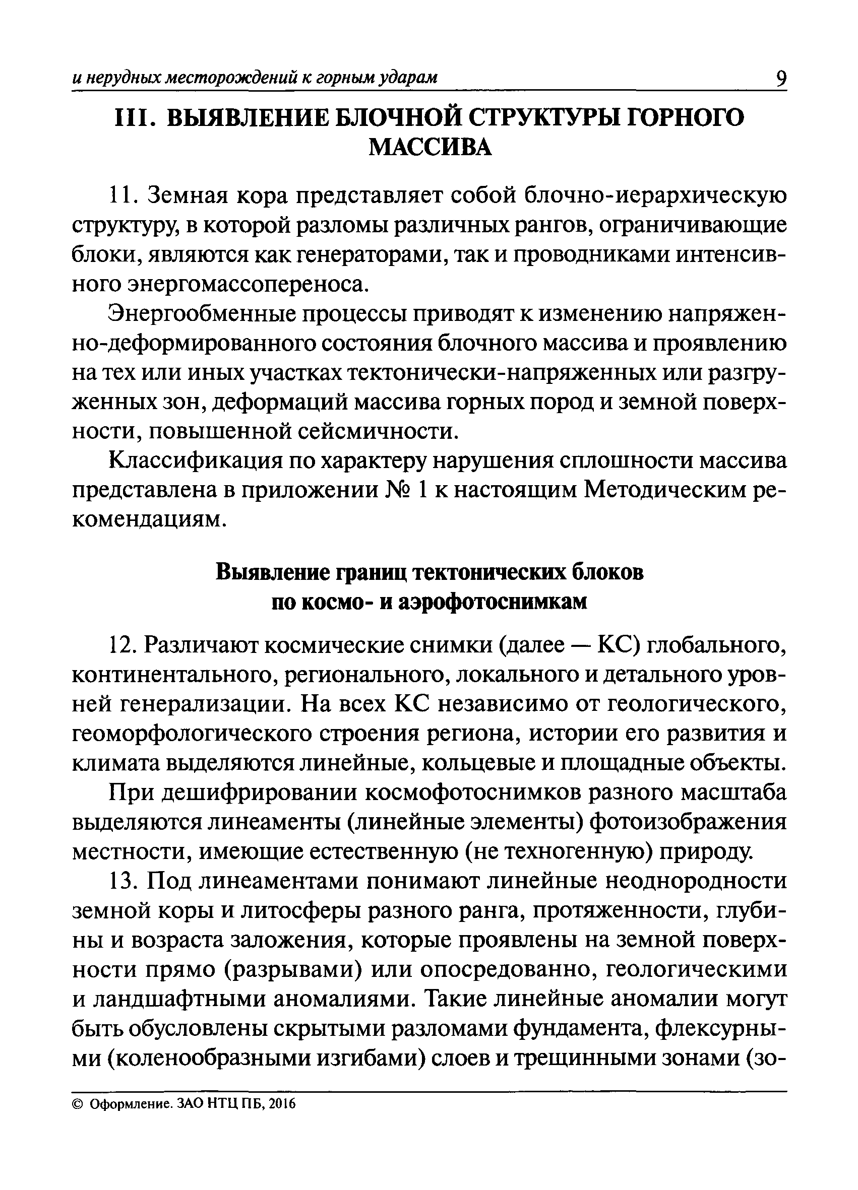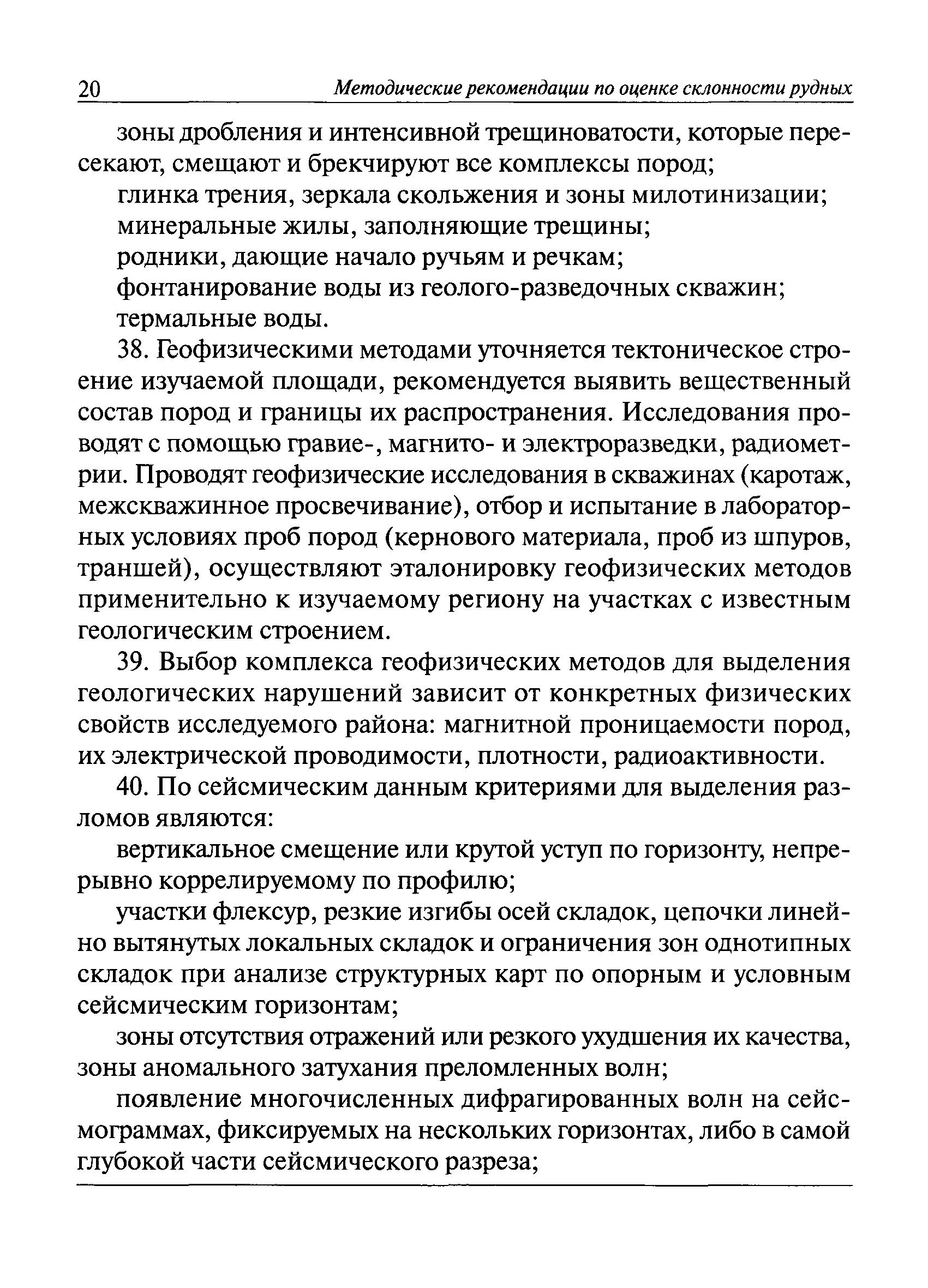 | Оглавление: | I Общие положения II Основные положения по геодинамическому районированию III Выявление блочной структуры горного массива IV Установление естественного напряженного состояния блочного массива горных пород V Оценка удароопасности по дискованию кернов VI Оценка удароопасности по хрупкости пород с помощью запредельного деформирования VII Перечень месторождений и объектов подземного строительства, склонных и опасных по горным ударам Приложение 1. Классификация по характеру нарушения сплошности массива Приложение 2. Применение морфометрических методов Приложение 3. Перечень месторождений и объектов подземного строительства, склонных и опасных методов |