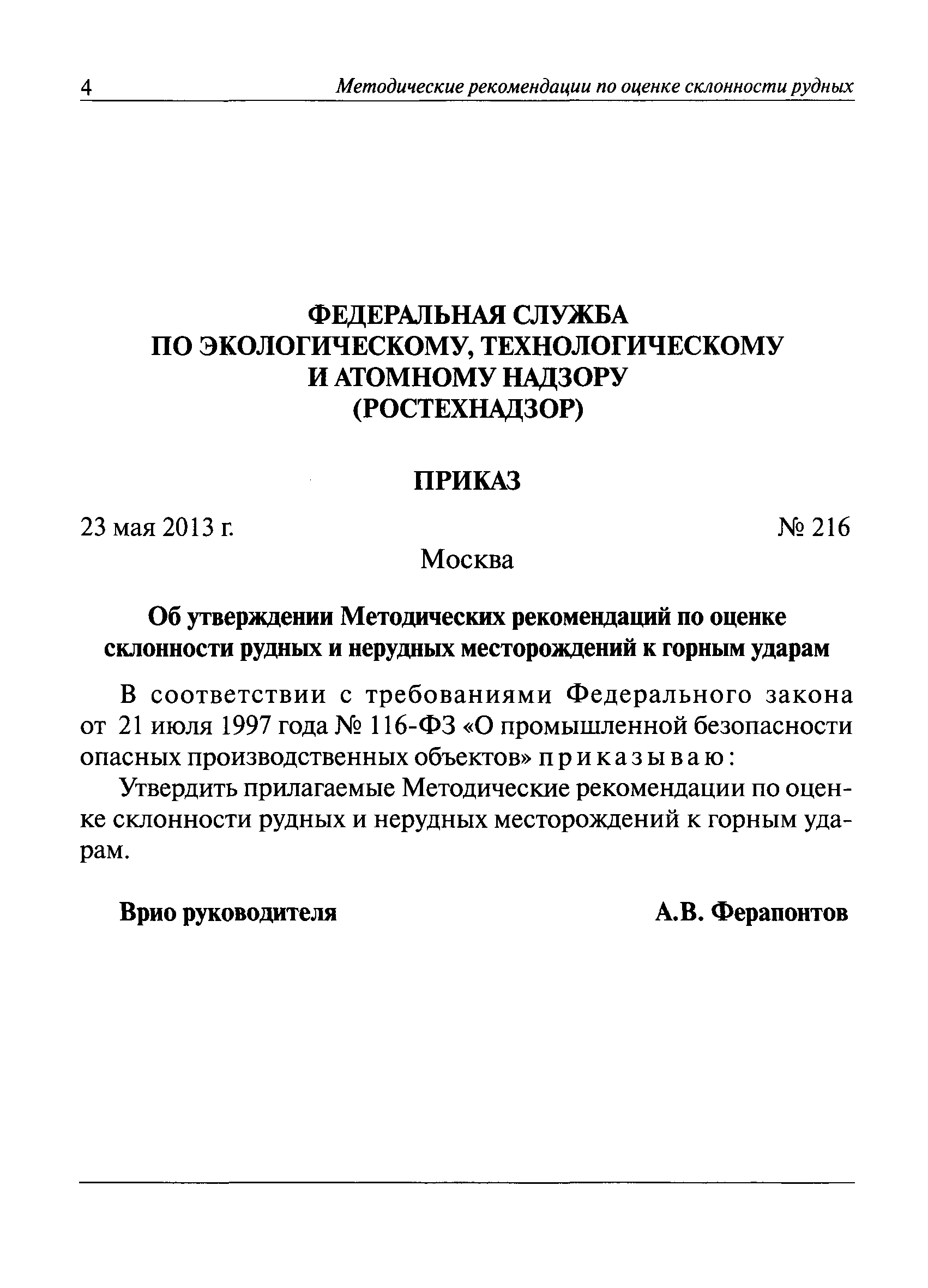 | Утверждён: | 23.05.2013 Федеральная служба по экологическому, технологическому и атомному надзору (216) |
