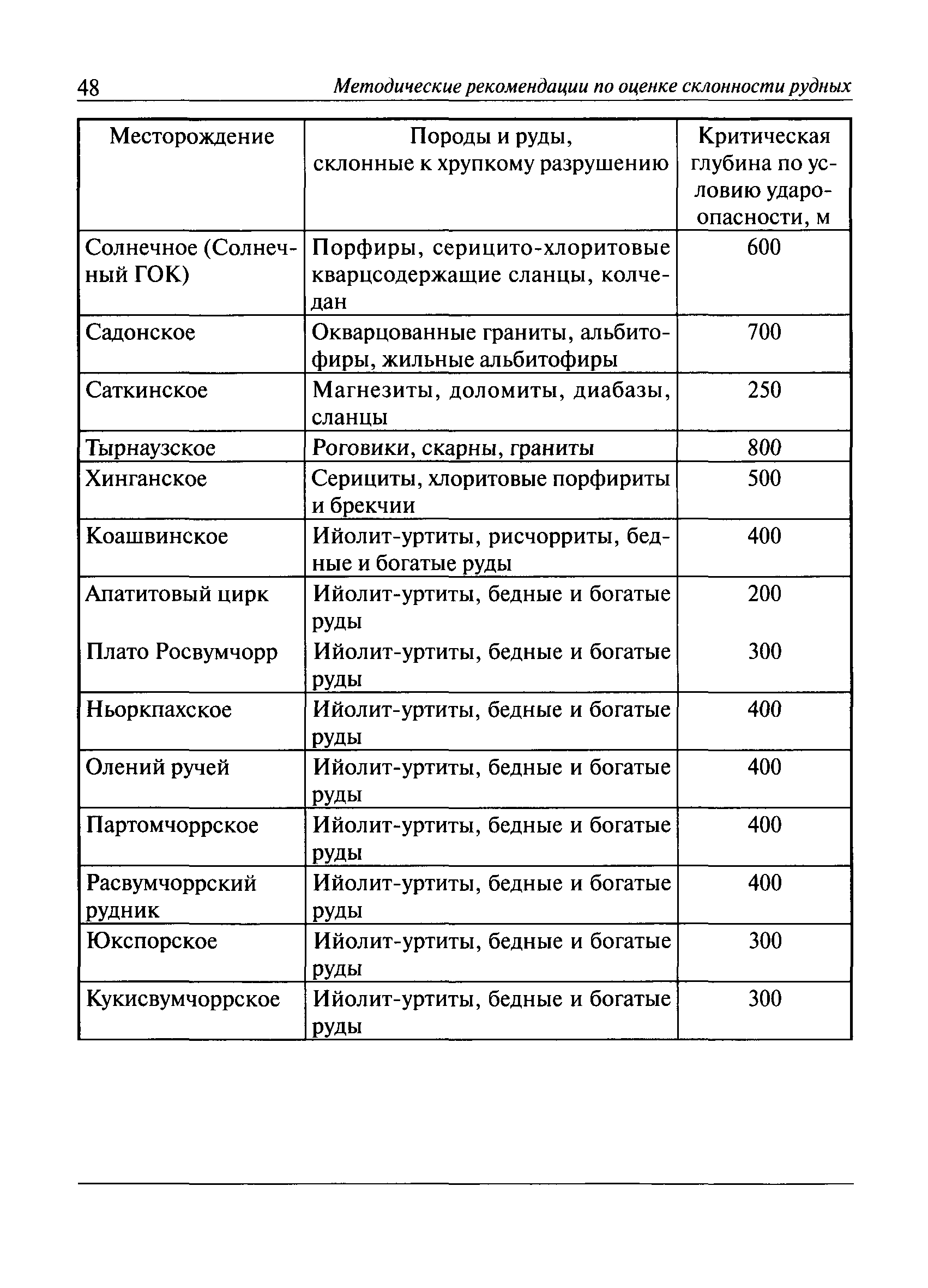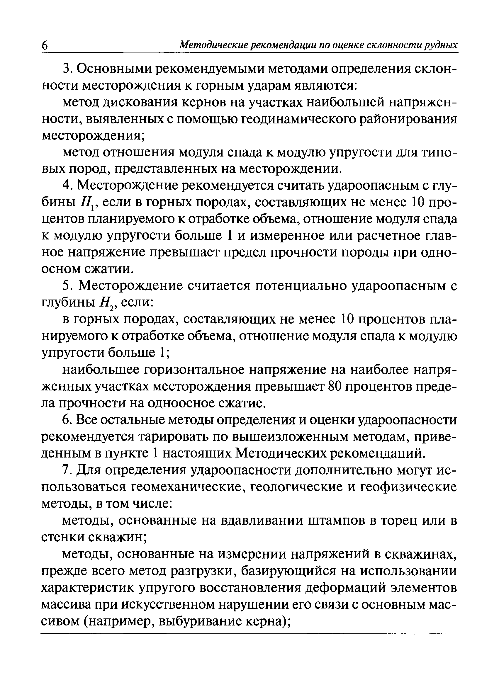 | Название рус.: | Методические рекомендации по оценке склонности рудных и нерудных месторождений к горным ударам |