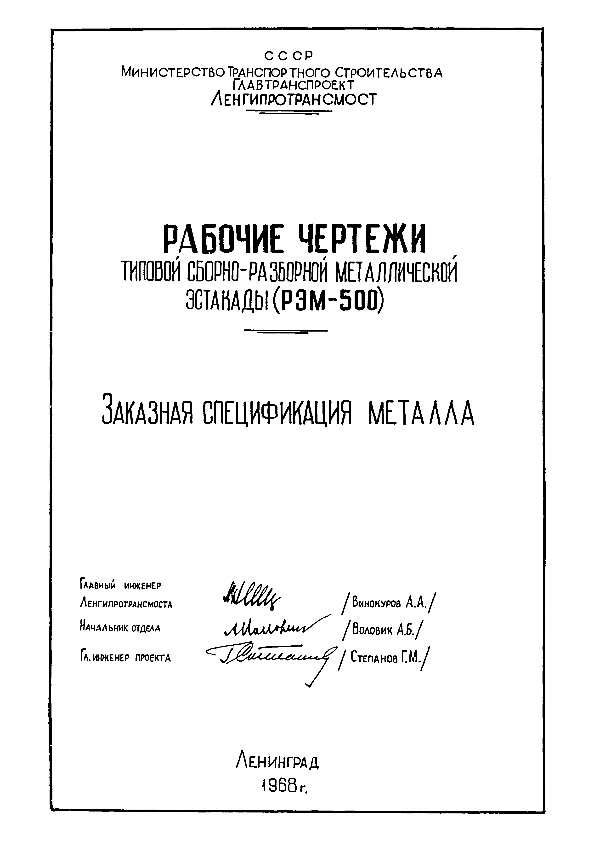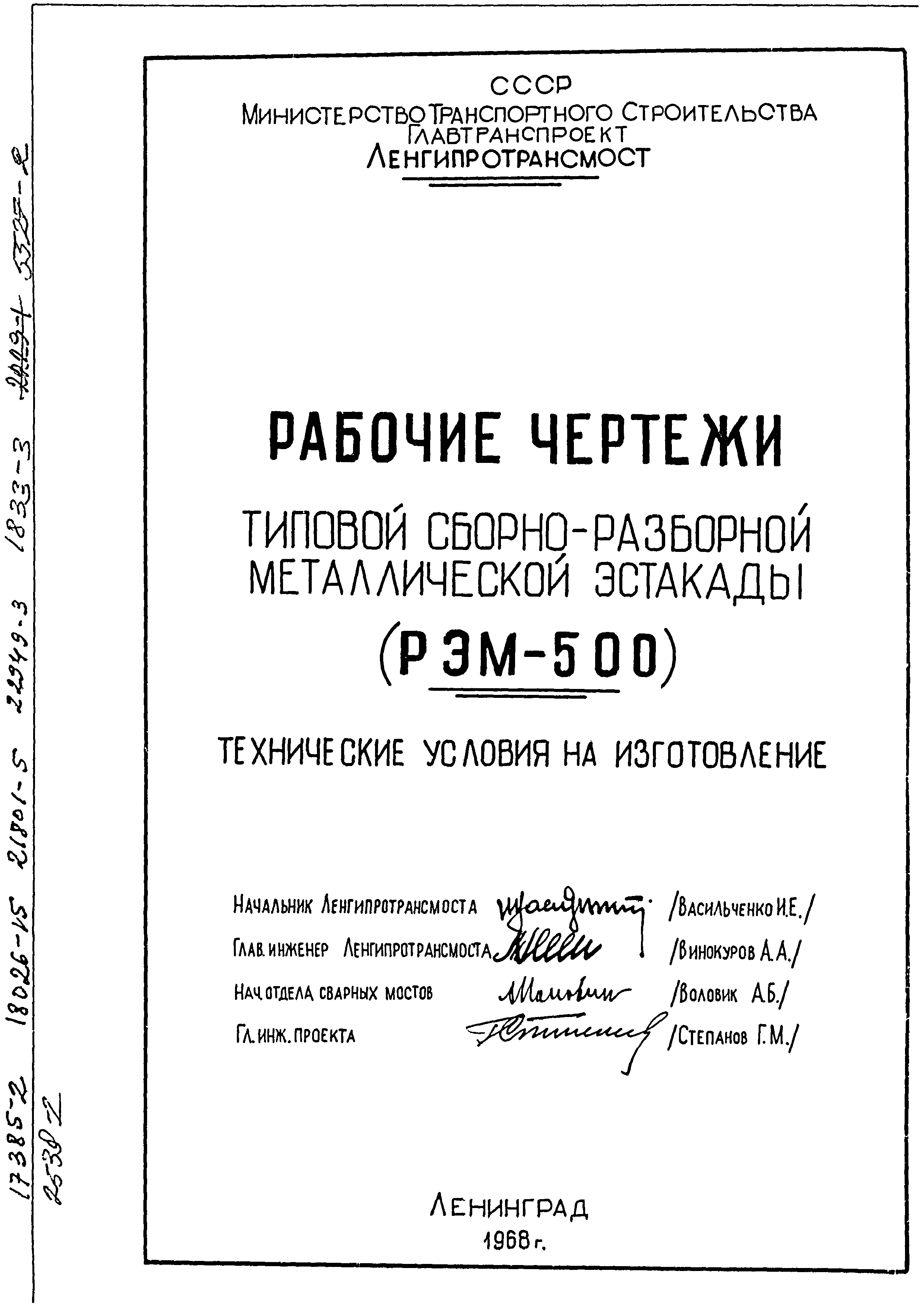 | | Утверждён: | 21.08.1968 Ленгипротрансмост