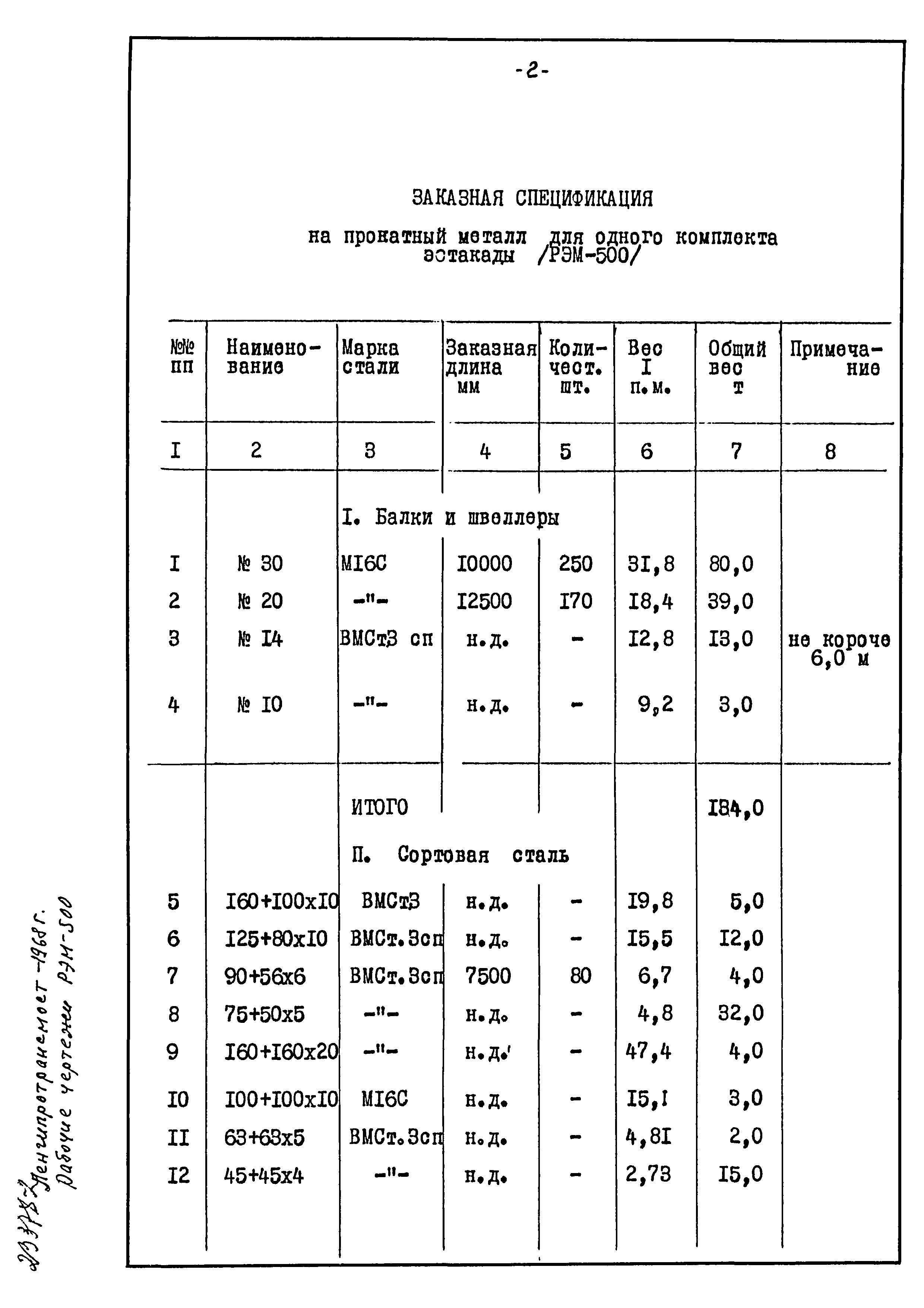Раздел II. Чертежи конструкций. Технические условия на изготовление| Статус: | действует | | Название рус.: | Раздел II. Чертежи конструкций. Технические условия на изготовление | | Дата добавления в базу: | 01.02.2017 | | Дата актуализации: | 01.01.2021 | | Дата введения: | 21.08.1968 | | Оглавление: | 1. Чертежи конструкций эстакады 2. Технические условия на заводское изготовление и ведомости поставки элементов 3. Заказные спецификации прокатного металла | | Разработан: | Ленгипротрансмост