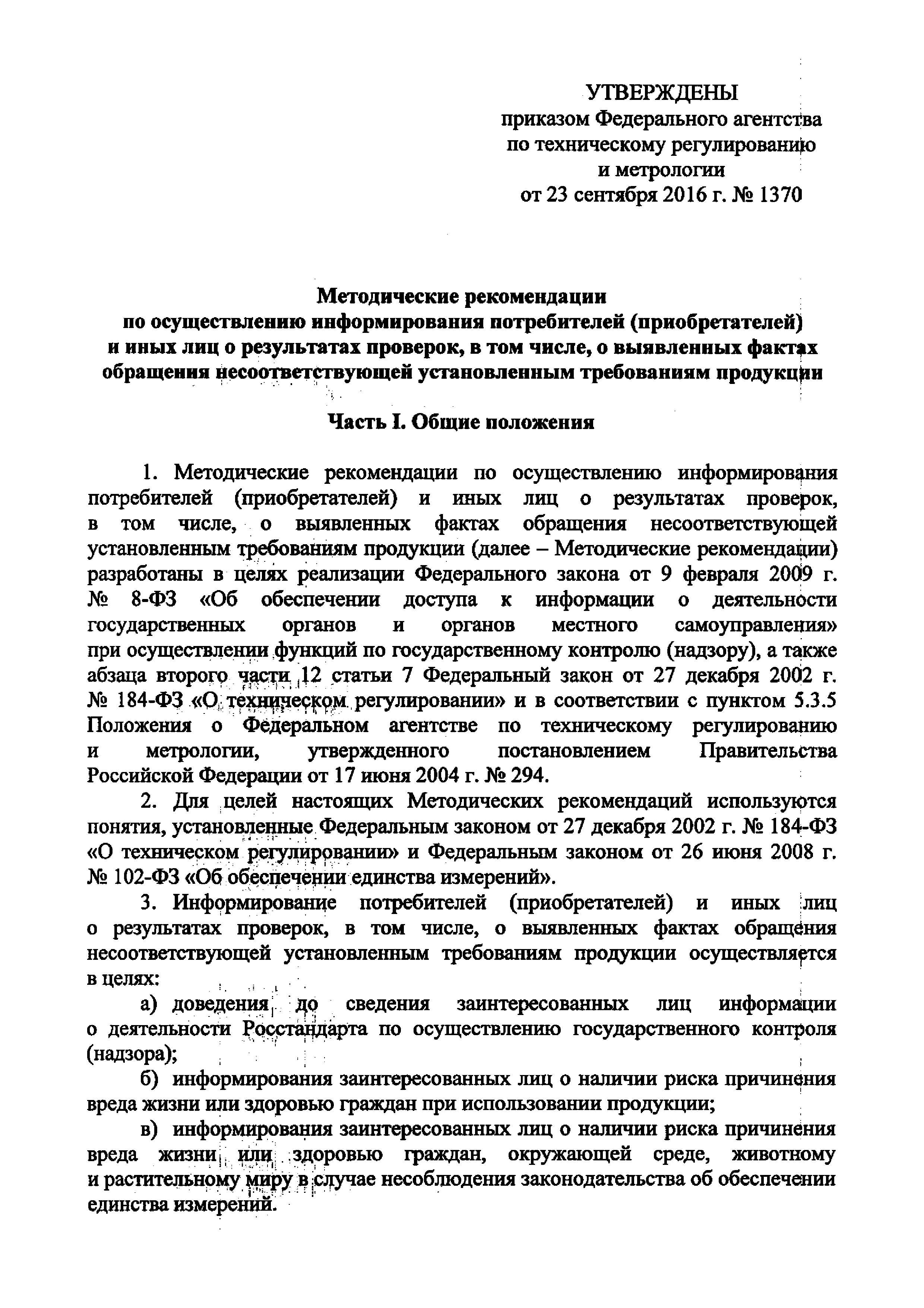 Скачать Методические рекомендации по осуществлению информирования потребителей (приобретателей) и иных лиц о результатах проверок, в том числе, о выявленных фактах обращения не соответствующей установленным требованиям продукцииДата актуализации: 01.01.2021