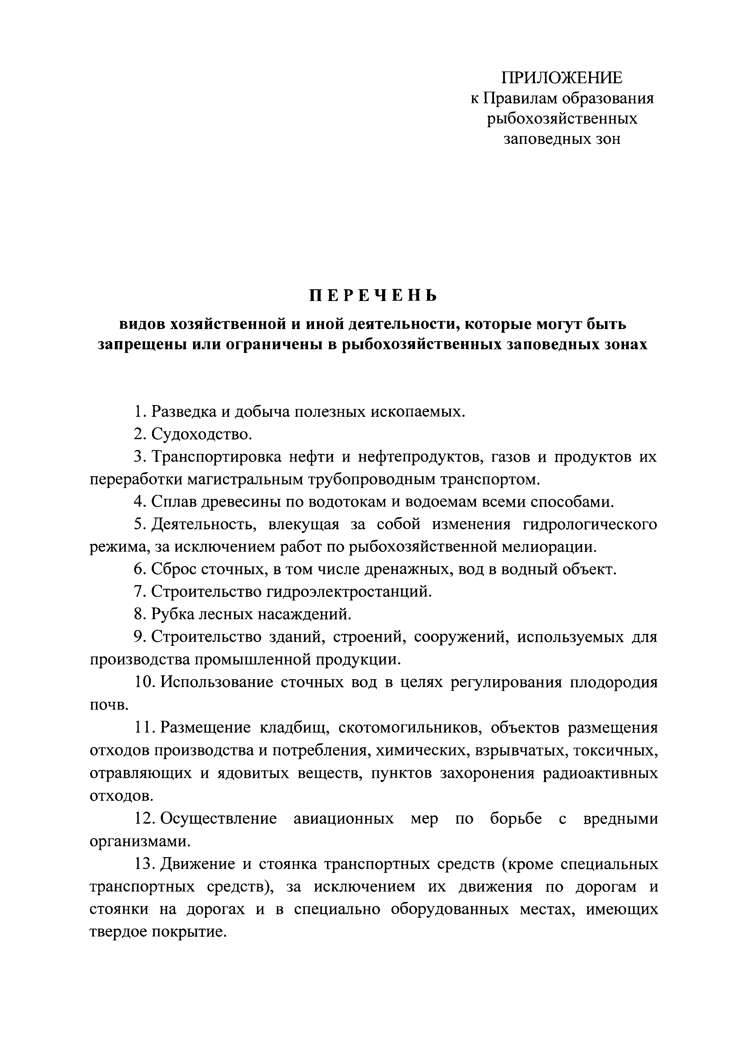 | Оглавление: | Приложение. Перечень видов хозяйственной и иной деятельности, которые могут быть запрещены или ограничены в рыбохозяйственных заповедных зонах |
