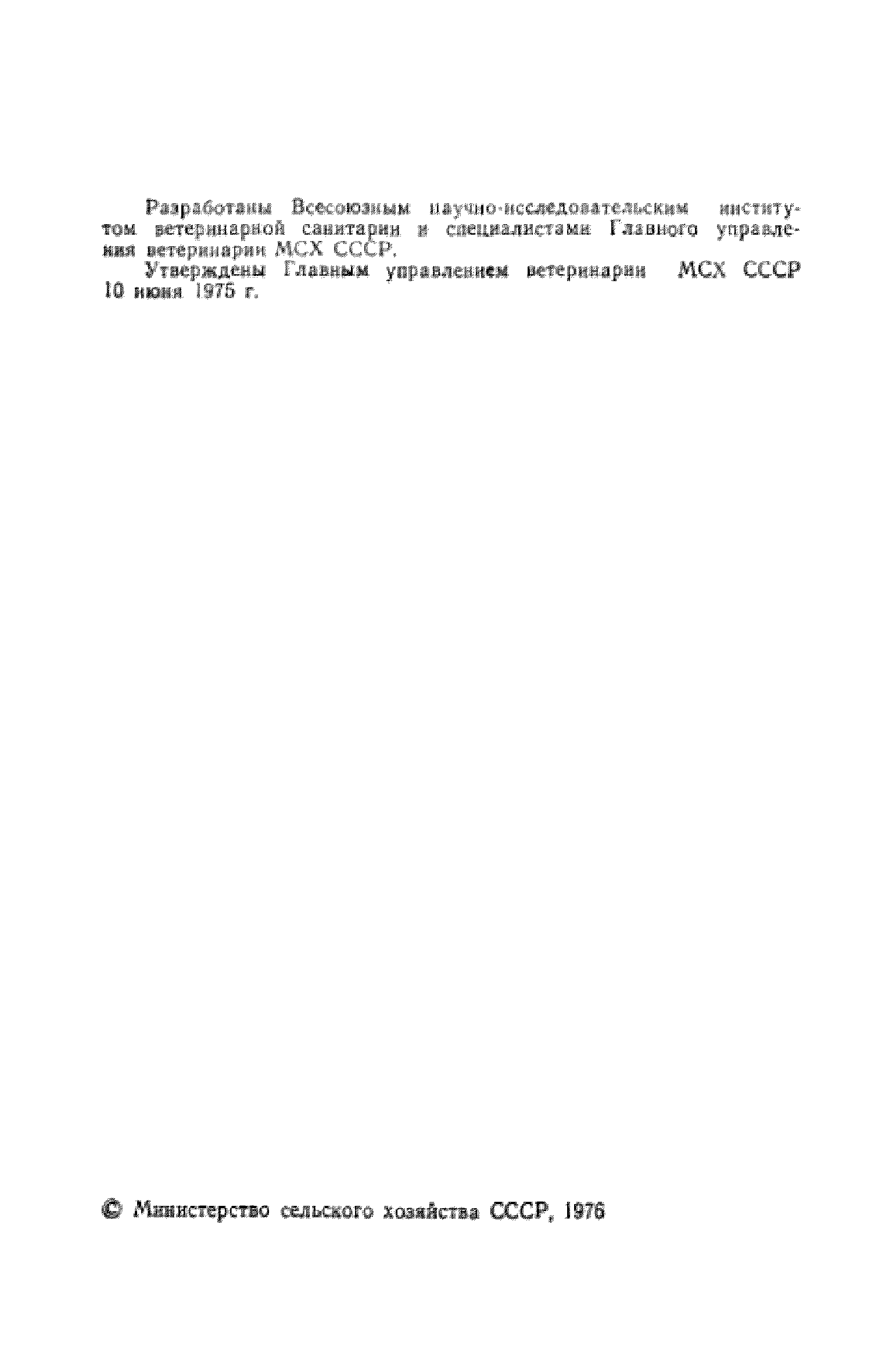 | Утверждён: | 10.06.1975 Главное управление ветеринарии Министерства сельского хозяйства СССР