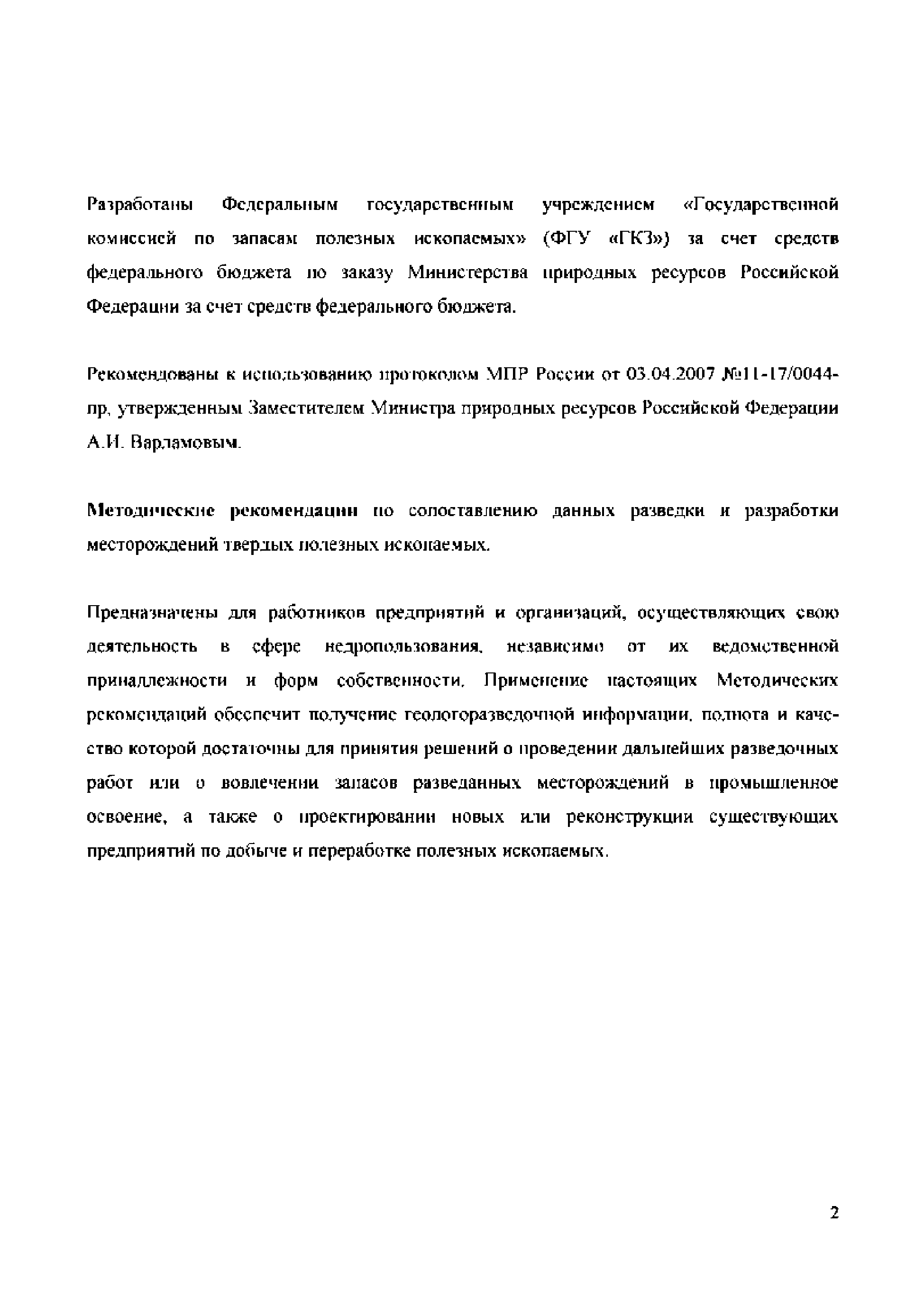 | | Утверждён: | 03.04.2007 Министерство природных ресурсов и экологии Российской Федерации