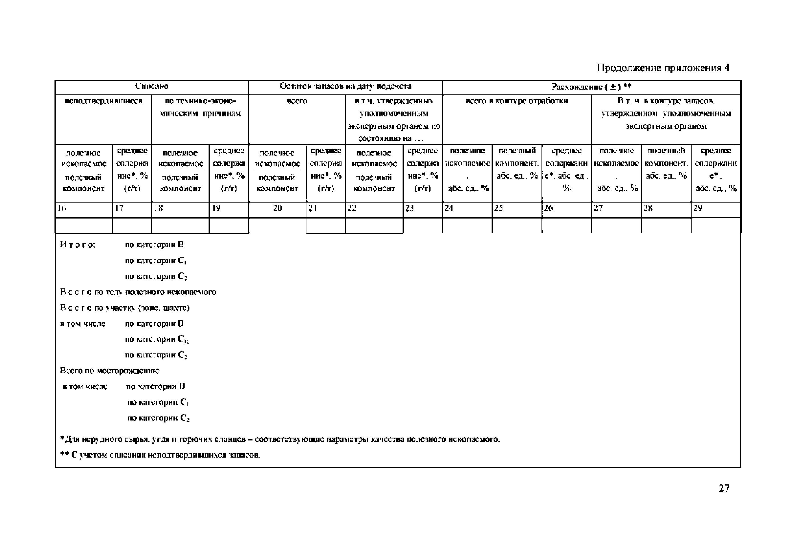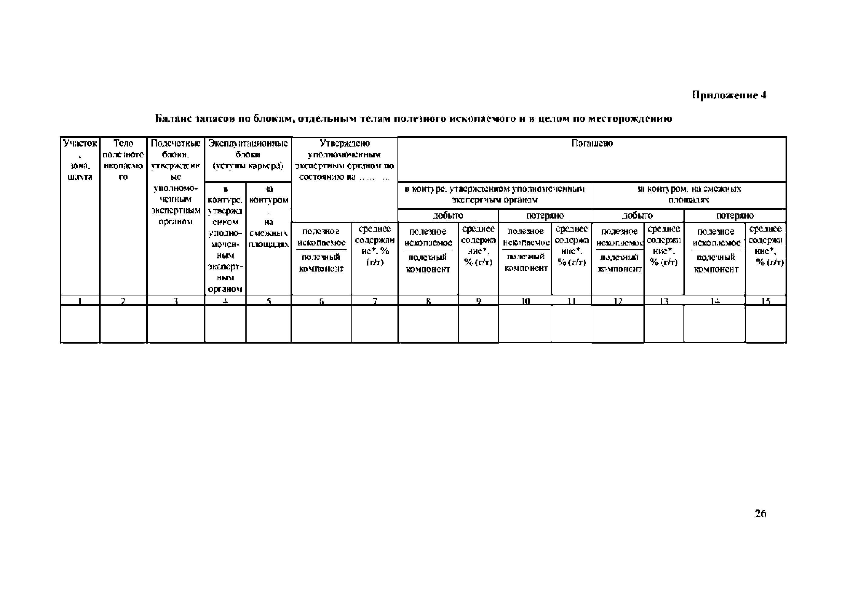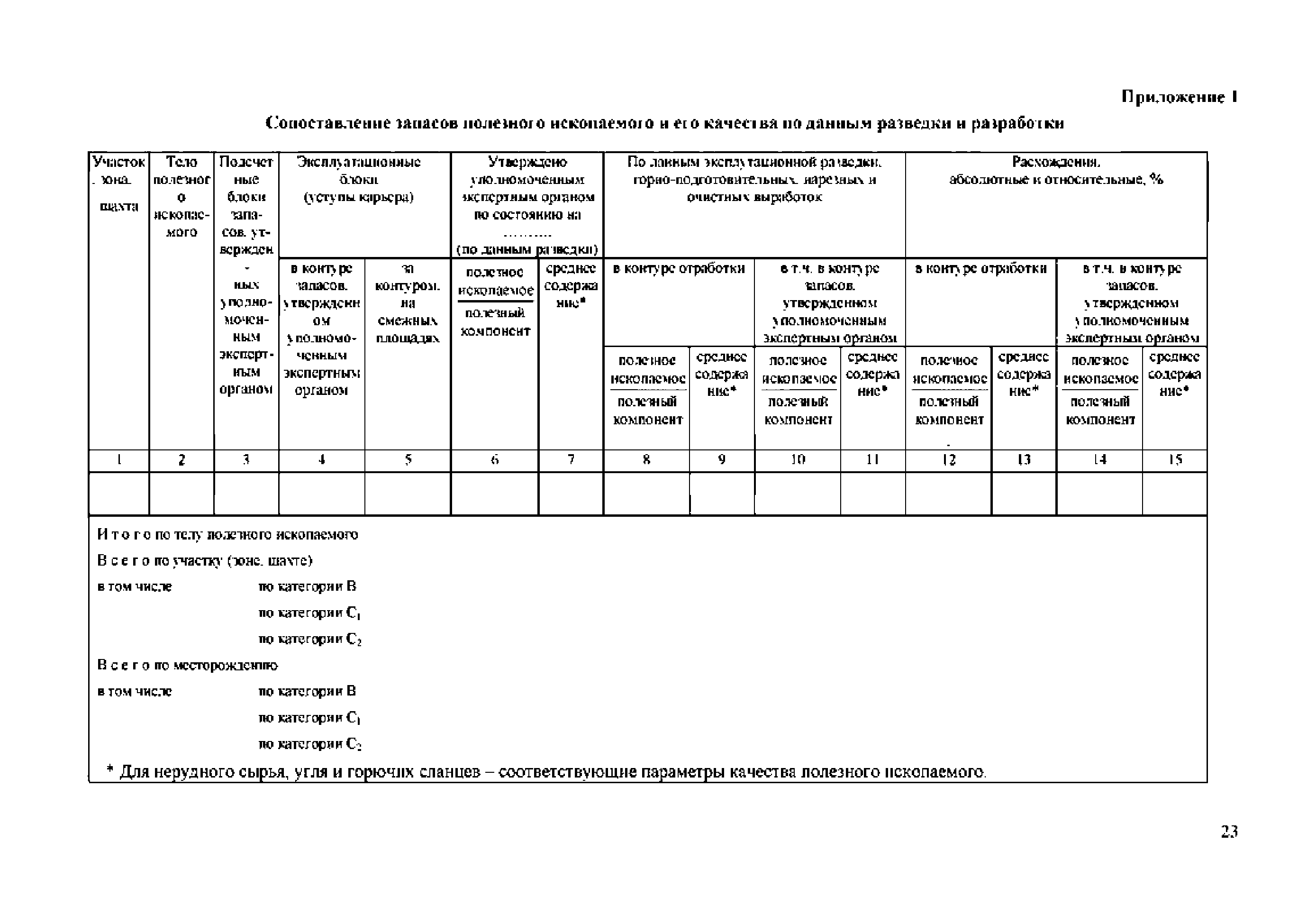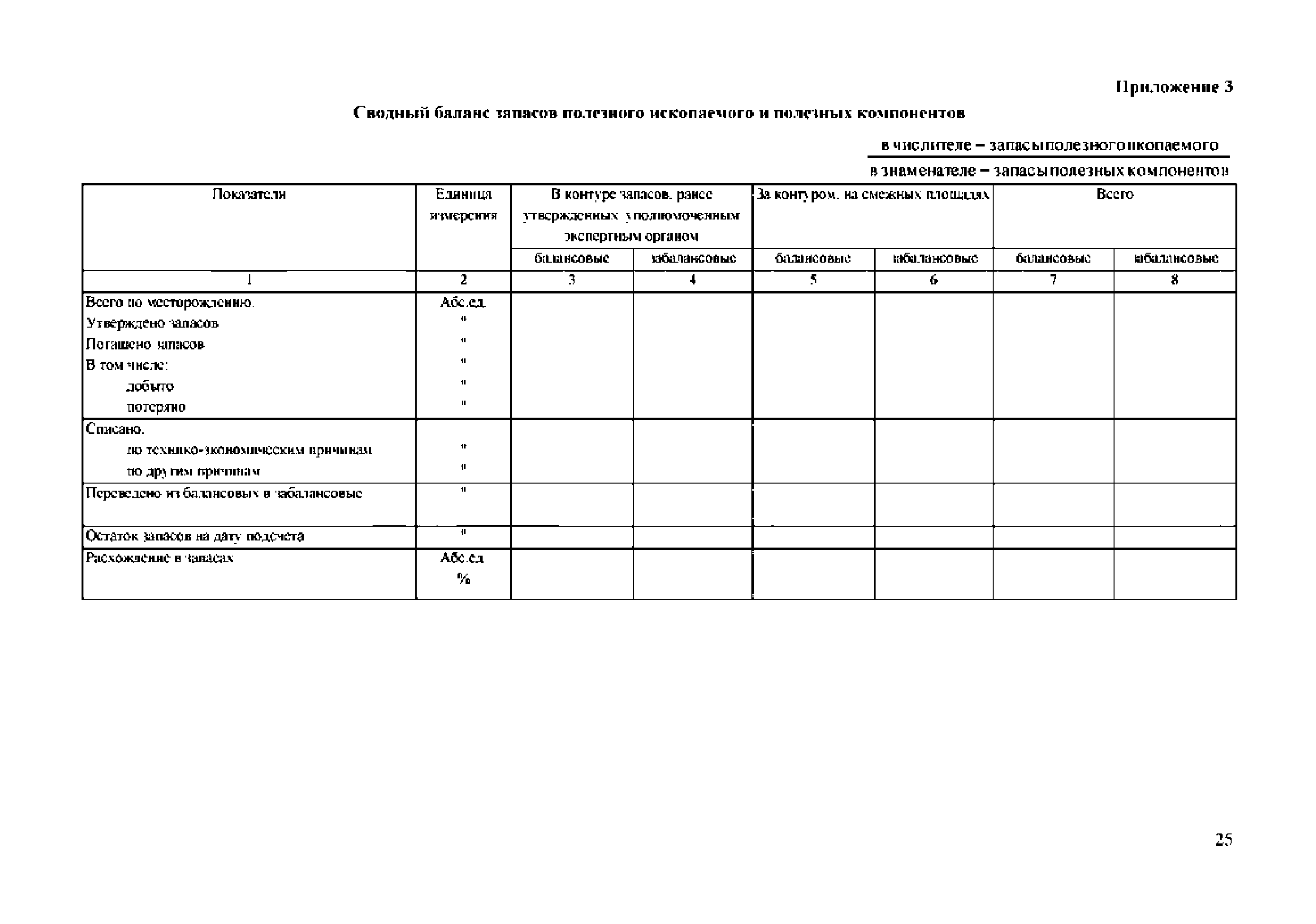 Методические рекомендации по сопоставлению данных разведки и разработки месторождений твердых полезных ископаемых| Статус: | действует | | Название рус.: | Методические рекомендации по сопоставлению данных разведки и разработки месторождений твердых полезных ископаемых | | Дата добавления в базу: | 01.02.2017 | | Дата актуализации: | 01.01.2021 | | Область применения: | Документ предназначен для работников предприятий и организаций, осуществляющих свою деятельность в сфере недропользования, независимо от их ведомственной принадлежности и форм собственности | | Оглавление: | I Общие положения II Состав, требования и методические основы сопоставления данных разведки и разработки III Сопоставление запасов, подсчитанных в очистном пространстве, с данными товарного опробования руды и данными переработки IV Оформление материалов сопоставления данных разведки и разработки V Требования к сопоставлению данных разведки и разработки отдельных участков месторождения, обработка которых производилась с использованием эксплуатационных кондиций Приложение 1. Сопоставление запасов полезного ископаемого и его качества по данным разведки и разработки Приложение 2. Сопоставление подсчетных параметров полезного ископаемого Приложение 3. Сводный баланс запасов полезного ископаемого и полезных компонентов Приложение 4. Баланс запасов по блокам, отдельным телам полезного ископаемого и в целом по месторождению Приложение 5. Сводная таблица балансовых запасов на месторождении (шахтном поле) Приложение 6. Сравнение данных добычи и переработки полезного ископаемого Приложение 7. Сопоставление основных показателей обработки месторождения в пределах выемочной единицы (блоками) | | Разработан: | ФГУ ГКЗ