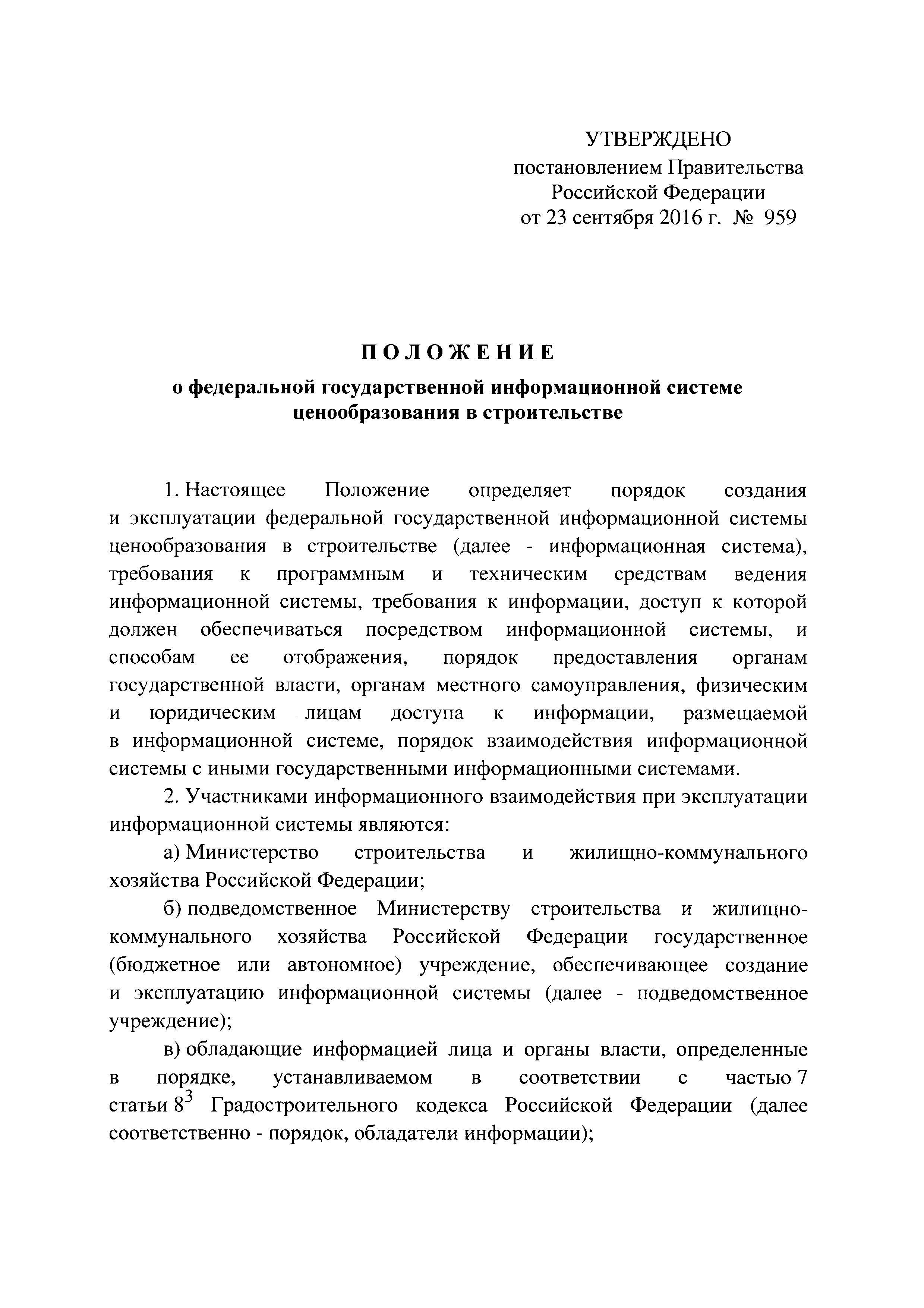 | Область применения: | Положение определяет порядок создания и эксплуатации федеральной государственной информационной системы ценообразования в строительстве, требования к программным и техническим средствам ведения информационной системы, требования к информации, доступ к которой должен обеспечиваться посредством информационной системы, и способам ее отображения, порядок предоставления органам государственной власти, органам местного самоуправления, физическим и юридическим лицам доступа к информации, размещаемой в информационной системе, порядок взаимодействия информационной системы с иными государственными информационными системами |