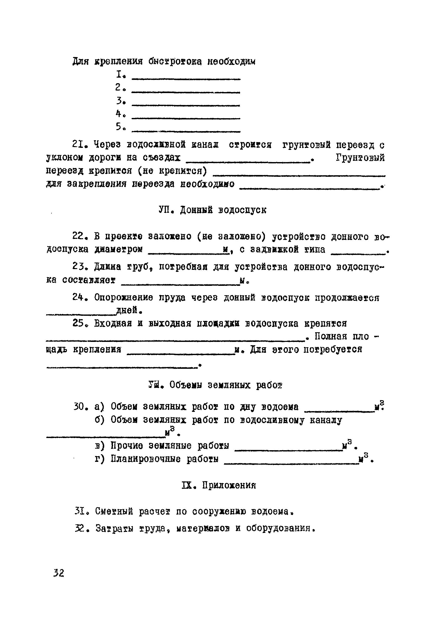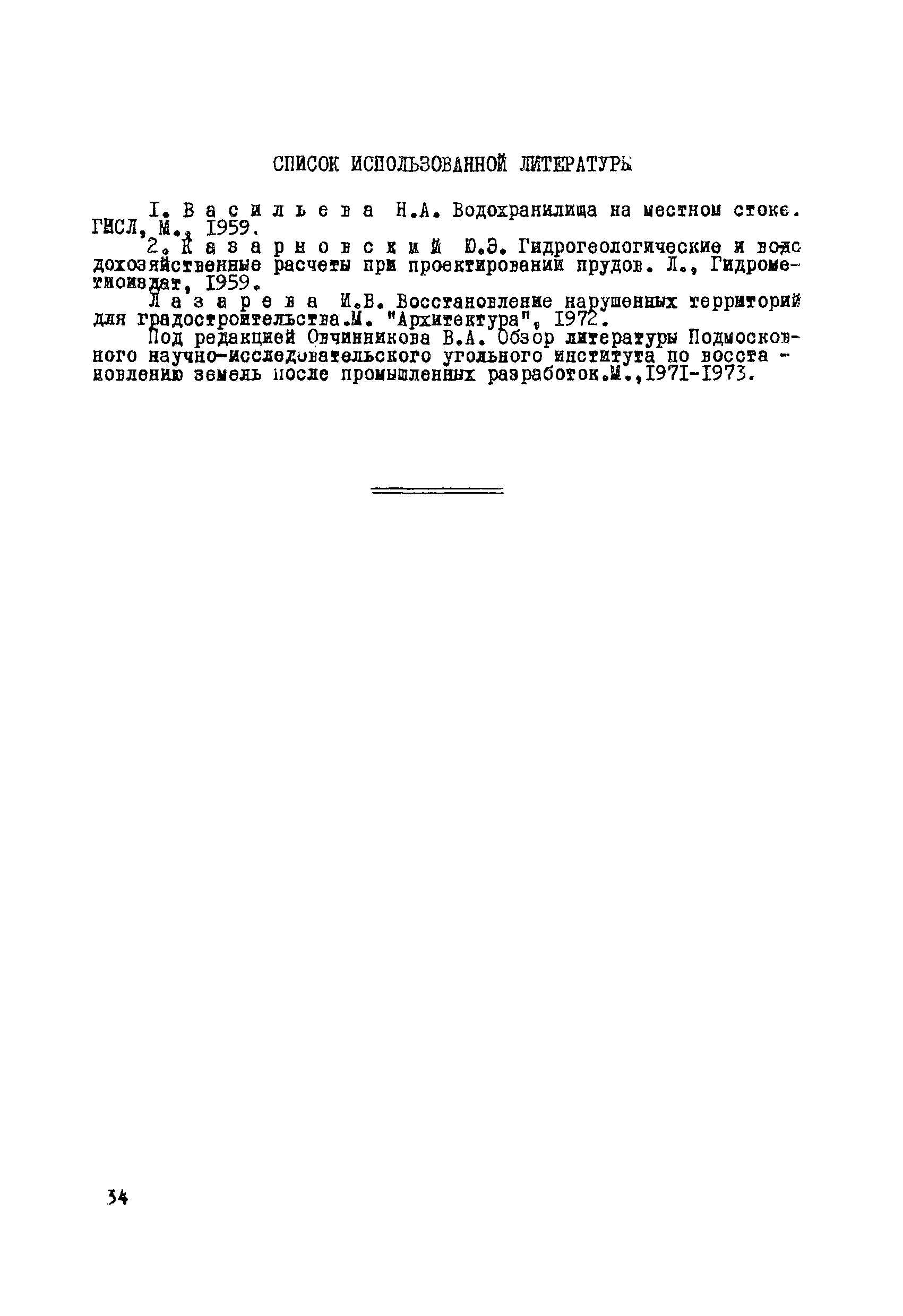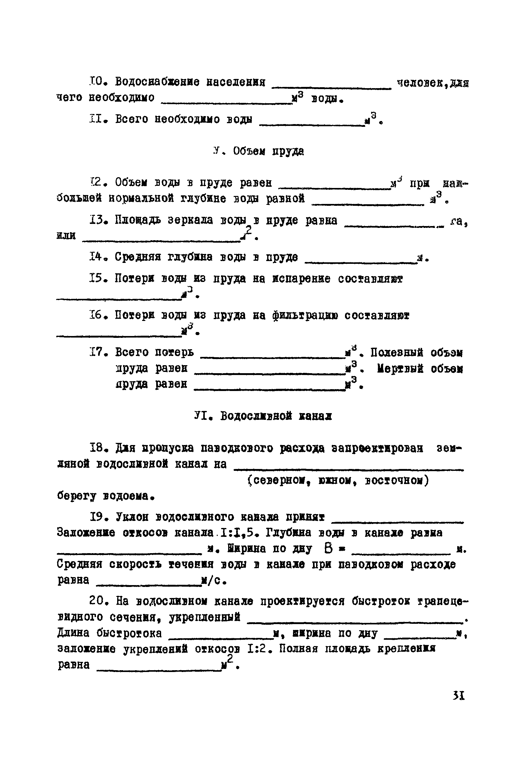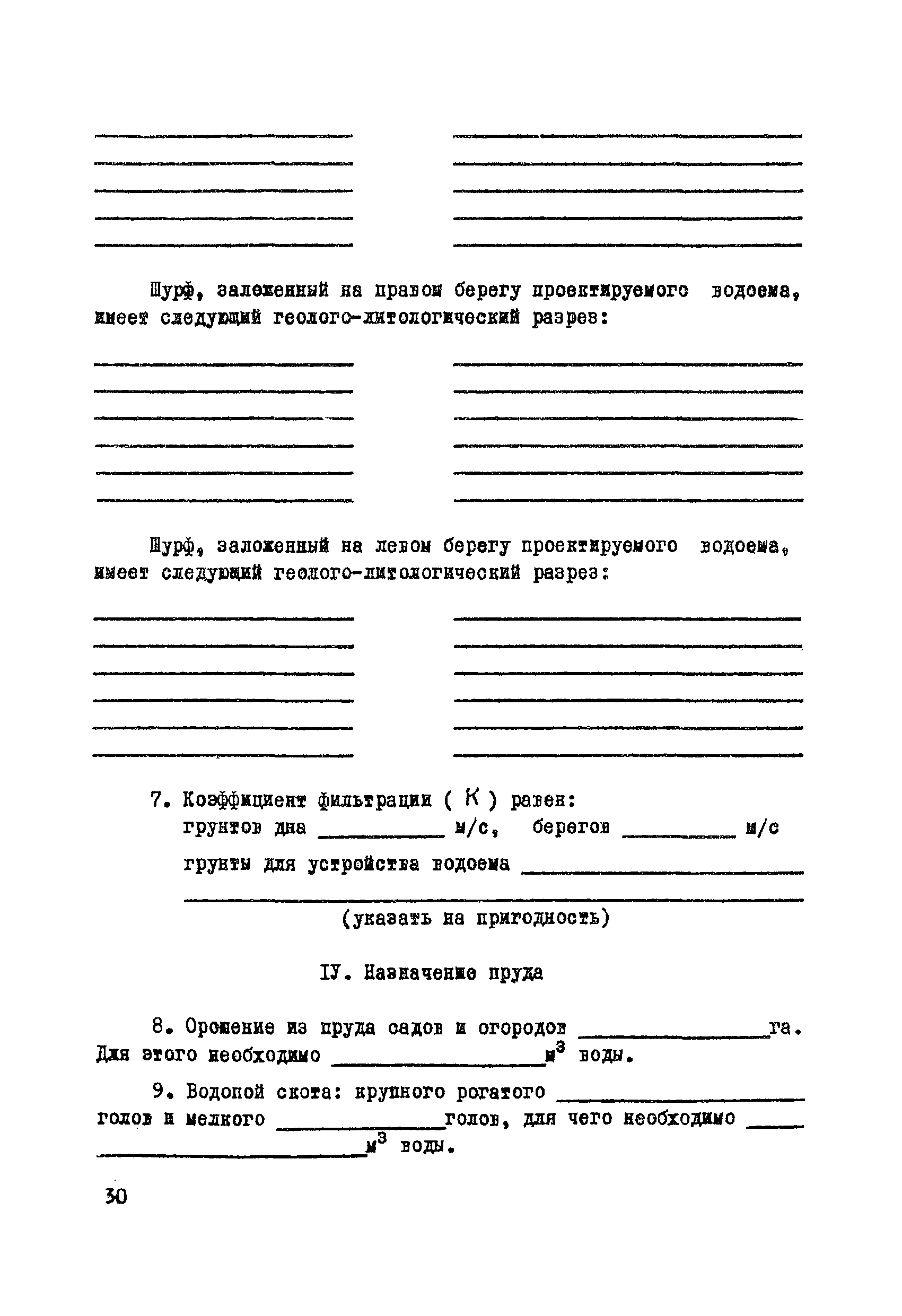 | Оглавление: | Раздел I. Инженерно-геологические, гидрогеологические и гидрологические изыскания 1 Общие сведения 2 Сбор и систематизация сведений об участке, подлежащем рекультивации 3 Оценка инженерно-геологических, гидрогеологических и гидрологических условии с целью предварительного выбора типа водоема и определения объемов полевых изыскательских работ 4 Полевые изыскательские работы 5 Камеральные изыскательские работы Раздел II. Гидрологические и водохозяйственные расчеты 1 Общие положения 2 Расчет водопритока в водоем 3 Расчет потерь воды из водоема 4 Характерные объемы водоемов, типы регулирования стока, их выбор 5 Примерные нормы хозяйственного водопотребления Раздел III. Проектирование водоемов 1 Общие положения 2 Вертикальная планировка и генеральный план 3 Противофильтрационные мероприятия Приложение 1. Средний слой весеннего поверхностного стока Приложение 2. Карта изолиний коэффициентов вариаций весеннего стока на территории степных и лесостепных районов Европейской части СССР Приложение 3. Карта изолиний среднего годового слоя испарения Приложение 4. Карта изолиний параметра А максимального весеннего стока 5 % обеспеченности Приложение 5. Карта изолиний параметра А максимального весеннего стока 1 % обеспеченности Приложение 6. Проект пруда Приложение 7. Топографическая характеристика водоема |