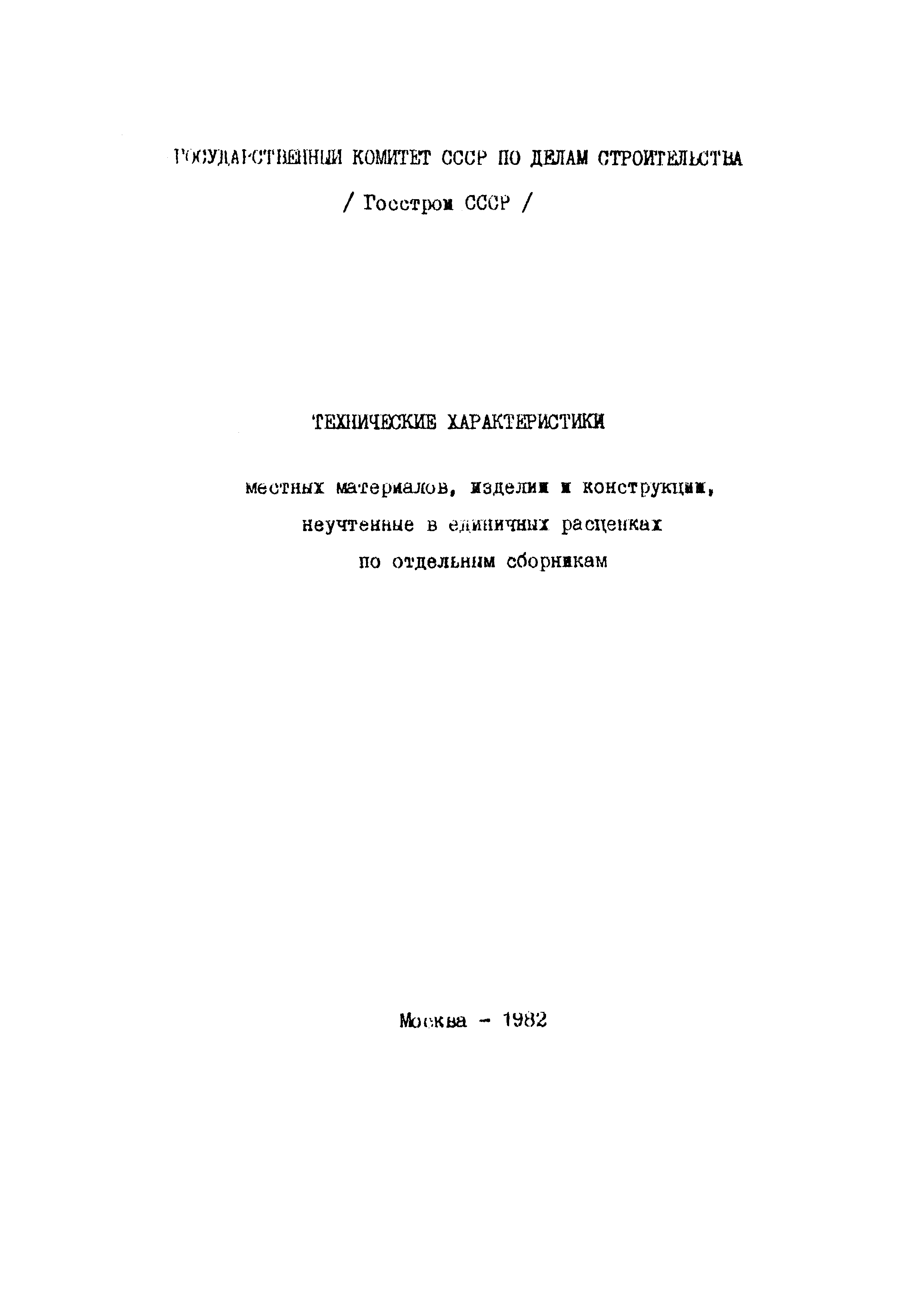 Скачать Технические характеристики местных материалов, изделий и конструкций, неучтенных в единичных расценках по отдельным сборникамДата актуализации: 01.01.2021