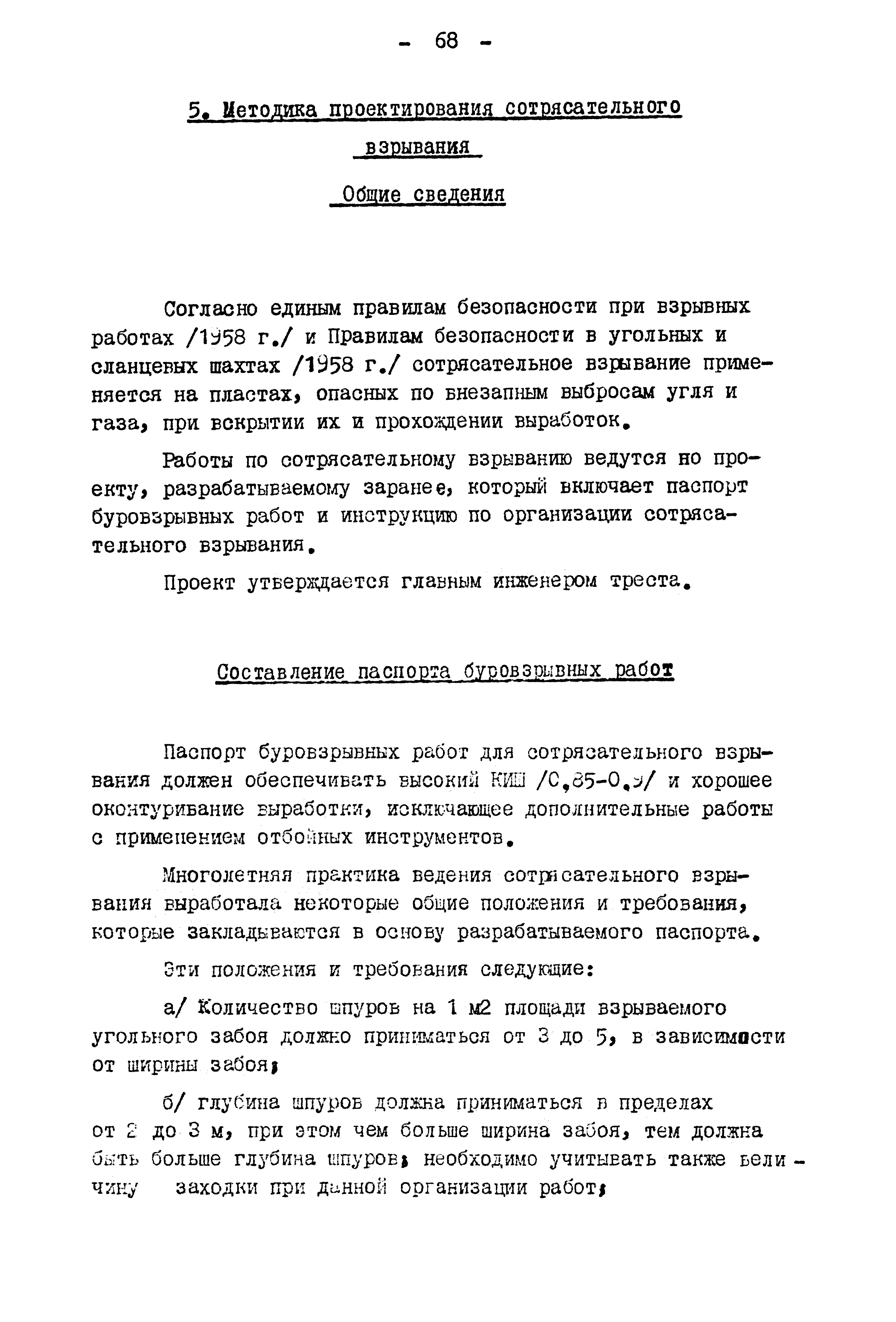 Технологические схемы проходки горных выработок по пластам, опасным по выбросам угля и газа| Статус: | справочные материалы, мп, тпр | | Название рус.: | Технологические схемы проходки горных выработок по пластам, опасным по выбросам угля и газа | | Дата добавления в базу: | 01.02.2017 | | Дата актуализации: | 01.01.2021 | | Область применения: | Сборник включает современные способы борьбы с выбросами и суфлярами во взаимной увязка с общей организацией проходки выработок как по простиранию и при вскрытии пласта, так и по линии падения или восстания пласта. Сборник предназначен для работников проектных и шахтостроительных организаций как руководство при разработке проектов проходки горных выработок по пластам, опасным по выбросам угля и газа. | | Оглавление: | Введение Раздел первый. Способы борьбы с внезапными выбросами и суфлярами. Характеристика основного оборудования. Методы установления расчетных параметров I Способы борьбы с внезапными выбросами угля и газа и суфлярными выделениями II Основное оборудование, устройства и приборы, применяемые для борьбы с внезапными выбросами и суфлярами III Методы установления расчетных параметров Раздел второй. Проведение выработок, вскрывающих угольные пласты, опасные по выбросам угля и газа I Общие положения и правила II Технологические схемы вскрытия А. Крутопадающие и наклонные пласты Б. Пологопадающие пласты Раздел третий. Проведение горизонтальных выработок по угольному пласту, опасному по выбросам угля и газа А. Крутопадающие пласты Б. Пологопадающие пласты Раздел четвертый. Проведение выработок по восстанию и падению пластов, опасных по выбросам угля и газа (пологие пласты) I Общие сведения и основные положения II Проходка бремсбергов (уклонов) и их ходков в направлении сверху вниз III Проходка бремсбергов (уклонов) и их ходков в направлении снизу вверх IV Проходка разрезных печей | | Утверждён: | Министерство угольной промышленности СССР (USSR Ministry of the Coal Industry )
