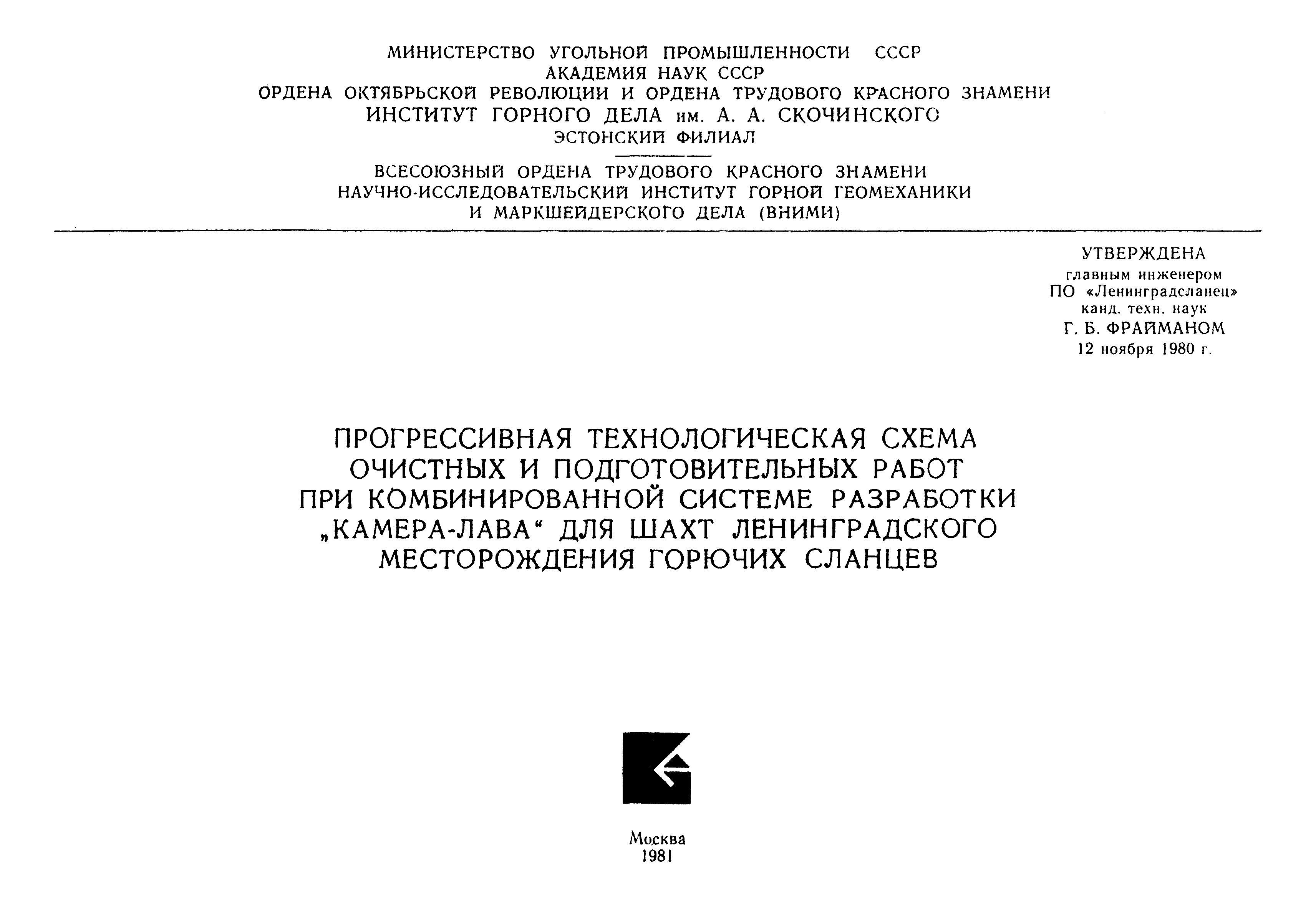 | | Утверждён: | 12.11.1980 ПО Ленинградсланец