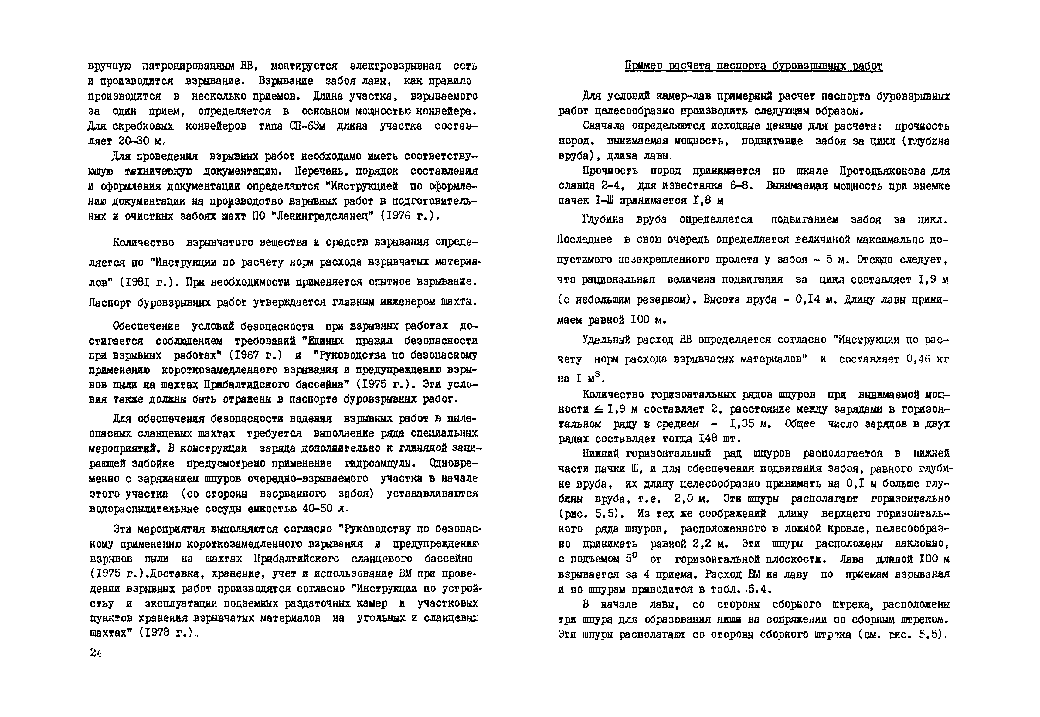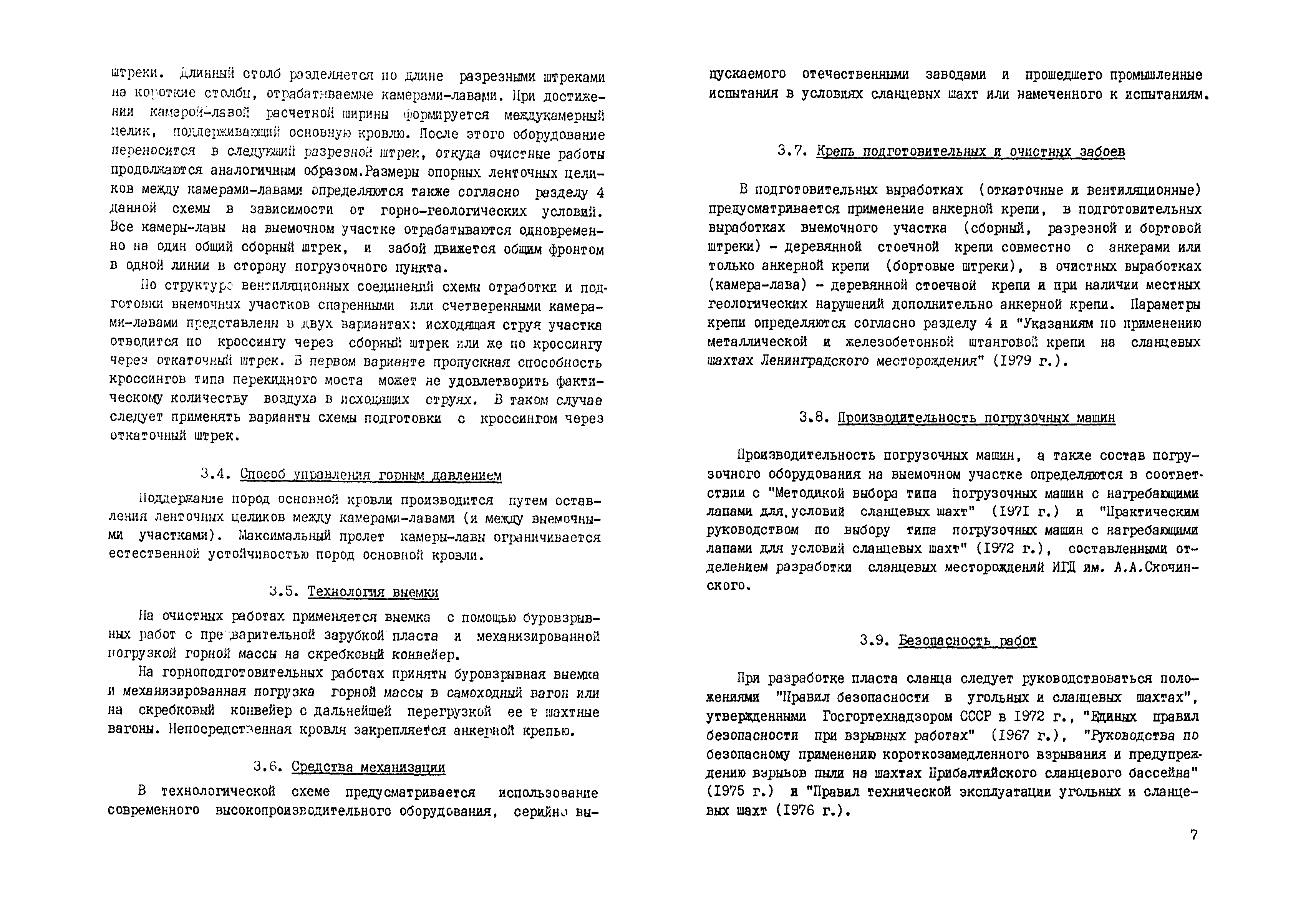 Прогрессивная технологическая схема очистных и подготовительных работ при комбинированной системе разработки "камера - лава" для шахт ленинградского месторождения горючих сланцев| Статус: | справочные материалы, мп, тпр | | Название рус.: | Прогрессивная технологическая схема очистных и подготовительных работ при комбинированной системе разработки "камера - лава" для шахт ленинградского месторождения горючих сланцев | | Дата добавления в базу: | 01.02.2017 | | Дата актуализации: | 01.01.2021 | | Область применения: | Технологическая схема состоит из пояснительной записки и ряда отдельных схем. Пояснительная записка содержит основные принципы разработки схемы, выбор параметров управления кровлей и конструктивных элементов системы разработки, характеристику технологических процессов и средств механизации очистных и подготовительных работ, а также транспорта, вопросы вентиляции, борьбы с пылью, электроснабжения очистных и подготовительных работ, опыт работы передовых бригад на вахтах, вопросы организации работ, методики определения нагрузки на забой и определения экономической эффективности технологической схемы. В качестве отдельных схем приведены схемы подготовки и система разработки, схем очистного забоя и размещения оборудования, схемы подготовки выемочных участков и проведения выработок, размещения оборудования для пылеподавления, схемы вентиляционных соединений и электроснабжения | | Оглавление: | 1 Введение 2 Современное состояние и пути совершенствования технологии подземной добычи сланцев на ленинградском месторождении 3 Основные принципы и исходные положения разработки технологической схемы 4 Выбор параметров управления кровлей и конструктивных элементов системы разработки 5 Технологические процессы очистных работ и средства механизации 6 Участковый транспорт 7 Горноподготовительные работы 8 Вопросы вентиляции и борьбы с пылью 9 Электроснабжение очистных и подготовительных работ 10 Производственно-технологическая связь и сигнализация 11 Производственная эстетика и культура труда на подземных участках сланцевых шахт 12 Опыт передовых бригад на очистных и подготовительных работах 13 Организация очистных работ 14 Расчет нагрузки на очистной забой 15 Экономическая эффективность технологической схемы 16 Методические указания по внедрению технологической схемы 17 Заключение Схемы очистных и подготовительных работ | | Разработан: | ВНИМИ ПО Ленинградсланец Эстонский филиал ИГД им. А.А. Скочинского