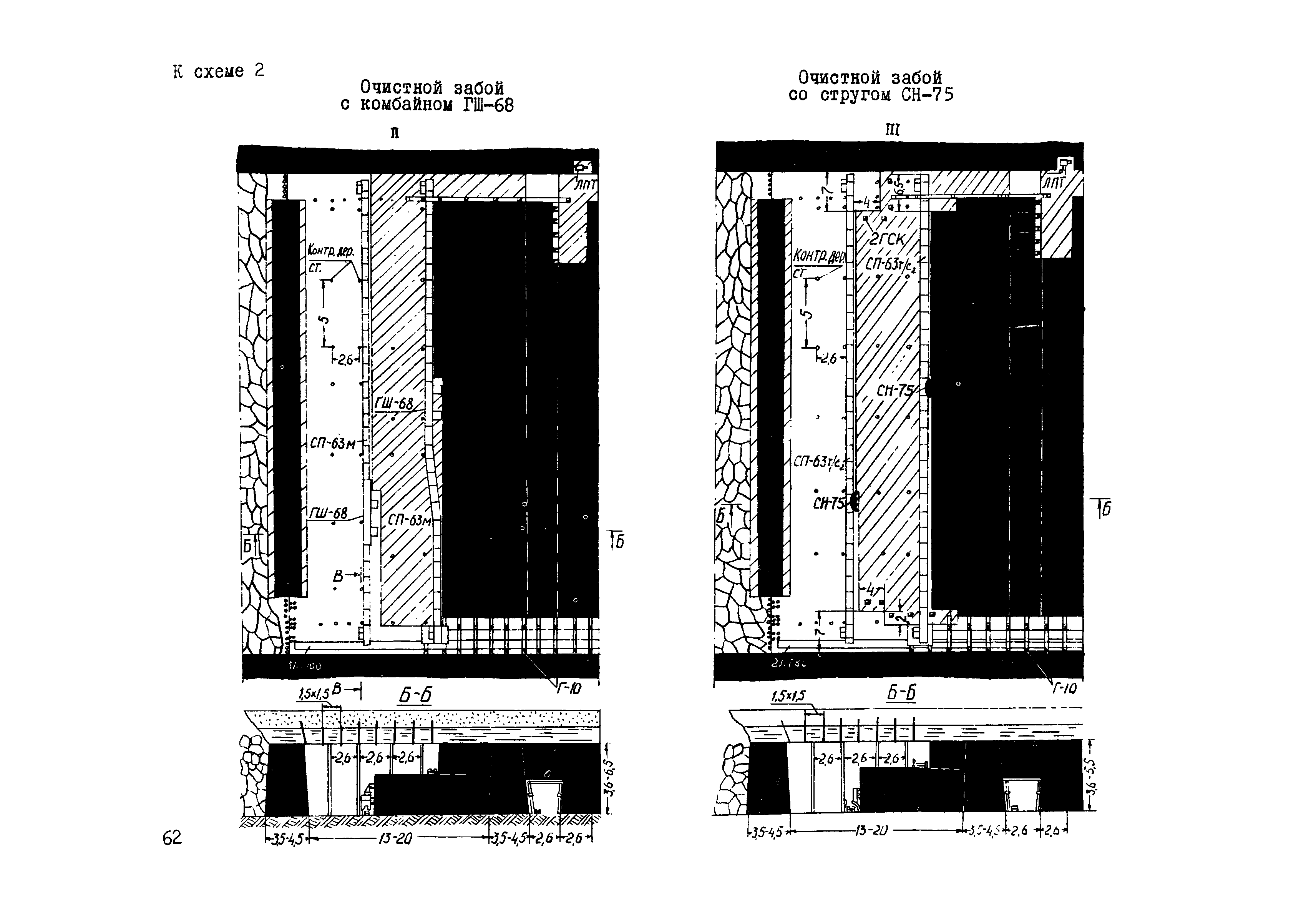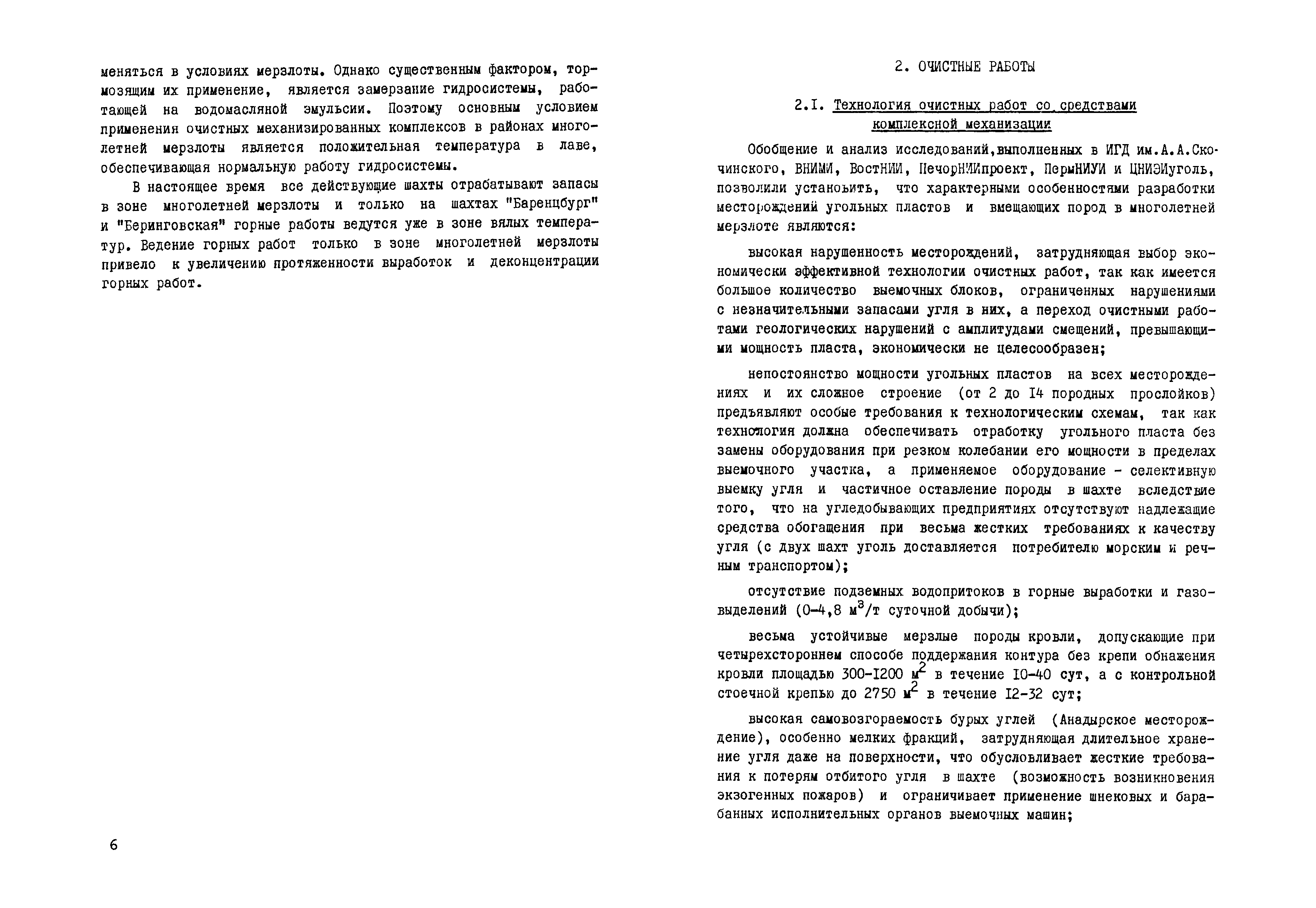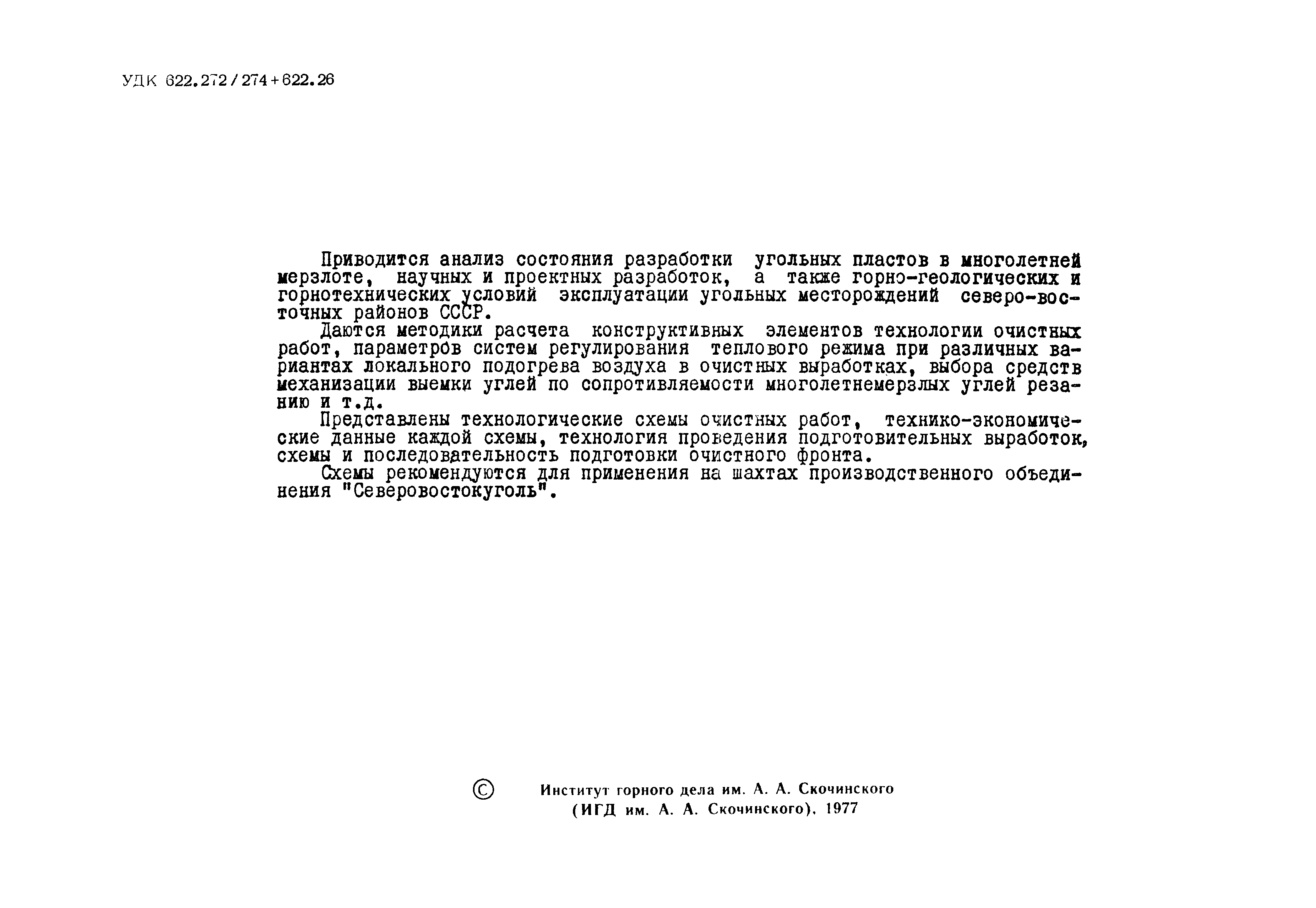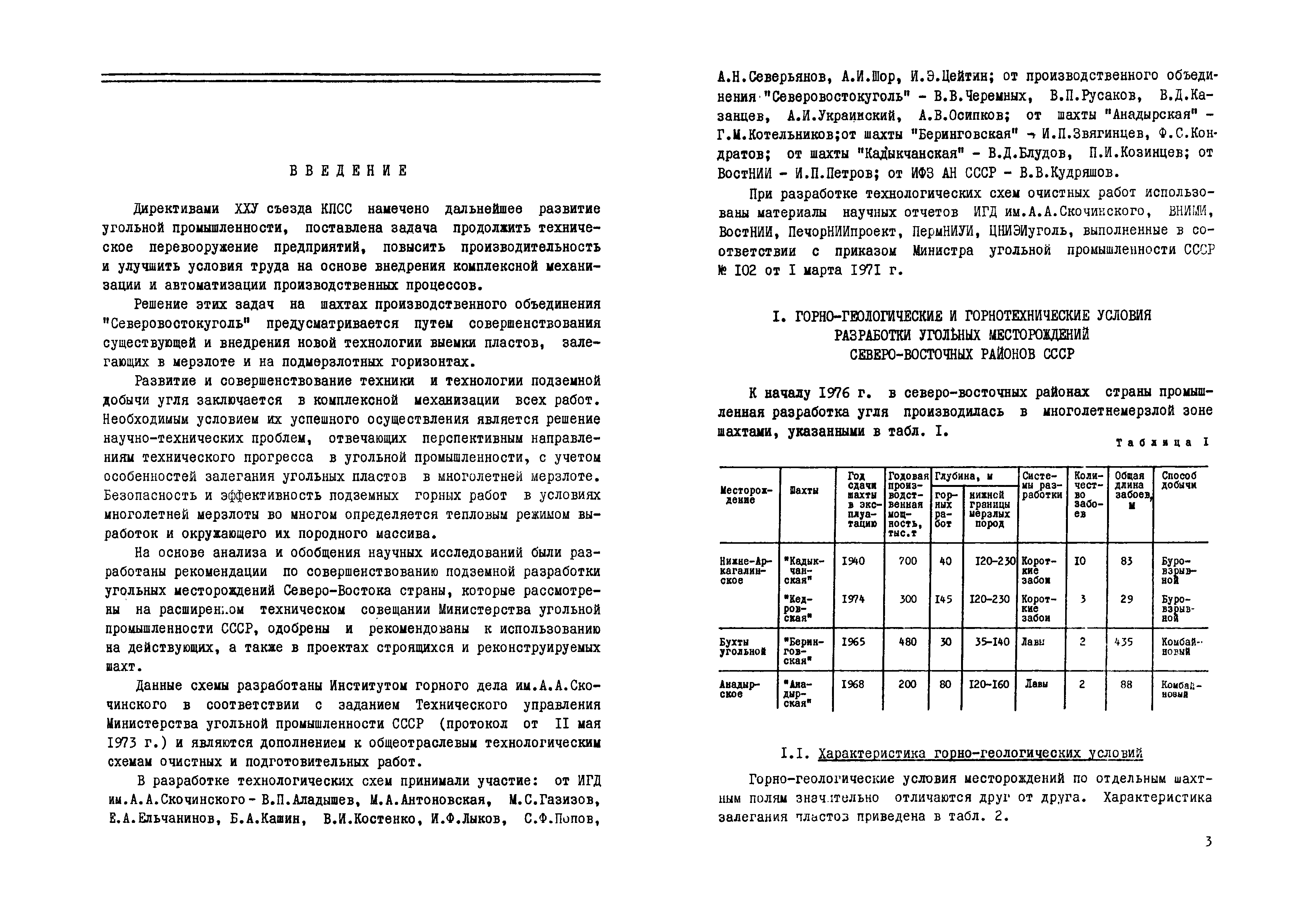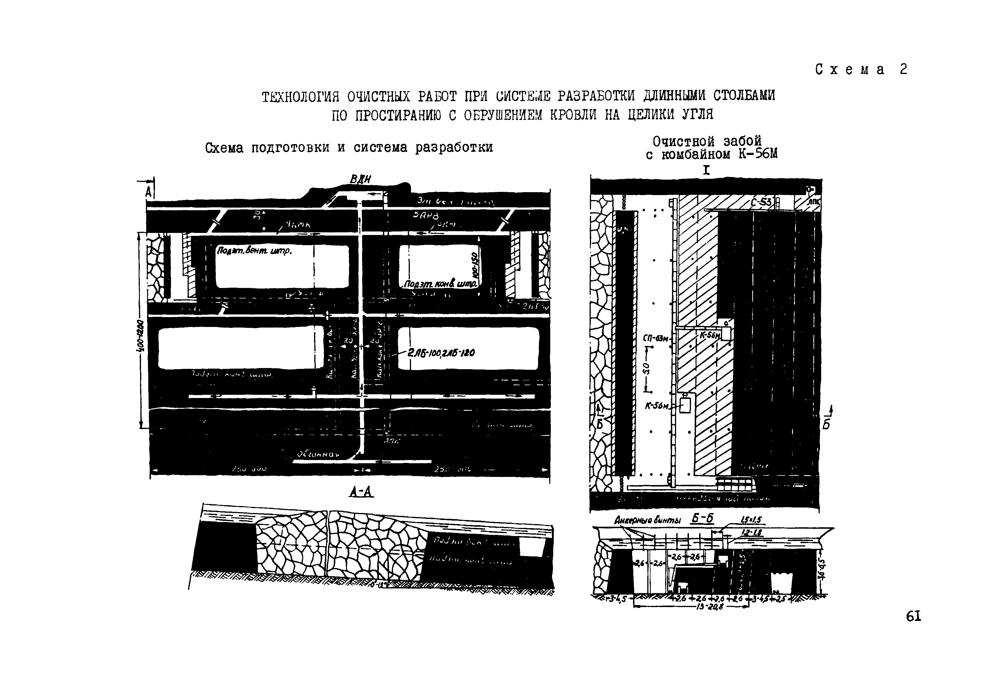 | Оглавление: | 1 Горно-геологические и горно-технические условия разработки угольных месторождений северо-восточных районов СССР 2 Очистные работы 3 Проведение подготовительных выработок 4 Тепловой режим шахт, работающих в зоне многолетней мерзлоты 5 Способы и средства комплексного обеспыливания шахт 6 Защита горных выработок от воды 7 Технологические схемы Схема 1. Технология очистных работ при системе разработки длинными столбами по простиранию с обрушением кровли Схема 2. Технология очистных работ при системе разработки длинными столбами по простиранию с обрушением кровли на целики угля Схема 3. Технология очистных работ при камерной системе разработки с поддержанием кровли на целиках угля |