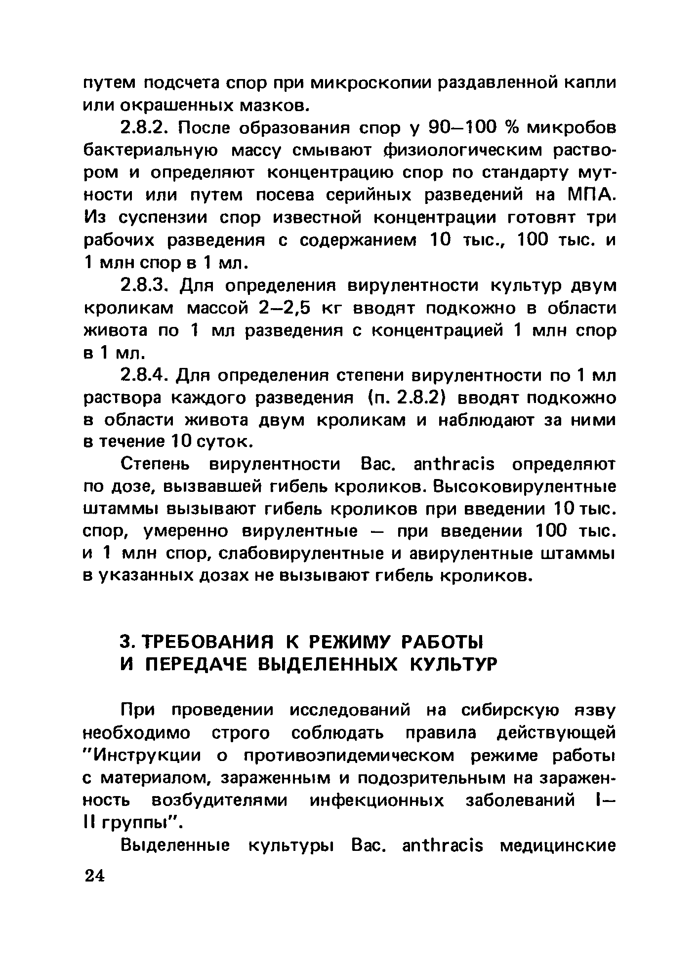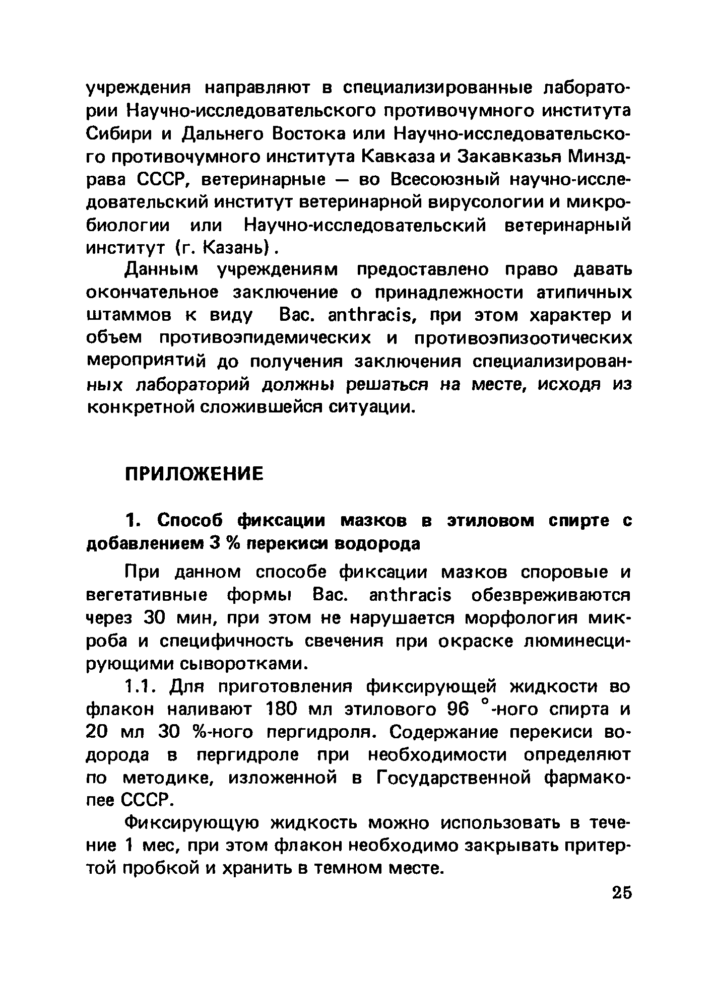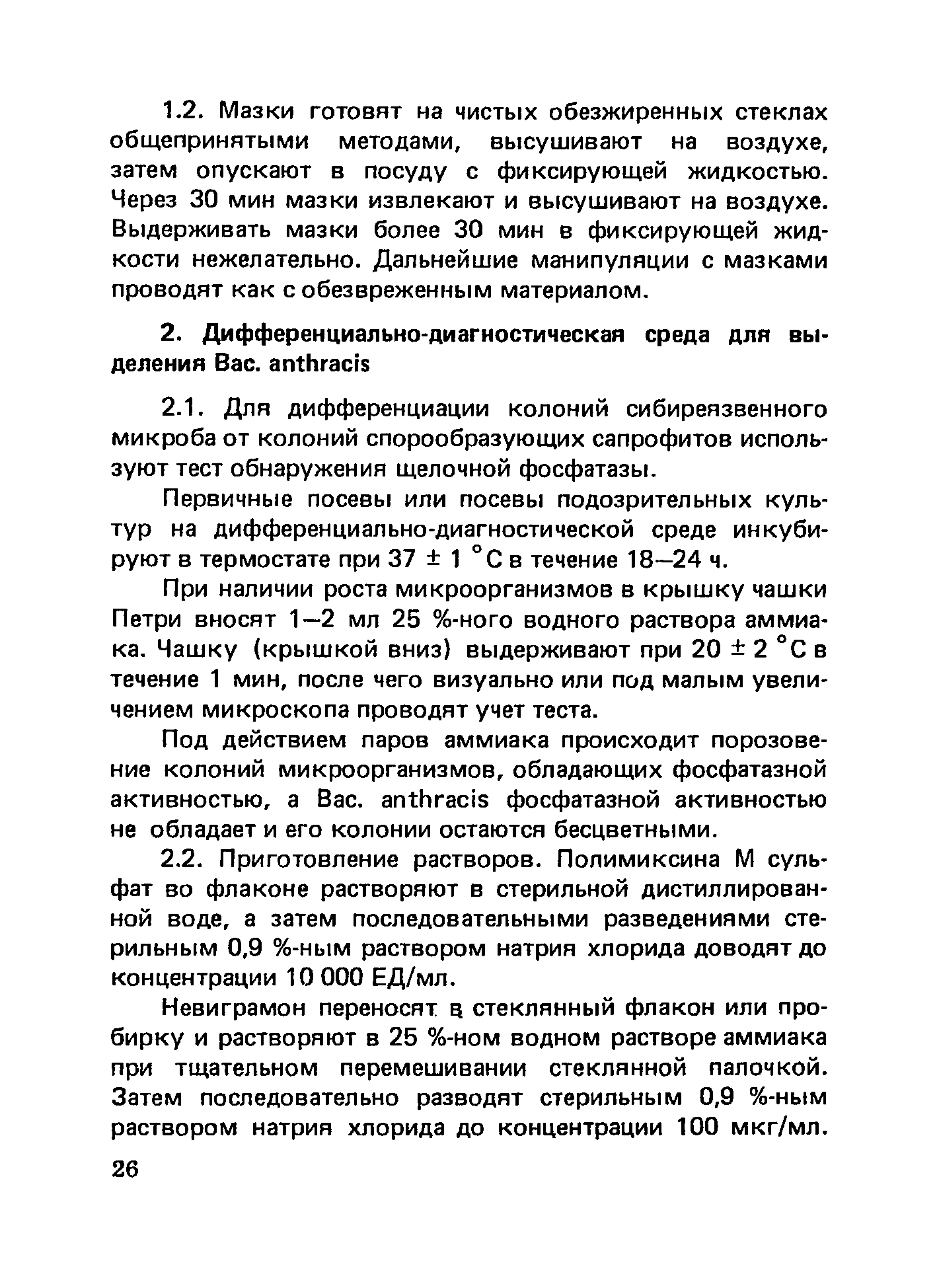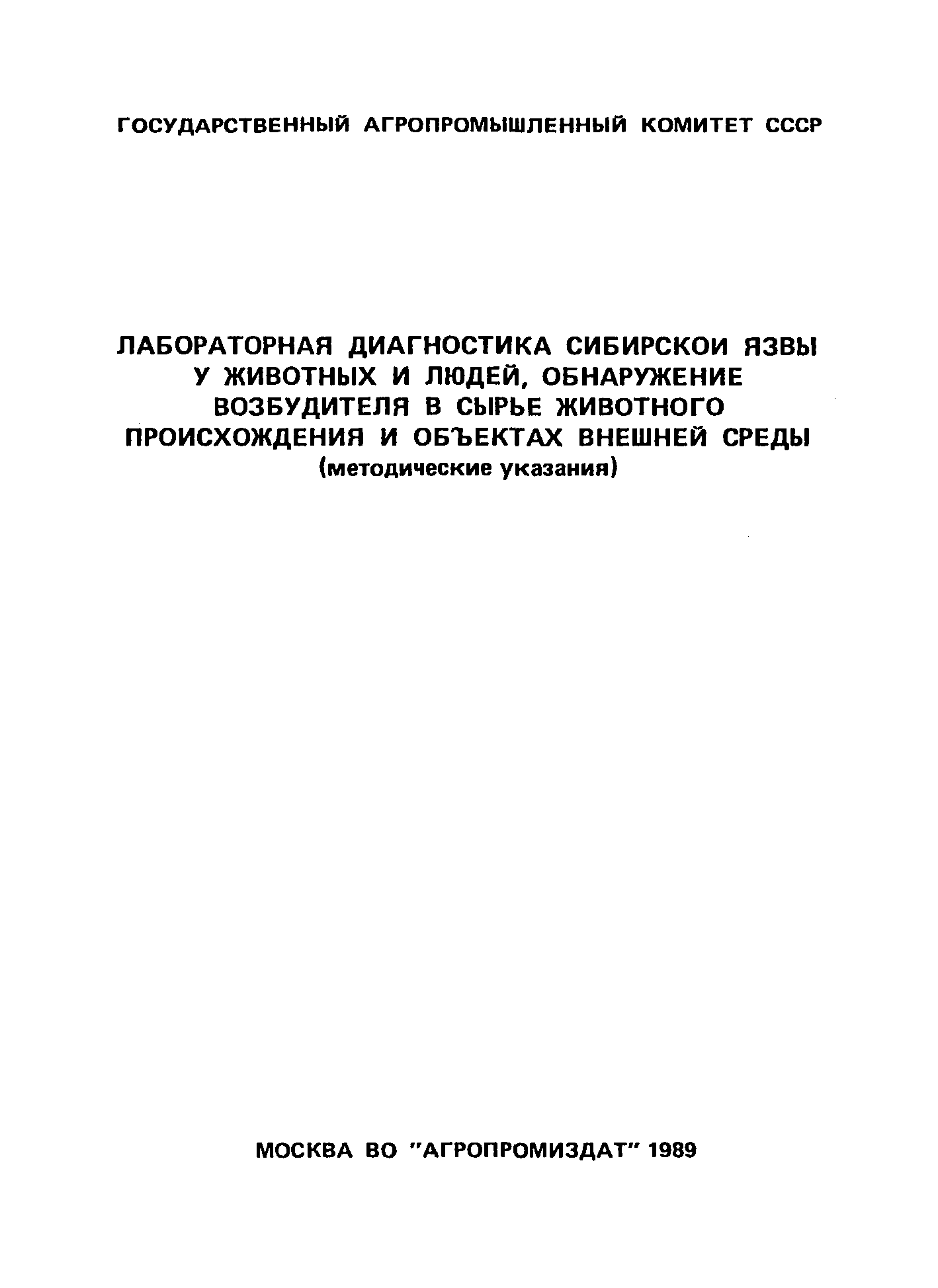 - «Методические указания по лабораторной диагностике сибирской язвы» (утвержден 7 мая 1979 г.)
