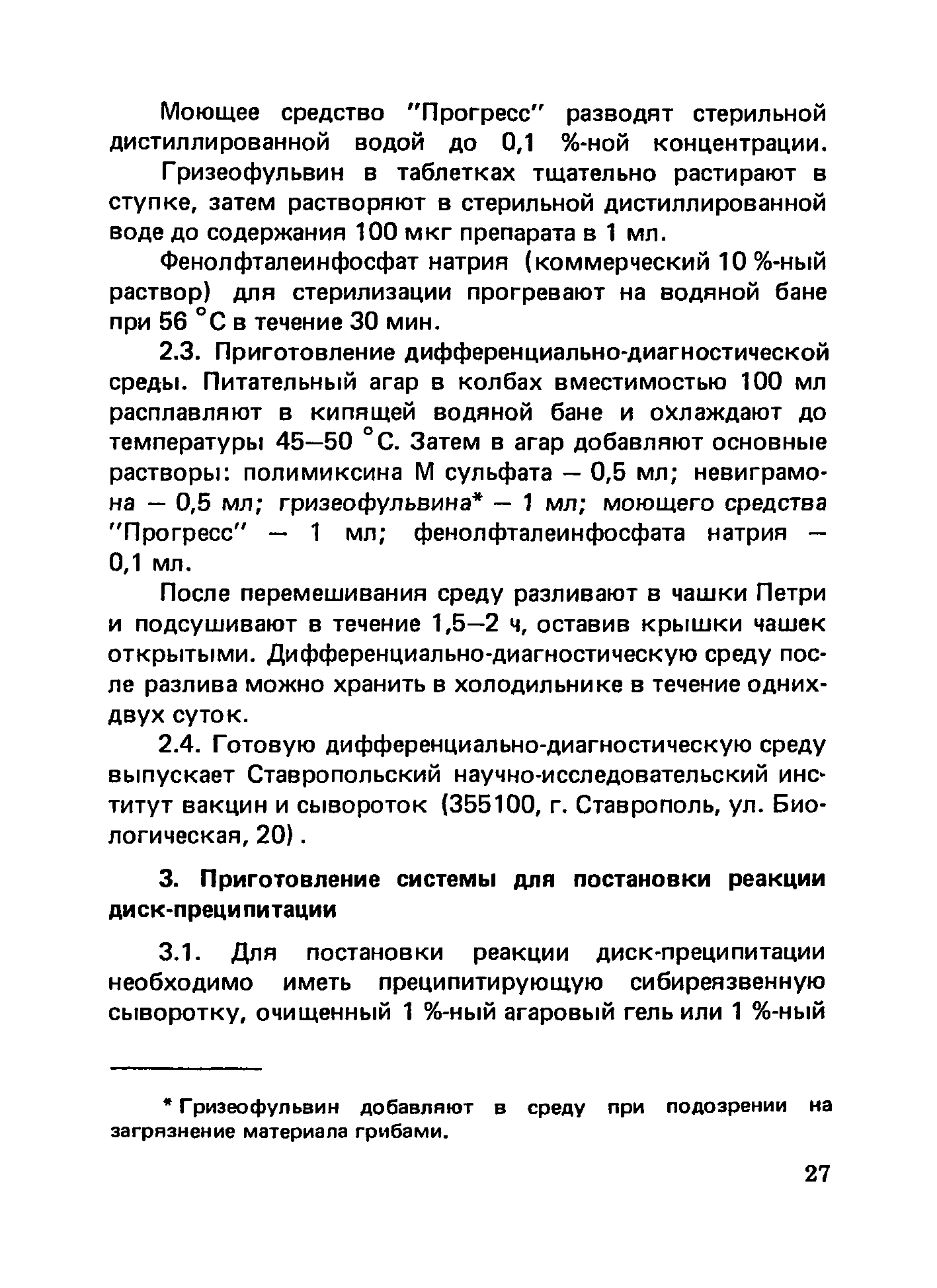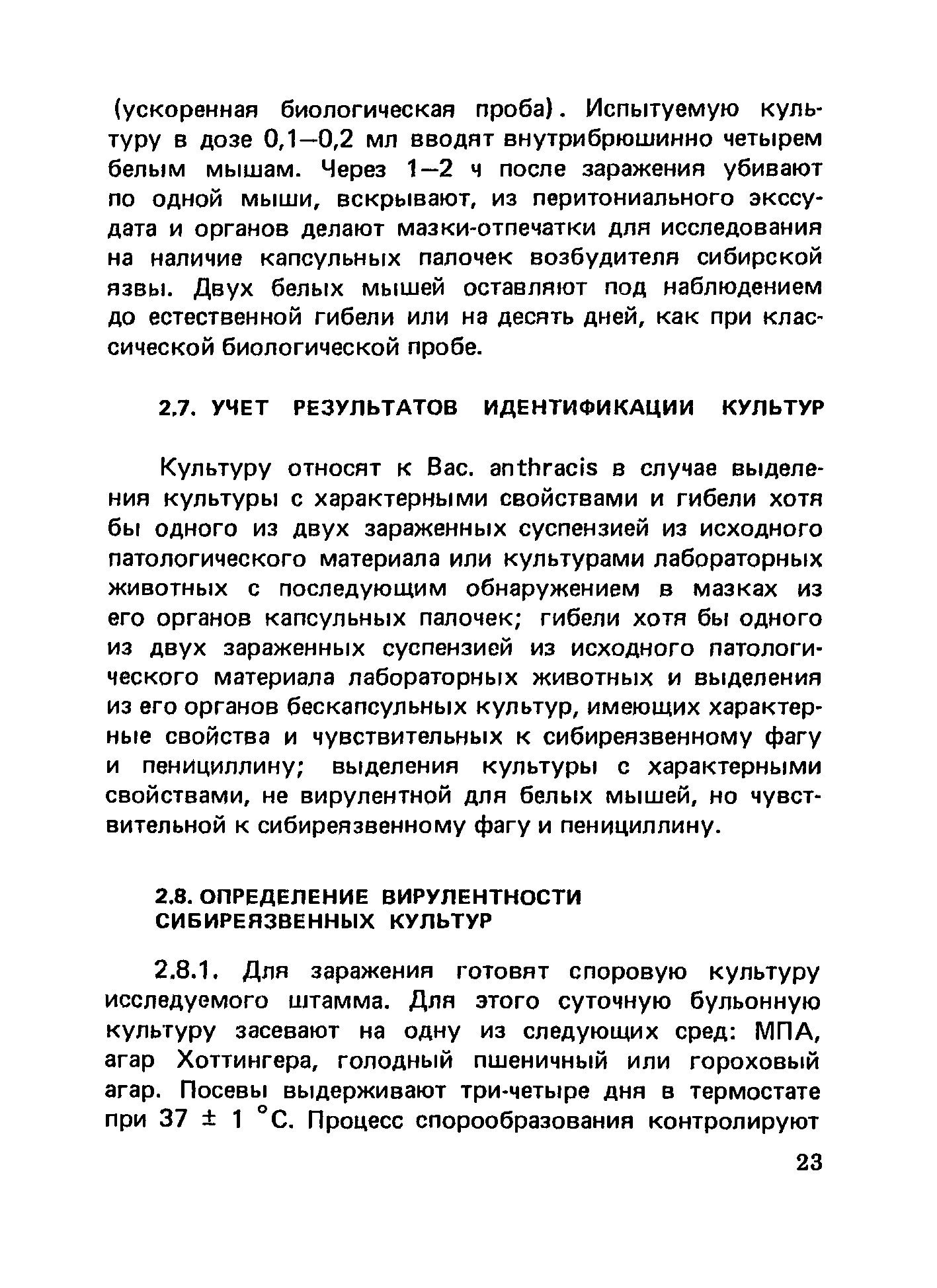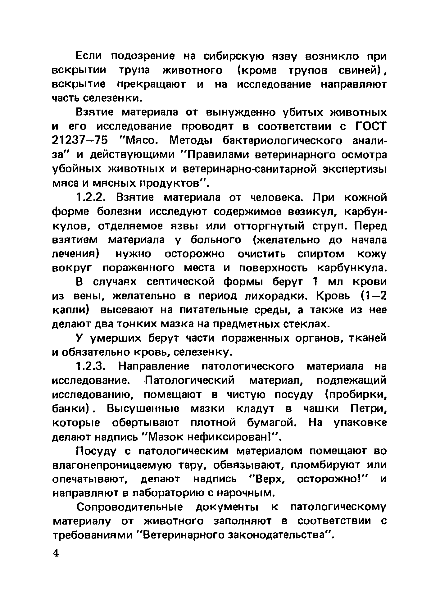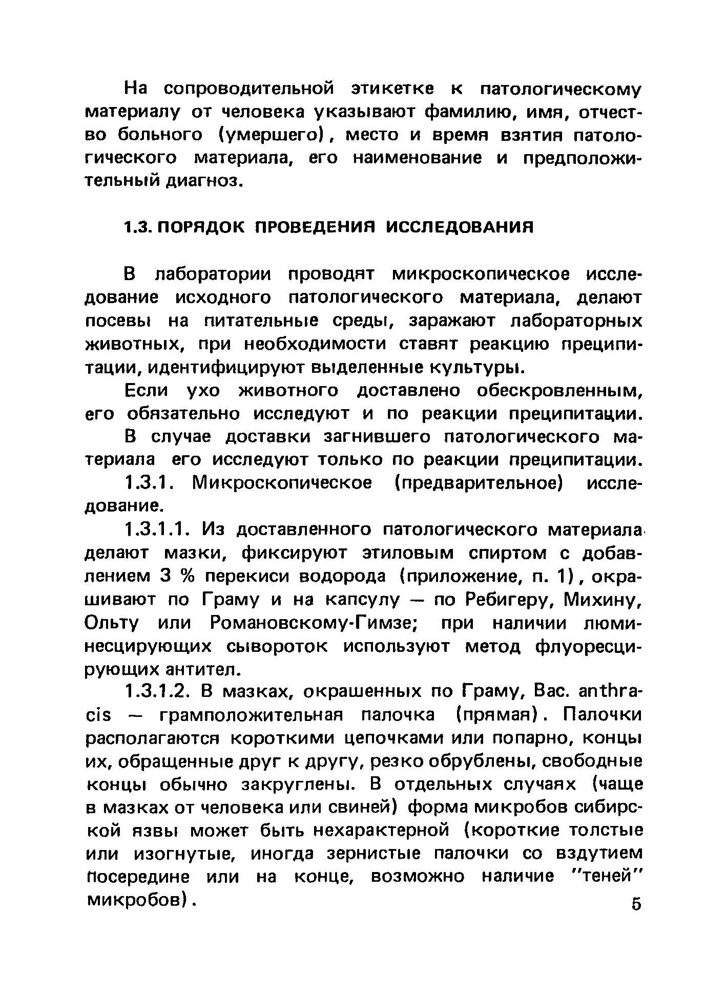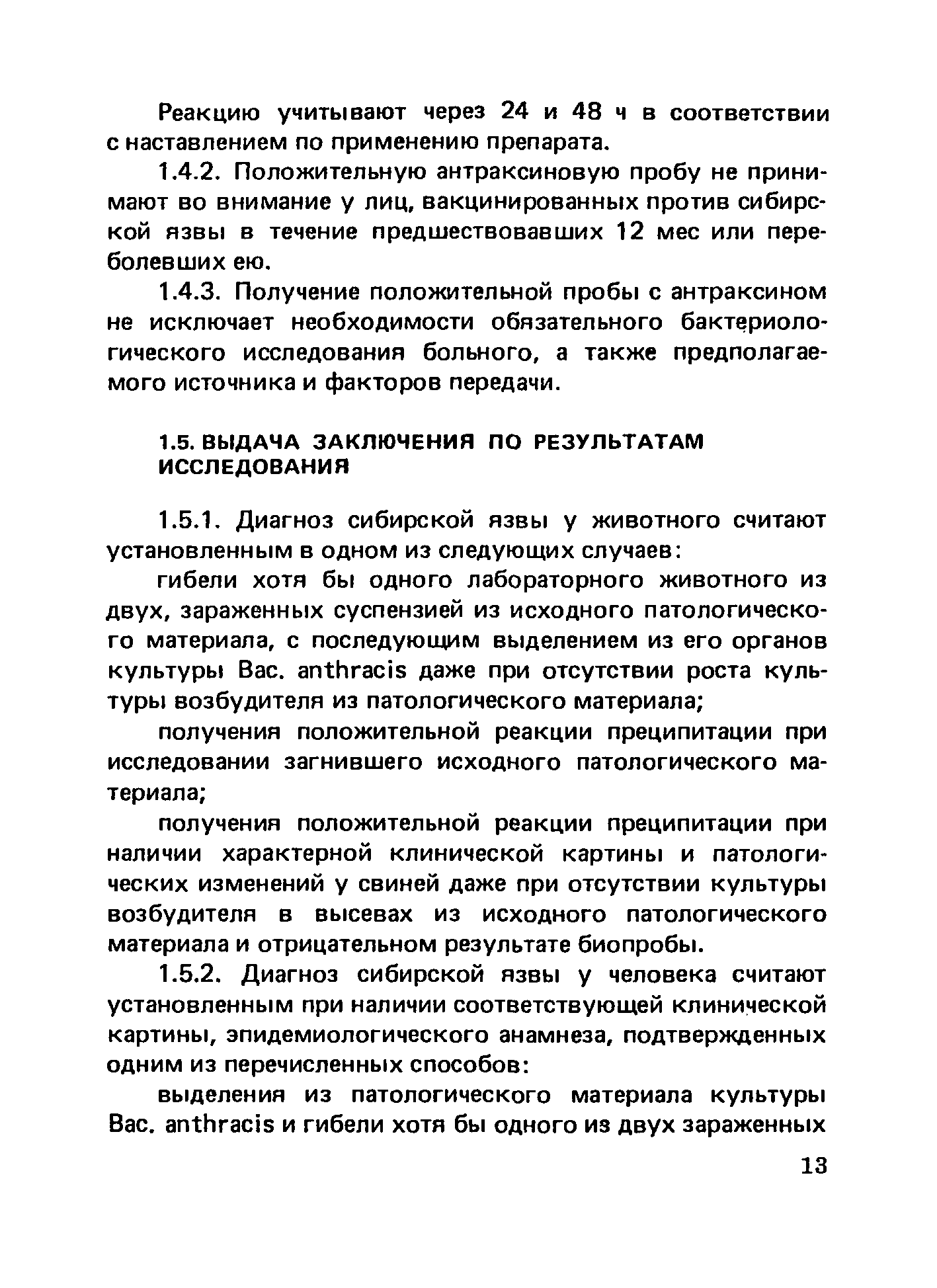 - «Методические указания по лабораторной диагностике сибирской язвы» (утвержден 7 мая 1979 г.)