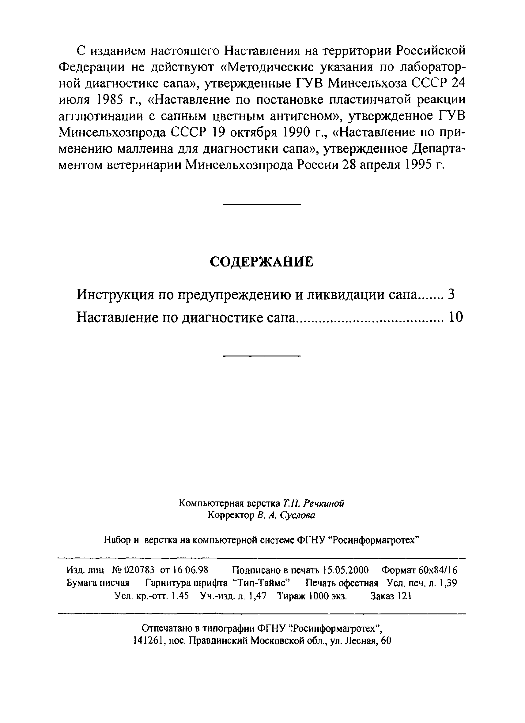 | Утверждён: | 26.02.1996 Департамент ветеринарии Минсельхозпрода России (Department of Veterinary Medicine, Russian Federation Minselkhozprod )