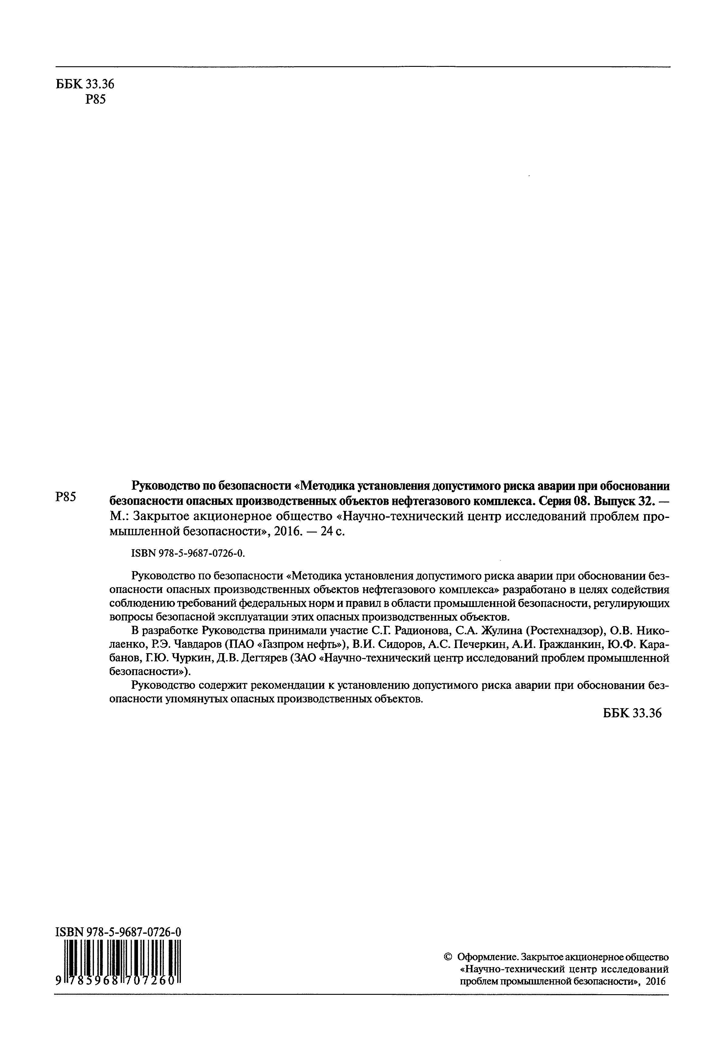 | Разработан: | Ростехнадзор ЗАО Научно-технический центр исследований проблем промышленной безопасности ПАО Газпром нефть