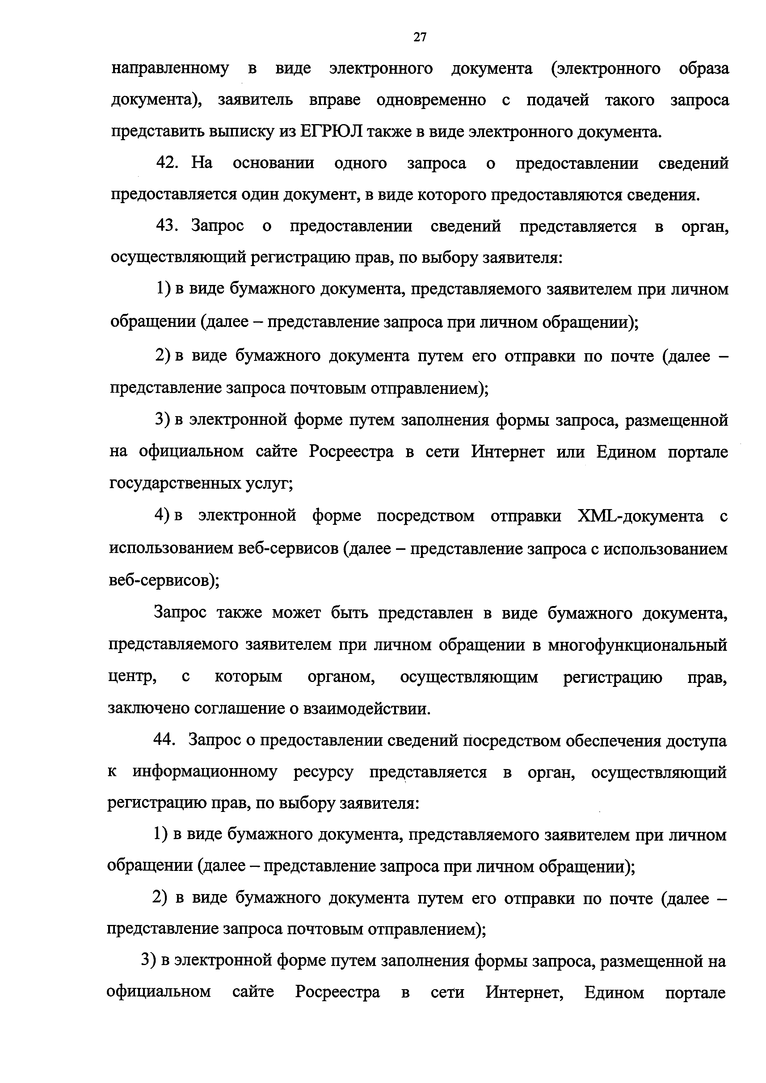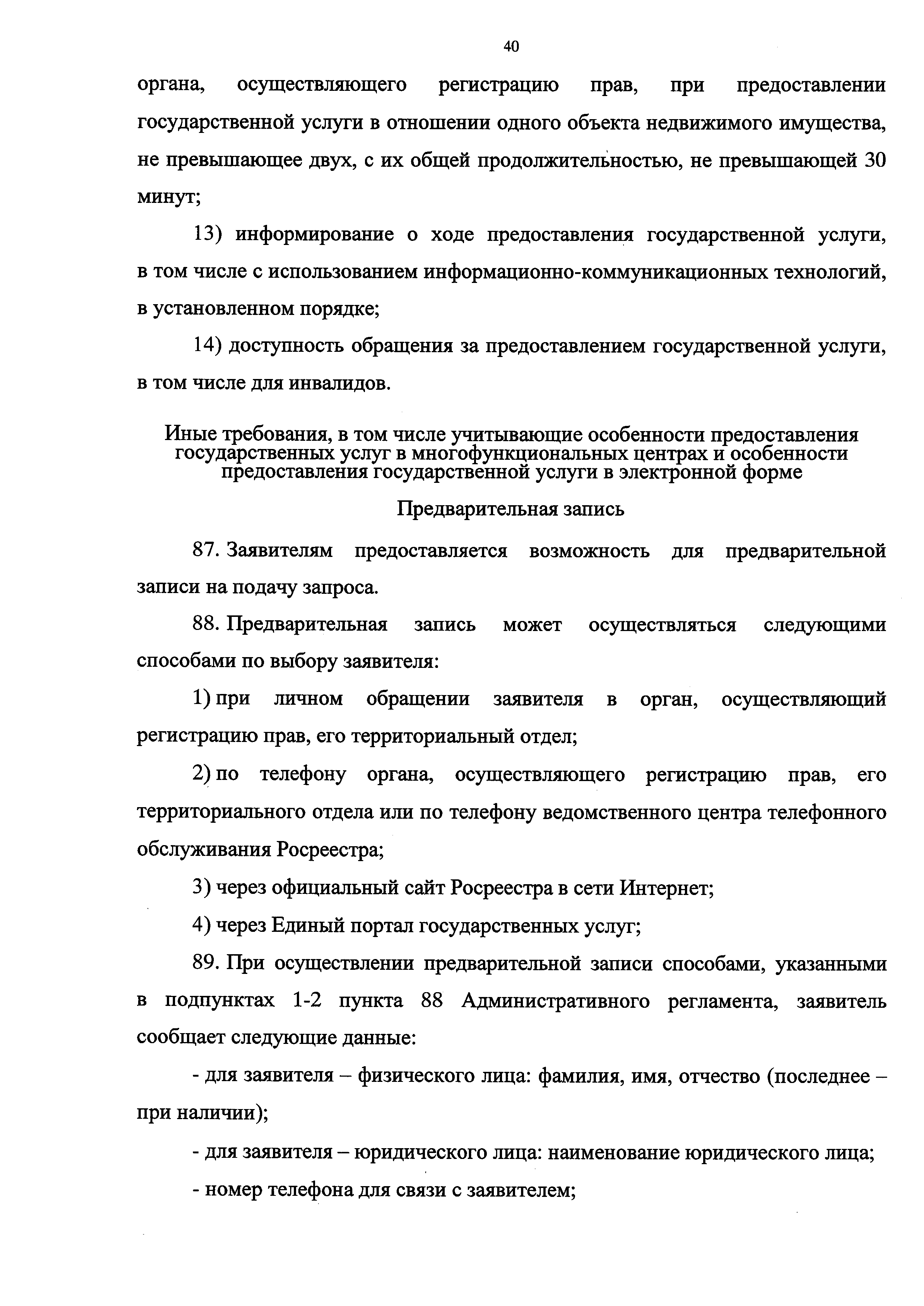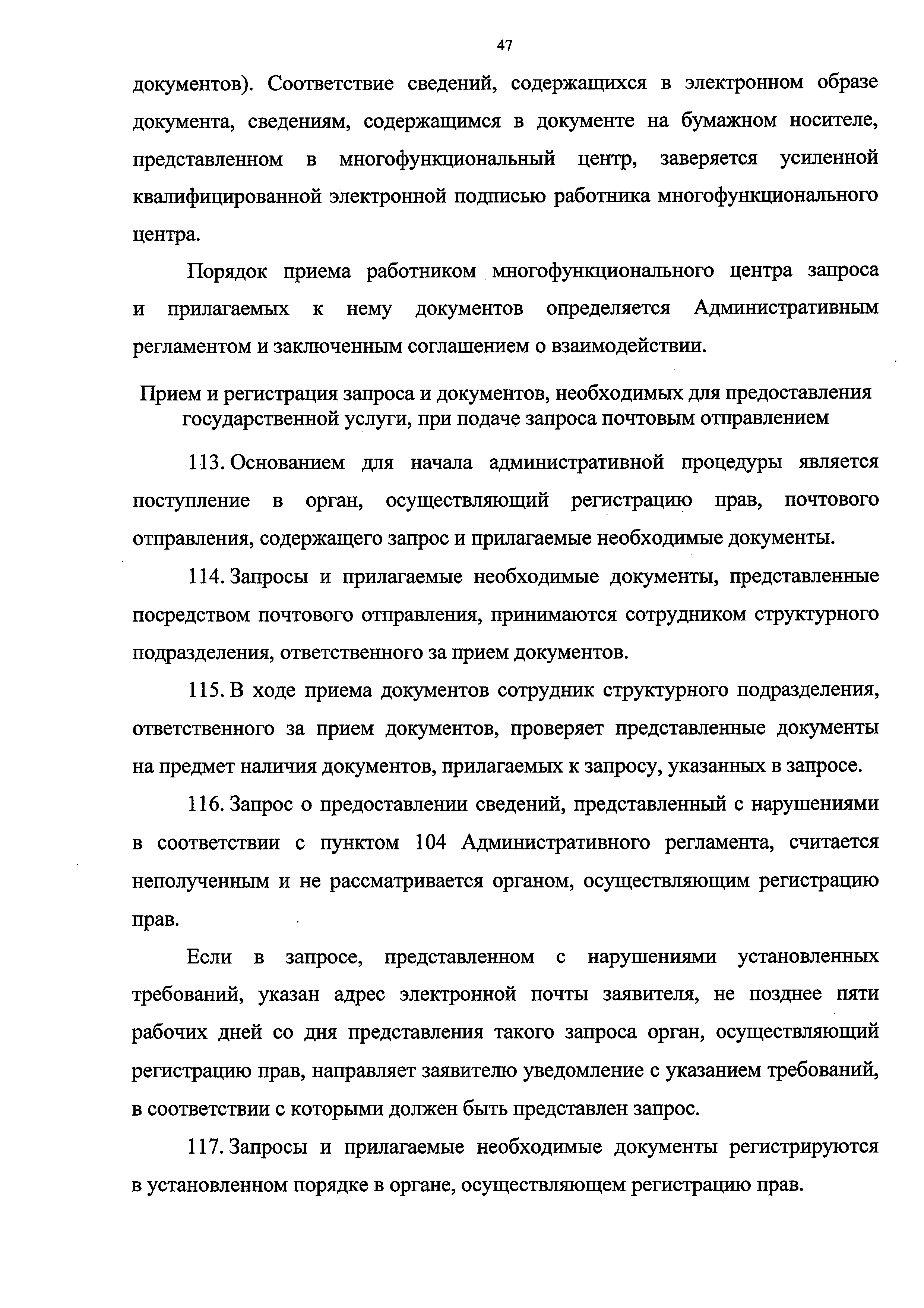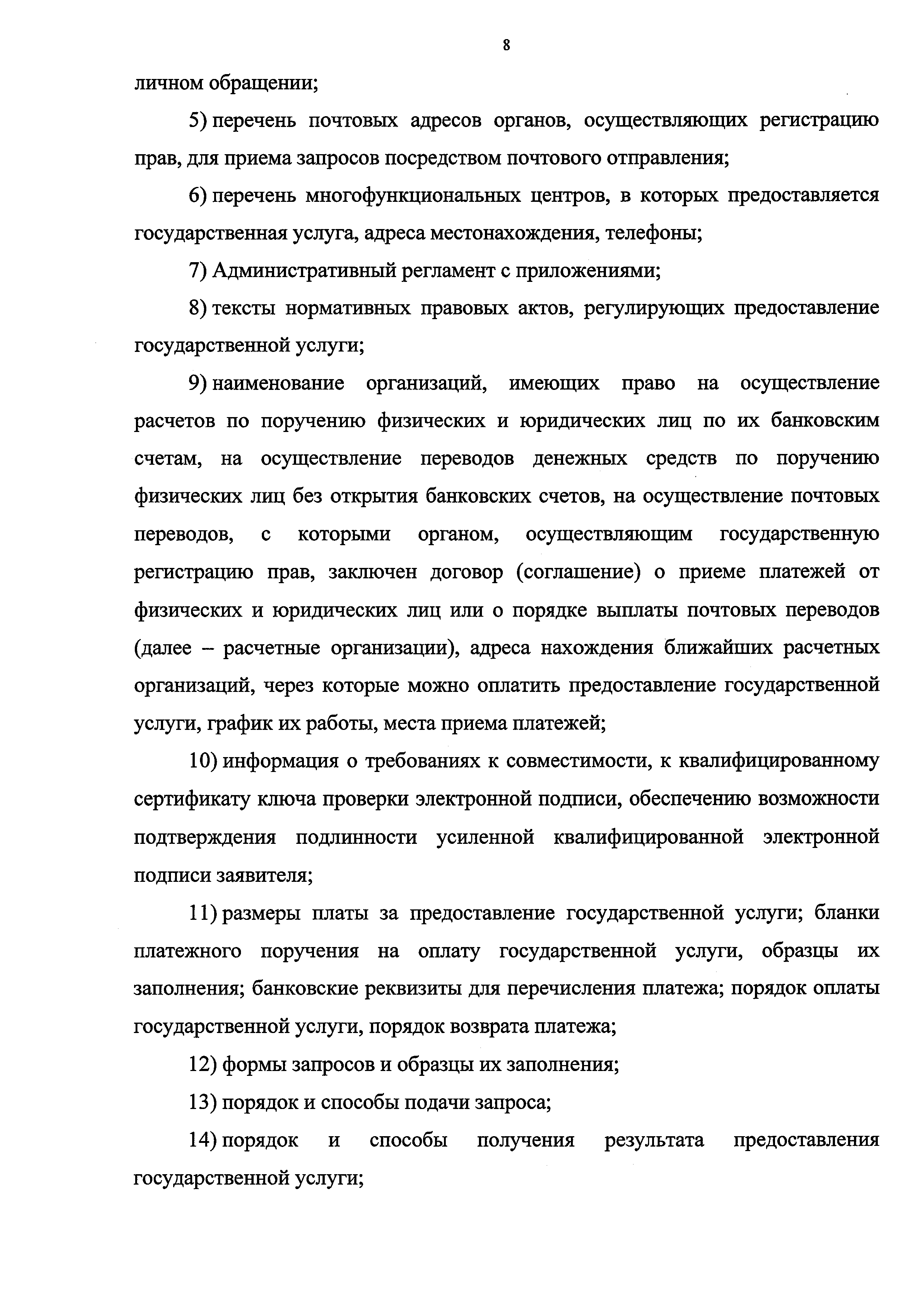 | Оглавление: | I. Общие положения II. Стандарт предоставления государственной услуги III. Состав, последовательность и сроки выполнения административных процедур по предоставлению государственной услуги, требования к порядку их выполнения, в том числе особенности выполнения административных процедур в электронной форме IV. Формы контроля за исполнением Административного регламента V. Досудебный (внесудебный) порядок обжалования действий (бездействия) и решений органа, предоставляющего государственную услугу, а также его должностных лиц Приложение № 1. Блок-схема предоставления сведений, содержащихся в Едином государственном реестре прав на недвижимое имущество и сделок с ним, при получении запроса при личном обращении заявителя Приложение № 2. Блок-схема предоставления сведений, содержащихся в Едином государственном реестре прав на недвижимое имущество и сделок с ним, при получении запроса почтовым отправлением Приложение № 3. Блок-схема предоставления сведений, содержащихся в Едином государственном реестре прав на недвижимое имущество и сделок с ним, при получении запроса в виде электронного документа Приложение № 4. Сведения о территориальных органах Федеральной службы государственной регистрации, кадастра и картографии и подведомственном Росреестру федеральном государственном бюджетном учреждении "Федеральная кадастровая палата Федеральной службы государственной регистрации, кадастра и картографии", его филиалах |