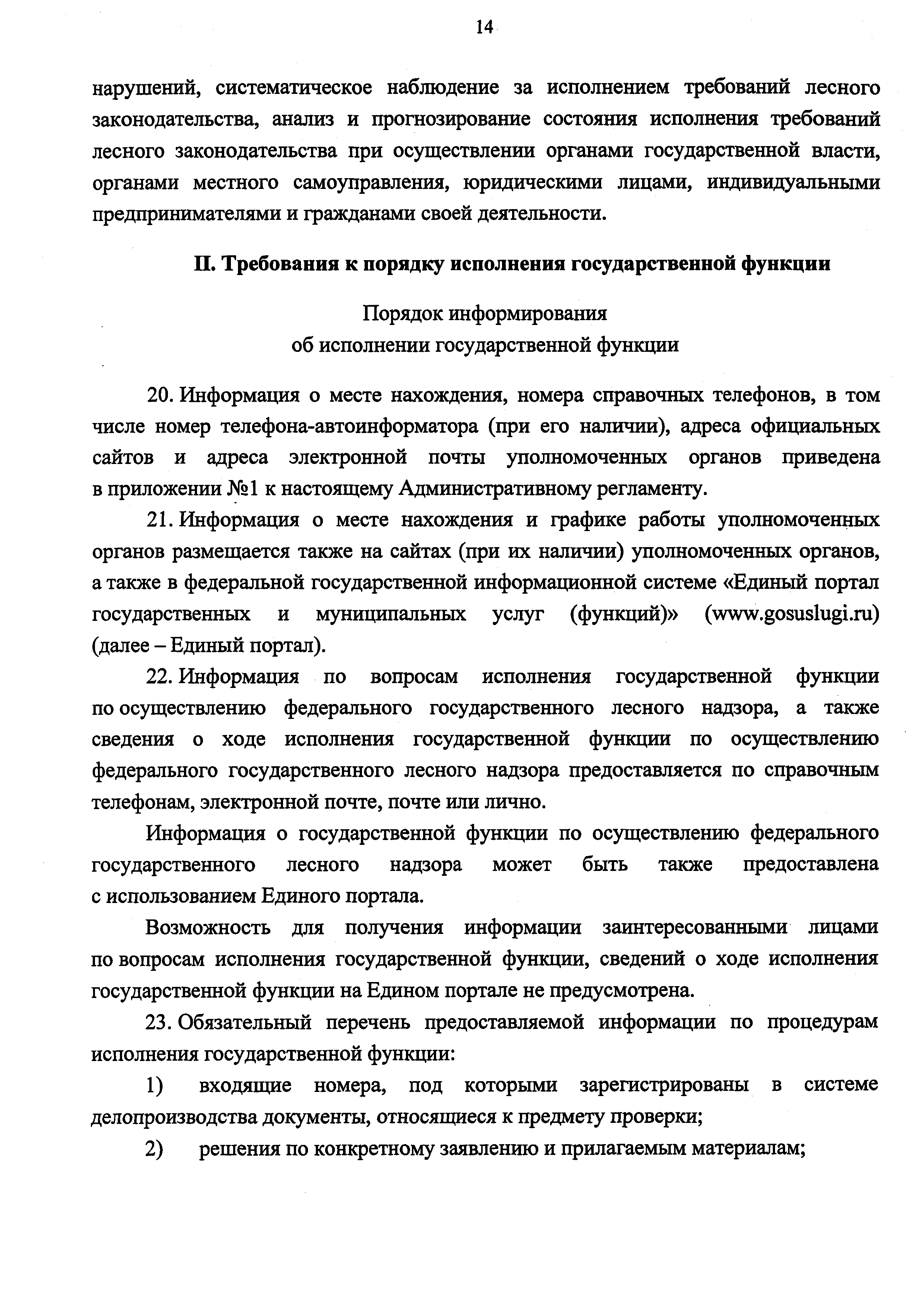 | Оглавление: | I. Общие положения II. Требования к порядку исполнения государственной функции III. Состав, последовательность и сроки выполнения административных процедур (действий), требования к порядку их выполнения IV. Порядок и формы контроля за исполнением государственной функции V. Досудебный (внесудебный) порядок обжалования решений и действий (бездействия) органа, исполняющего государственную функцию, а также его должностных лиц Приложение № 1. Информация об государственных органах исполнительной власти субъектов Российской Федерации, исполняющих государственную функцию в лесах, расположенных на землях лесного фонда Приложение № 2. Блок-схема исполнения государственной функции |