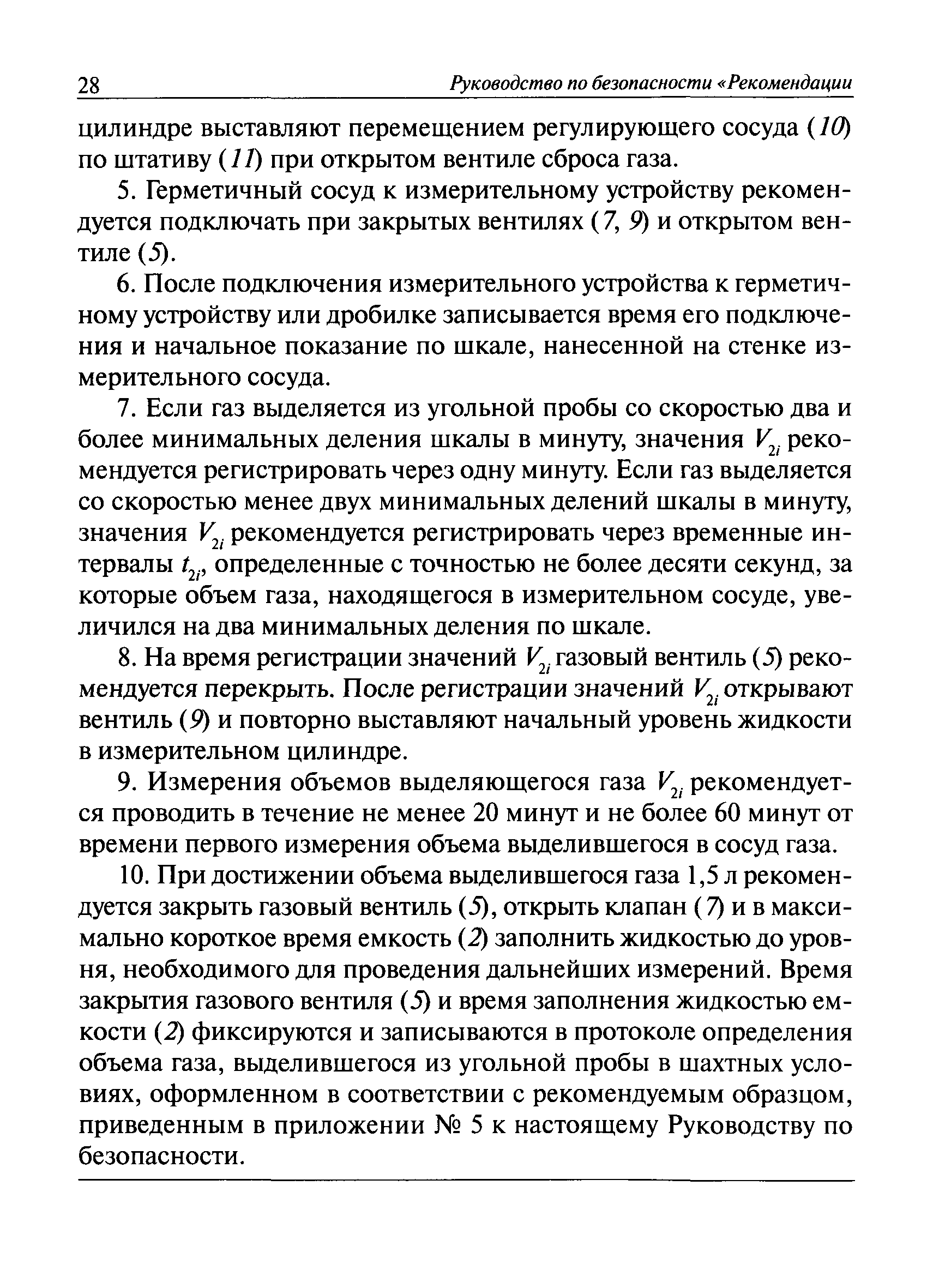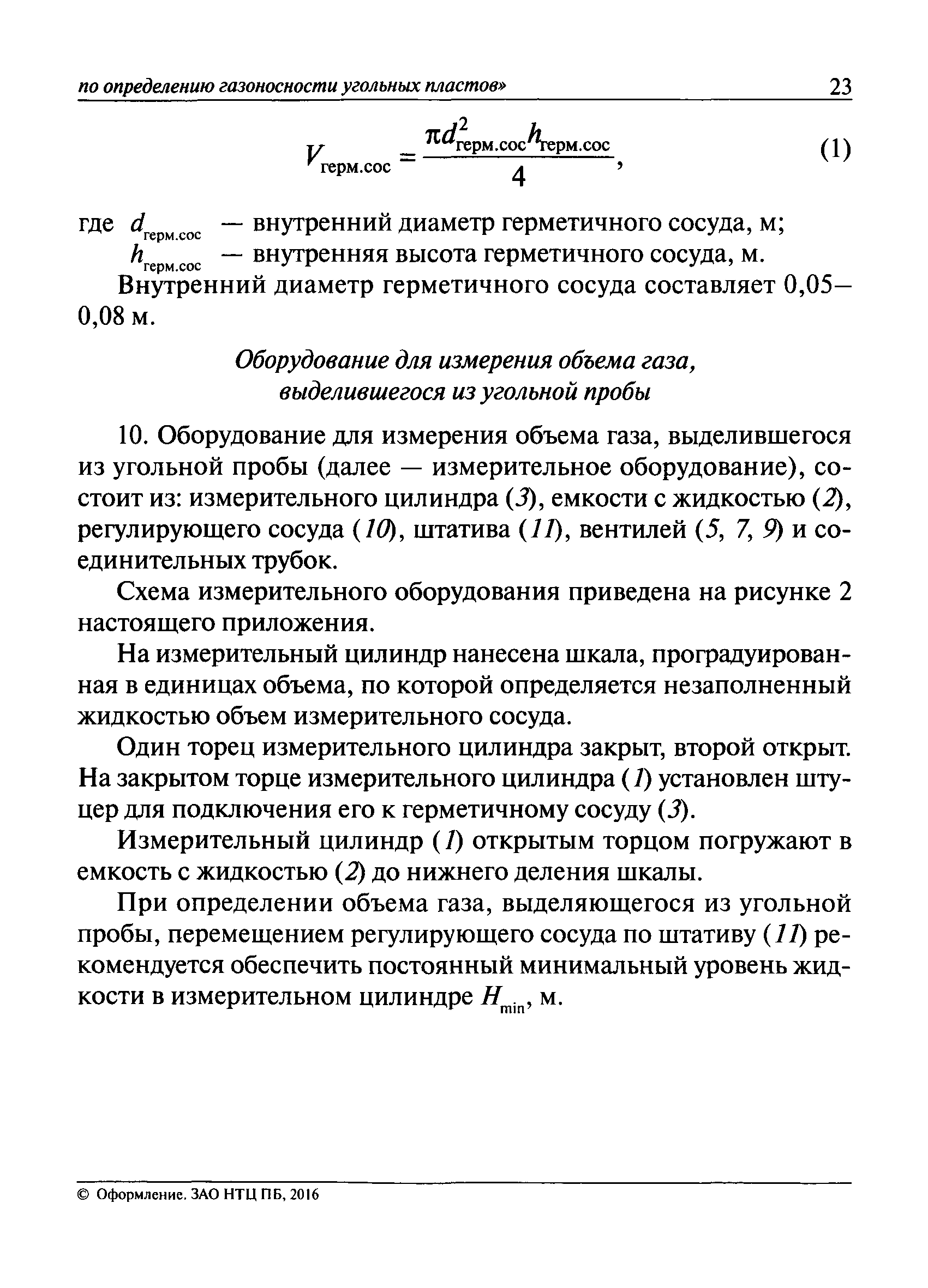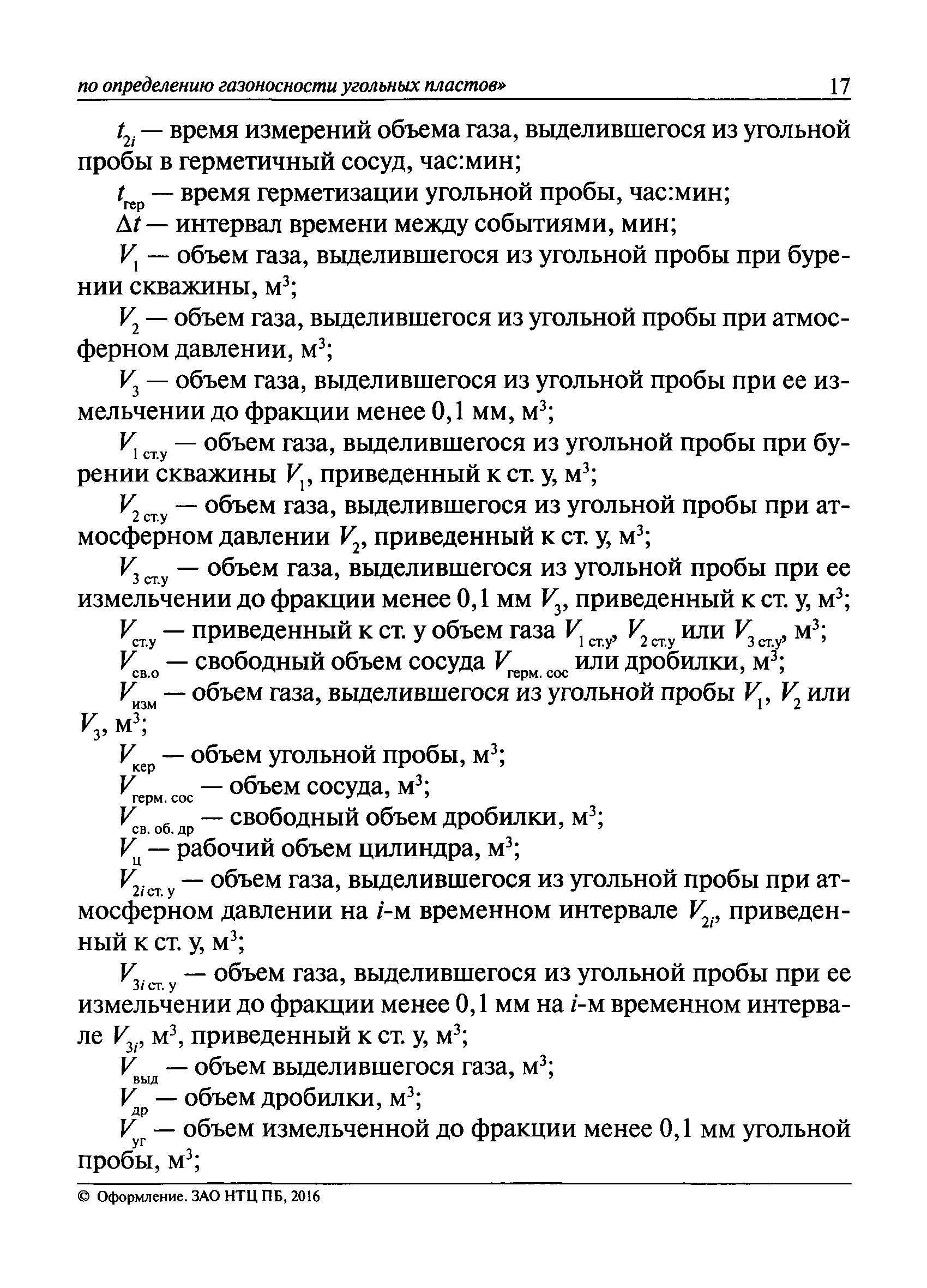 | Оглавление: | I. Общие положения II. Порядок выполнения работ по оценке газоносности угольных пластов Приложение 1. Термины и их определения, условные обозначения Приложение 2. Аппаратура и вспомогательные материалы Приложение 3. Порядок определения с помощью измерительного оборудования объема газа, выделившегося из угольной пробы Приложение 4. Порядок определения свободного объема герметичного сосуда и свободного объема дробилки Приложение 5. Формуляр герметичного сосуда Приложение 6. Ссылочные нормативные документы |