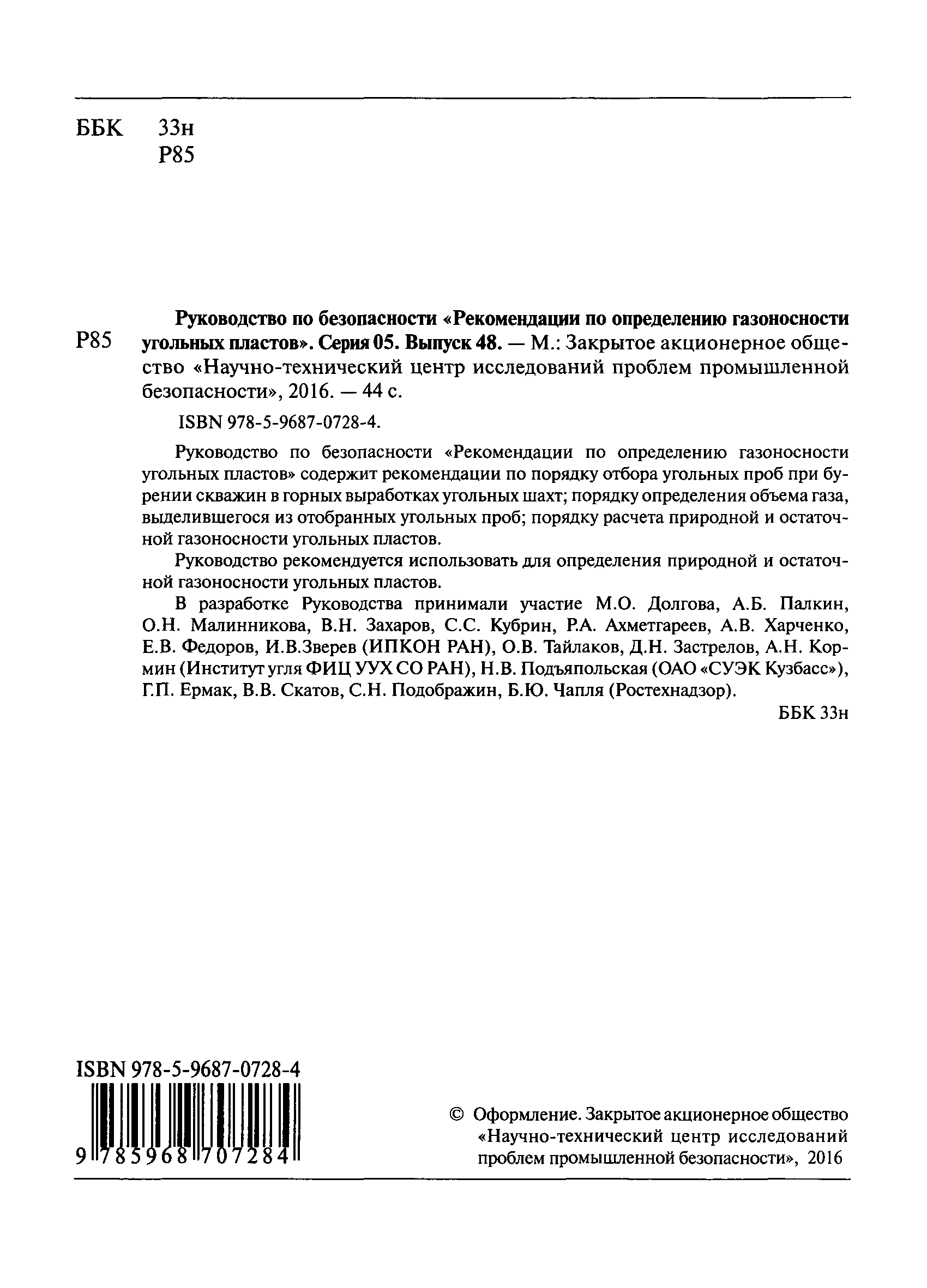 | Название рус.: | Руководство по безопасности "Рекомендации по определению газоносности угольных пластов" |