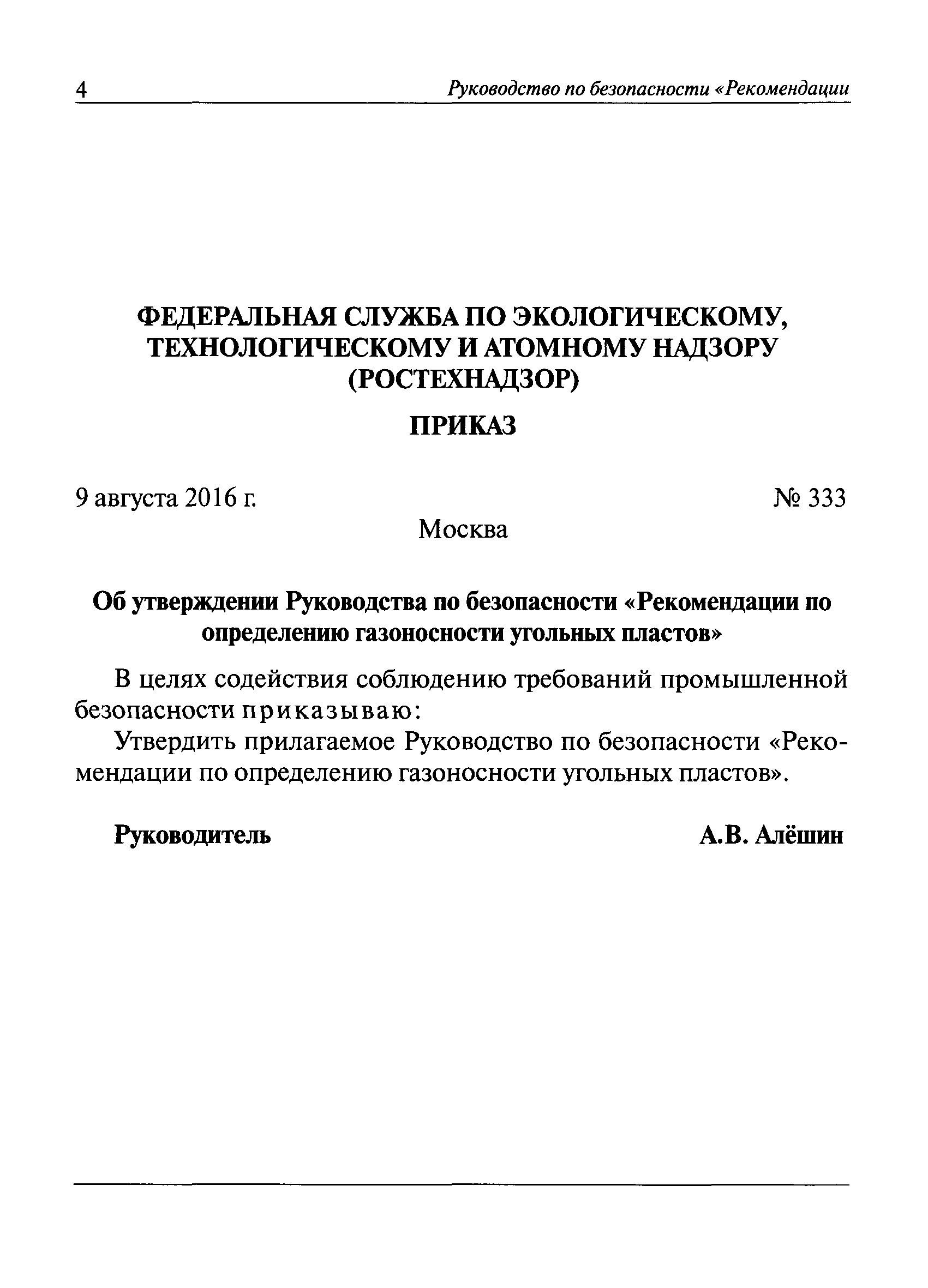 | Утверждён: | 09.08.2016 Федеральная служба по экологическому, технологическому и атомному надзору (333) |