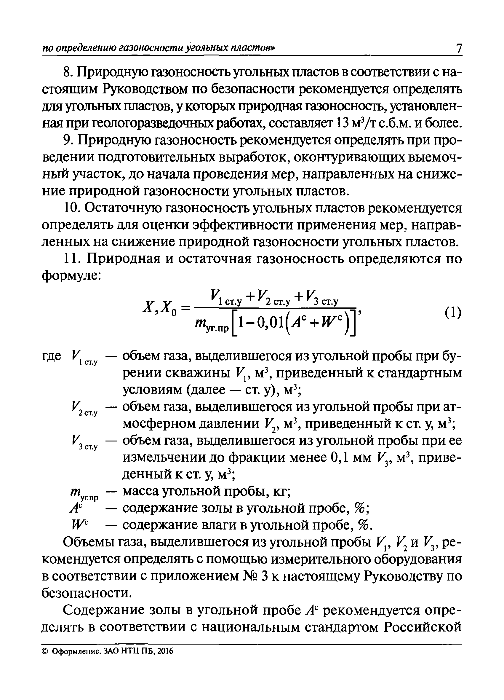 | Область применения: | Руководство по безопасности содержит рекомендации по порядку отбора угольных проб при бурении скважин в горных выработках угольных шахт; порядку определения объема газа, выделившегося из отобранных угольных проб; порядку расчета природной и остаточной газоносности угольных пластов. |