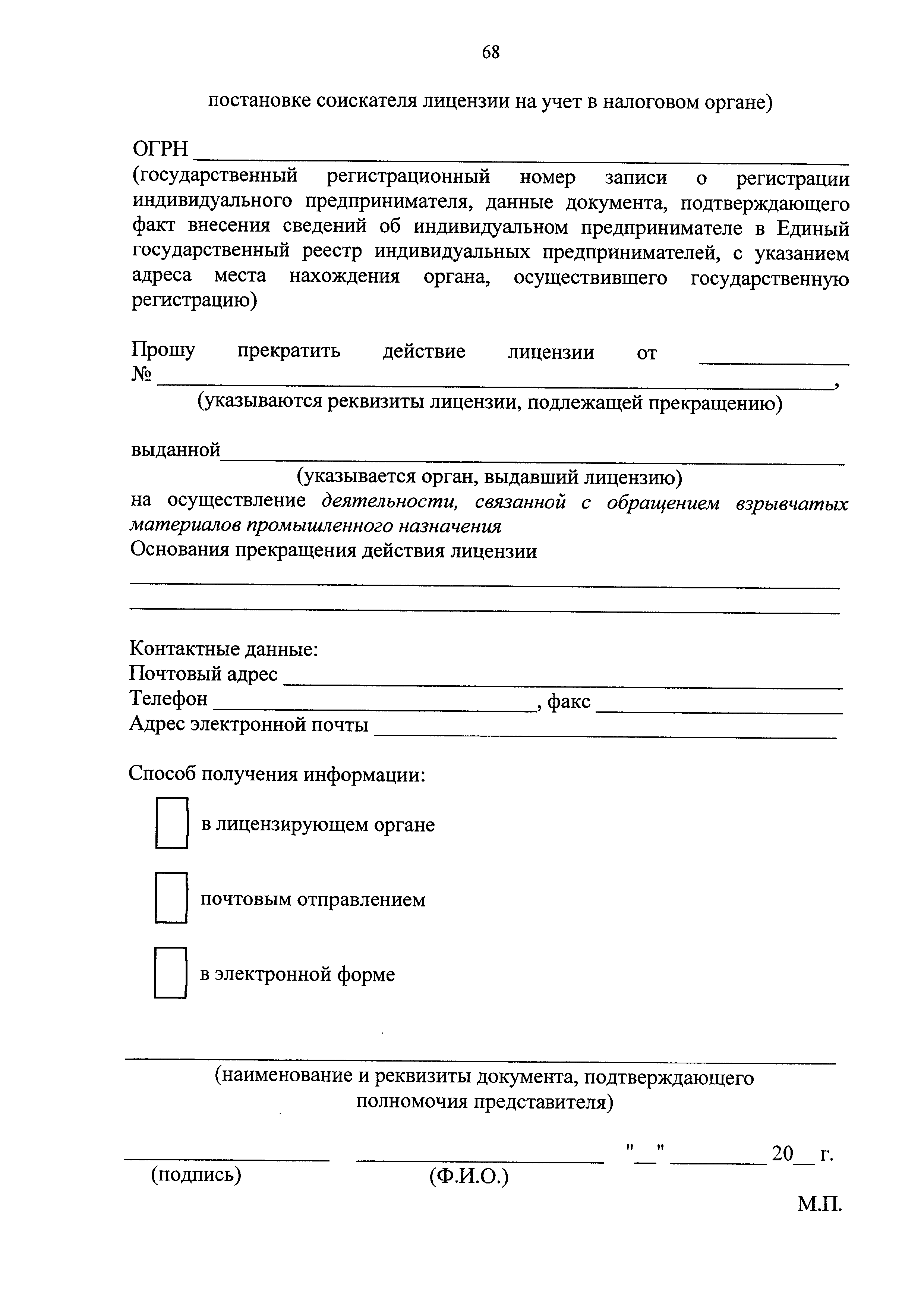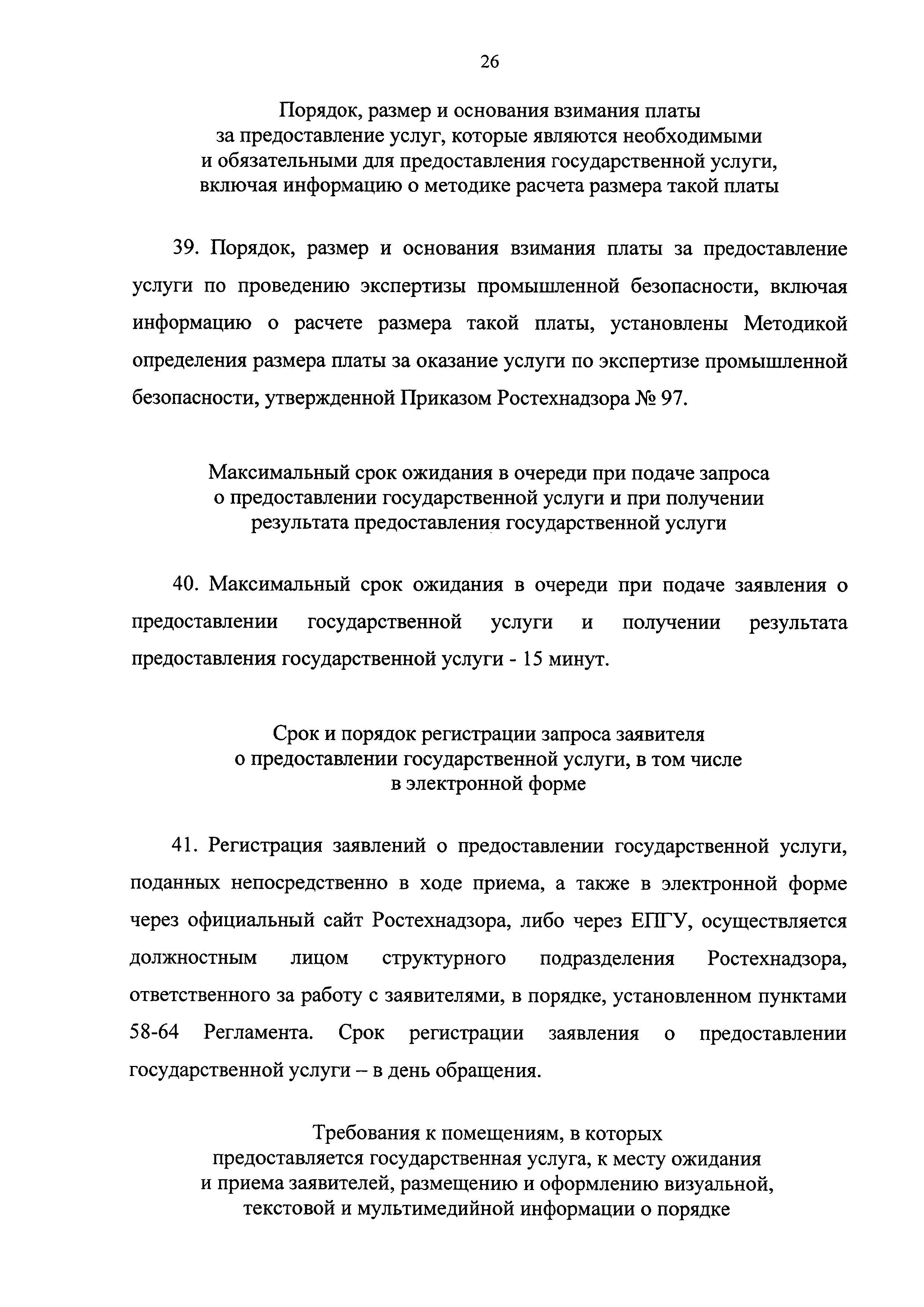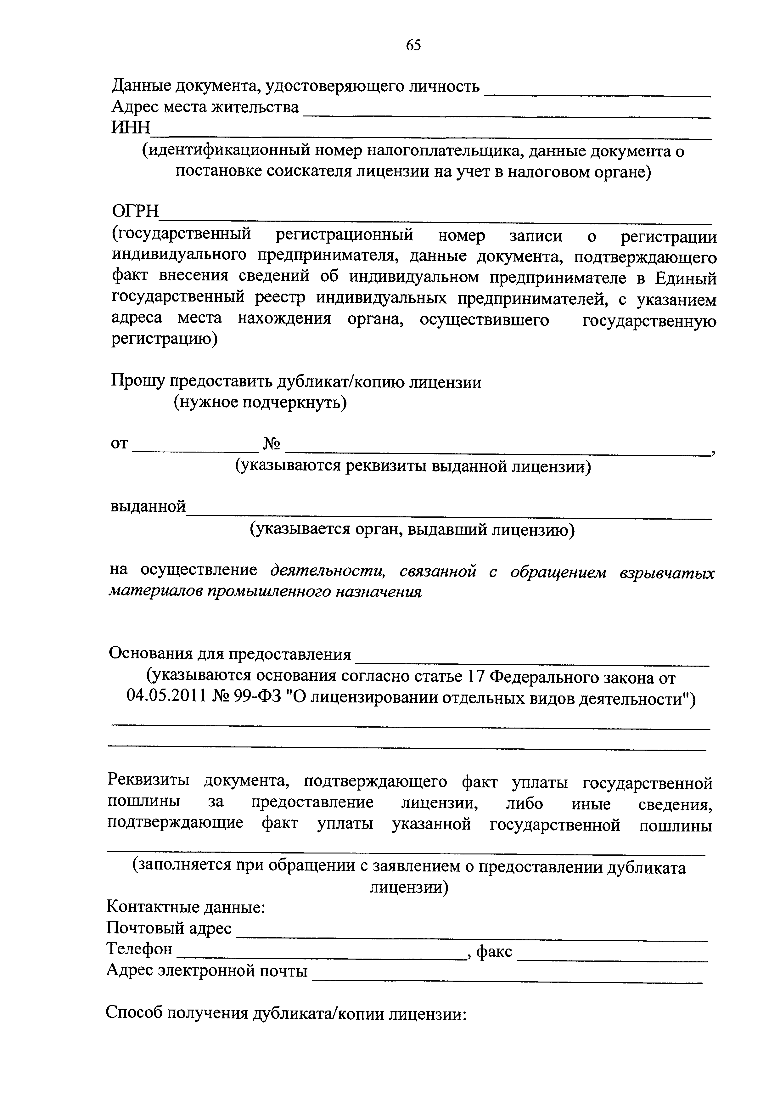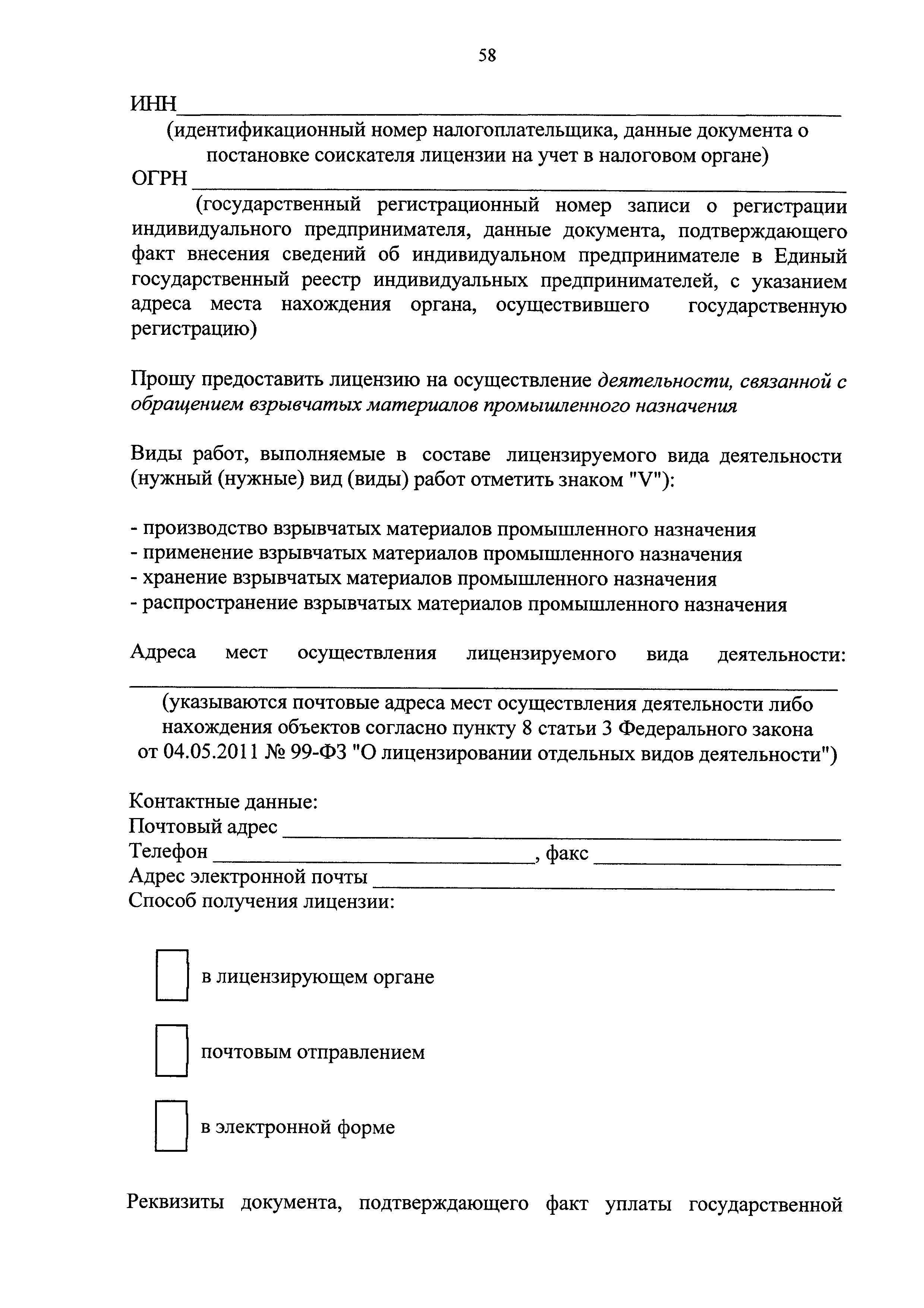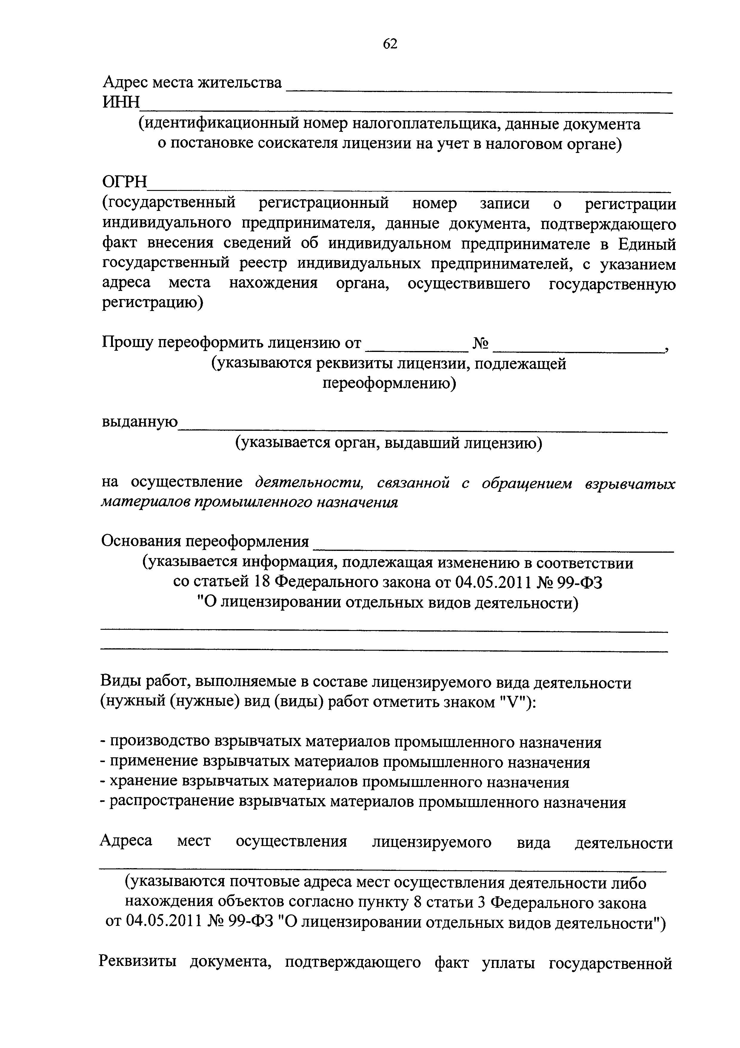 | Оглавление: | I. Общие положения II. Стандарт предоставления государственной услуги III. Состав, последовательность и сроки выполнения административных процедур (действий), требования к порядку их выполнения, в том числе особенности выполнения административных процедур (действий) в электронной форме IV. Формы контроля за исполнением Регламента V. Досудебный (внесудебный) порядок обжалования решений и действий (бездействия) Ростехнадзора, а также его должностных лиц Приложение № 1. Информация о местах нахождения, контактных телефонах, официальных сайтах, адресах электронной почты центрального аппарата и территориальных органов Ростехнадзора Приложение № 2. Заявление о предоставлении лицензии Приложение № 3. Опись документов Приложение № 4. Заявление о переоформлении лицензии Приложение № 5. Заявление о предоставлении дубликата или копии лицензии Приложение № 6. Заявление о прекращении лицензируемого вида деятельности Приложение № 7. Блок-схема предоставления государственной услуги по лицензированию деятельности, связанной с обращением взрывчатых материалов промышленного назначения |