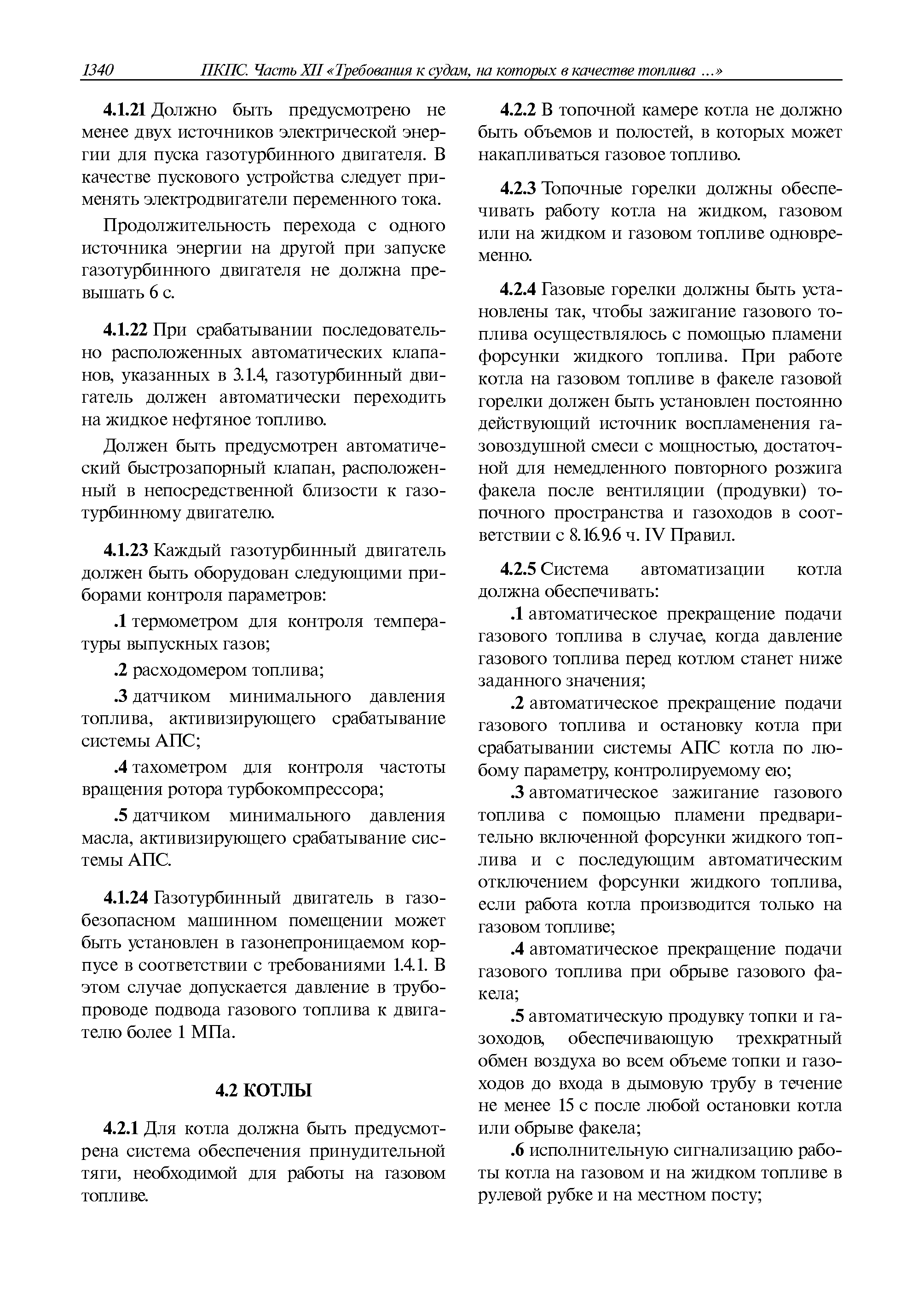 Скачать Часть XII. Требования к судам, на которых в качестве топлива используется природный или нефтяной газДата актуализации: 01.01.2021