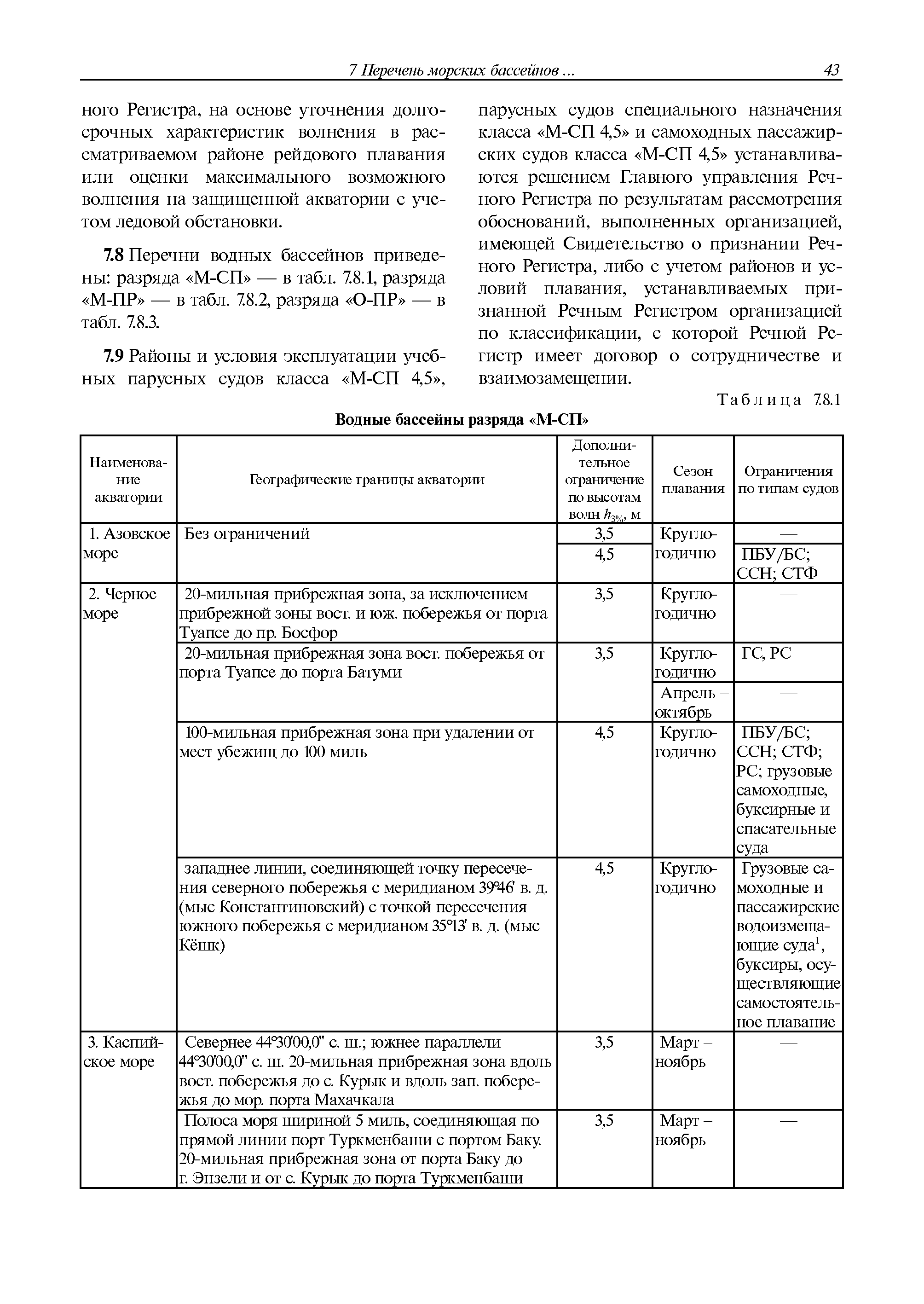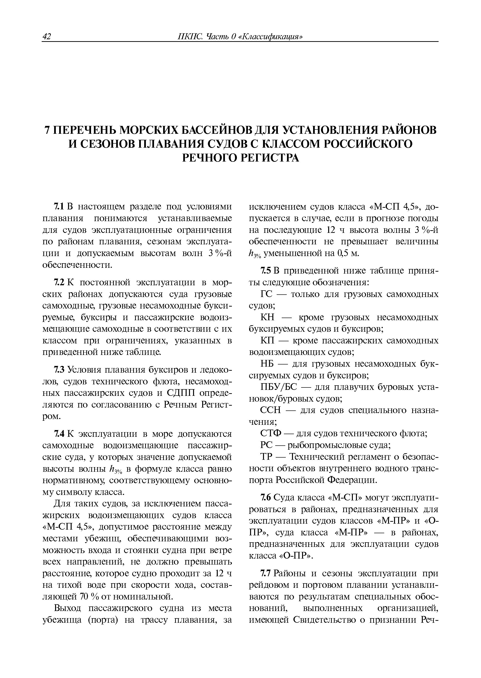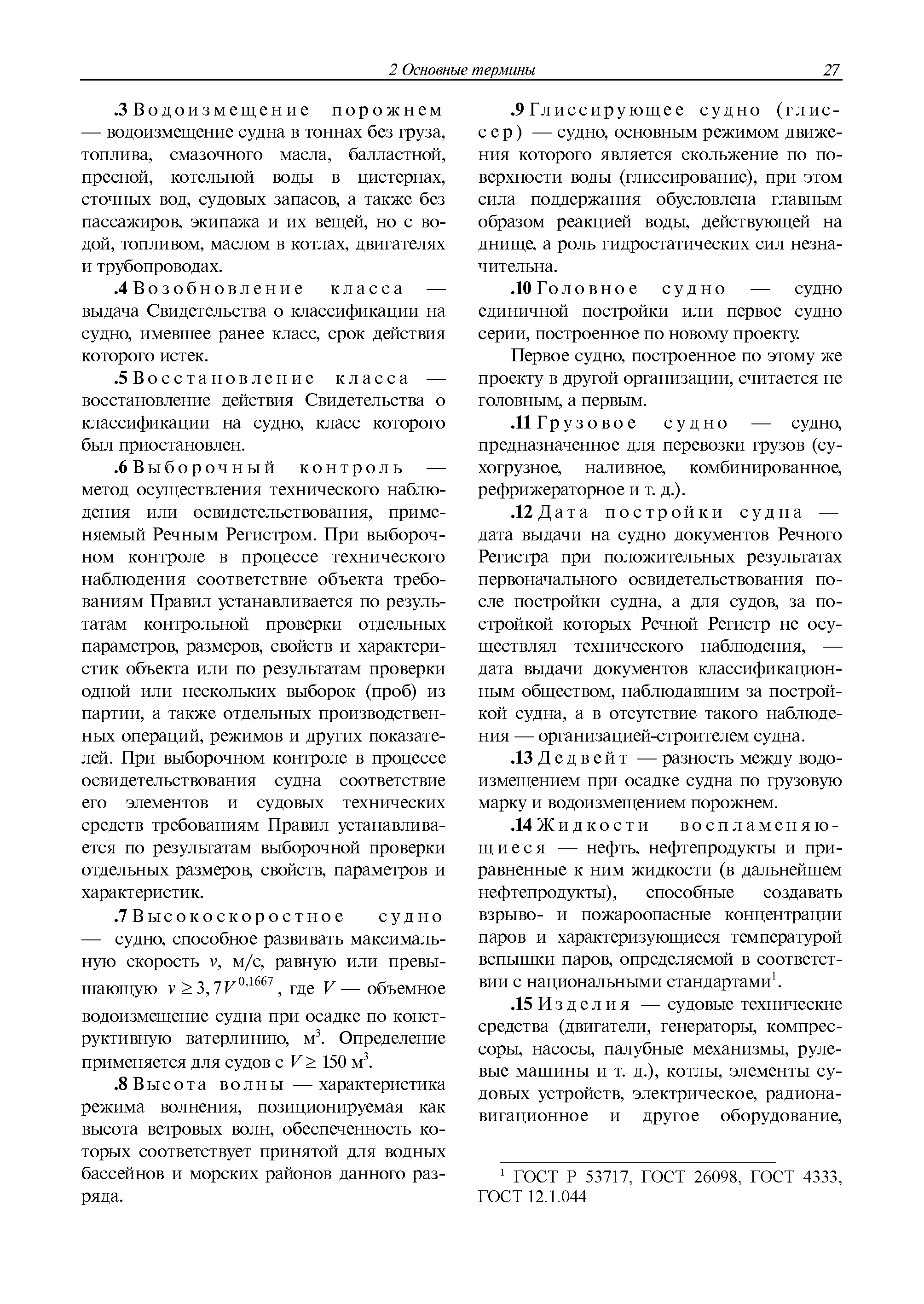 | Оглавление: | 1 Общие положения 2 Основные термины 3 Класс судна и формула класса 4 Документы речного регистра 5 Требования к судам 6 Перечень внутренних водных бассейнов для установления в зависимости от их разряда районов и условий плавания судов с классом Российского Речного Регистра |