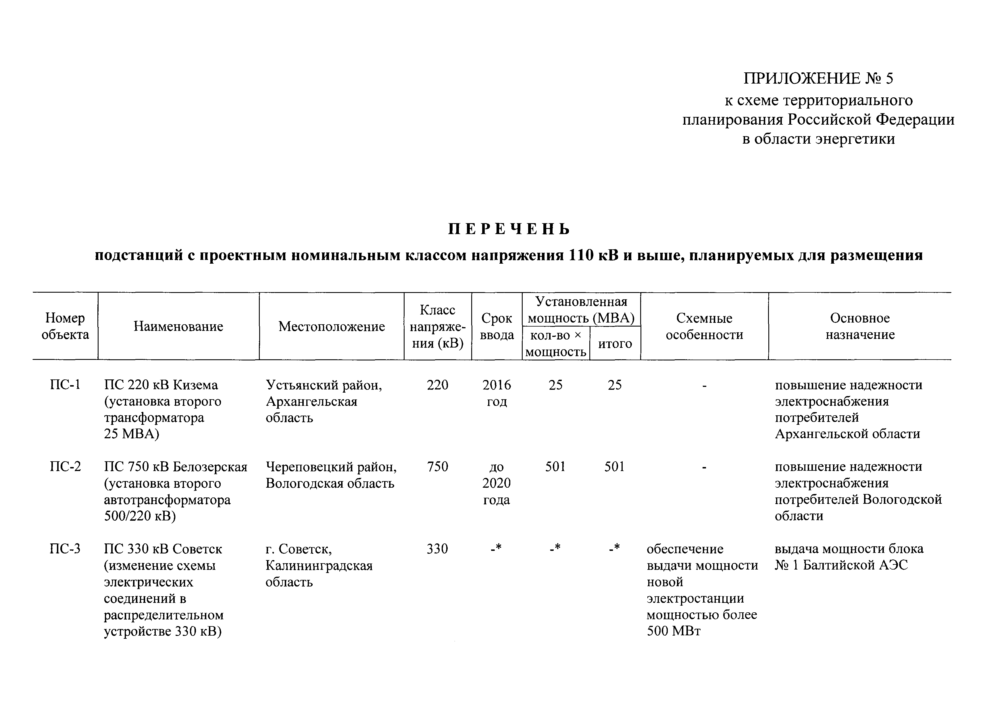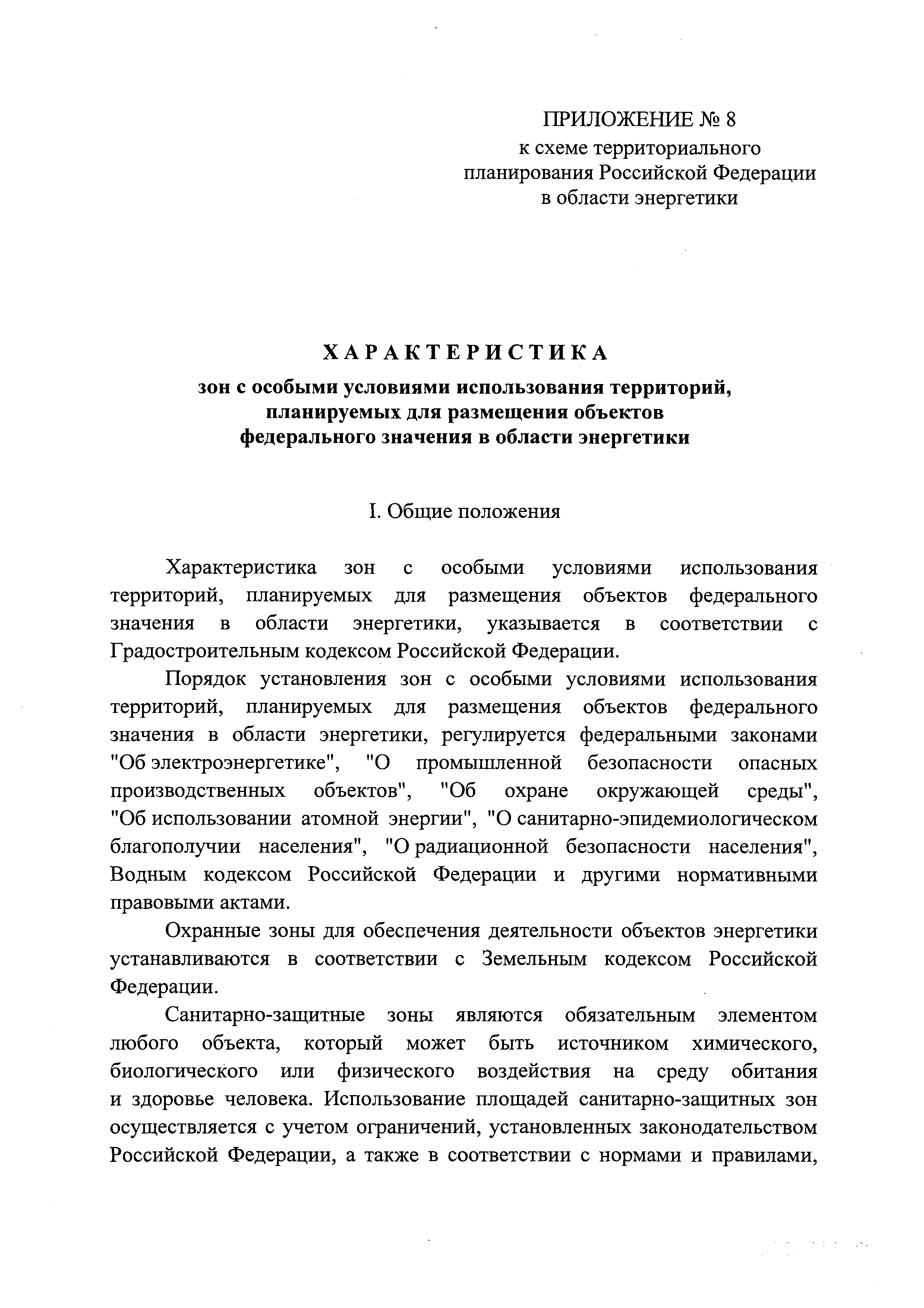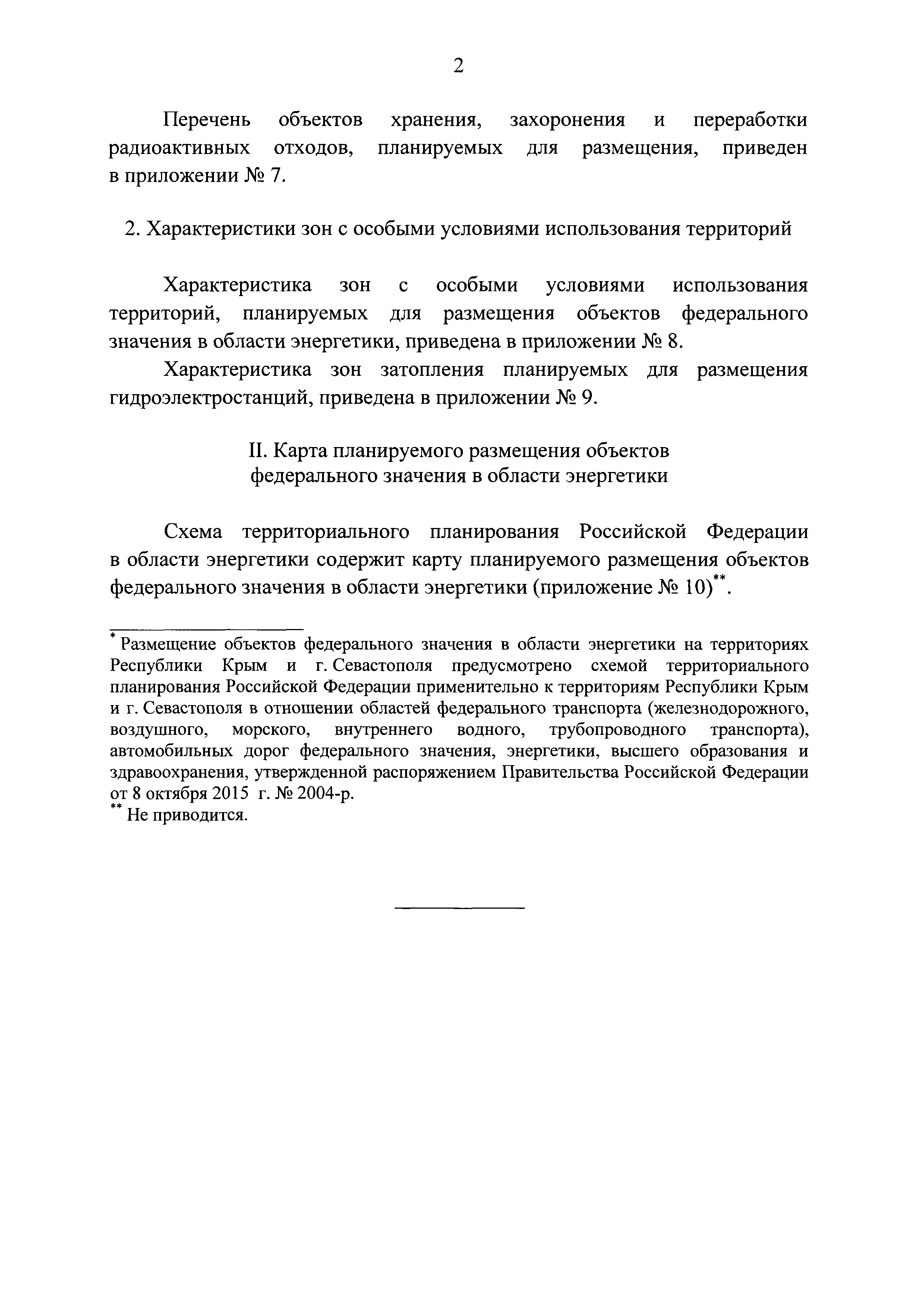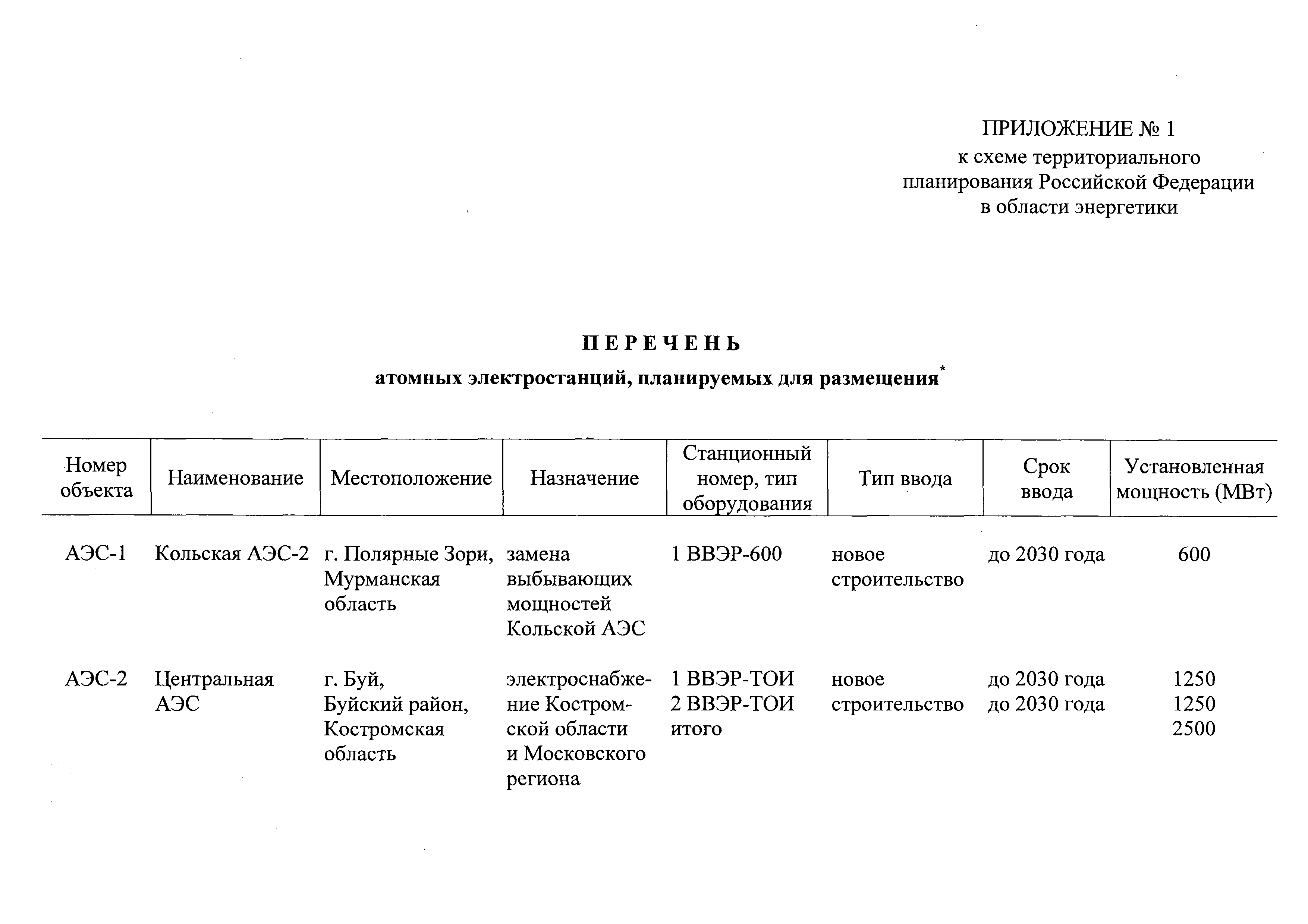 | Оглавление: | I. Положение о территориальном планировании II. Карта планируемого размещения объектов федерального значения в области энергетики Приложение № 1. Перечень атомных электростанций, планируемых для размещения Приложение № 2. Перечень гидроэлектростанций мощностью 100 МВт и выше, планируемых для размещения Приложение № 3. Перечень ветровых электростанций мощностью 100 МВт и выше, планируемых для размещения Приложение № 4. Перечень тепловых электростанций мощностью 100 МВт и выше, планируемых для размещения Приложение № 5. Перечень подстанций с проектным номинальным классом напряжения 110 кВ и выше, планируемых для размещения Приложение № 6. Перечень линий электропередачи с проектным номинальным классом напряжения 110 кВ и выше, планируемых для размещения Приложение № 7. Перечень объектов хранения, захоронения и переработки радиоактивных отходов, планируемых для размещения Приложение № 8. Характеристика зон с особыми условиями использования территорий, планируемых для размещения объектов федерального значения в области энергетики Приложение № 9. Характеристика зон затопления планируемых для размещения гидроэлектростанций |