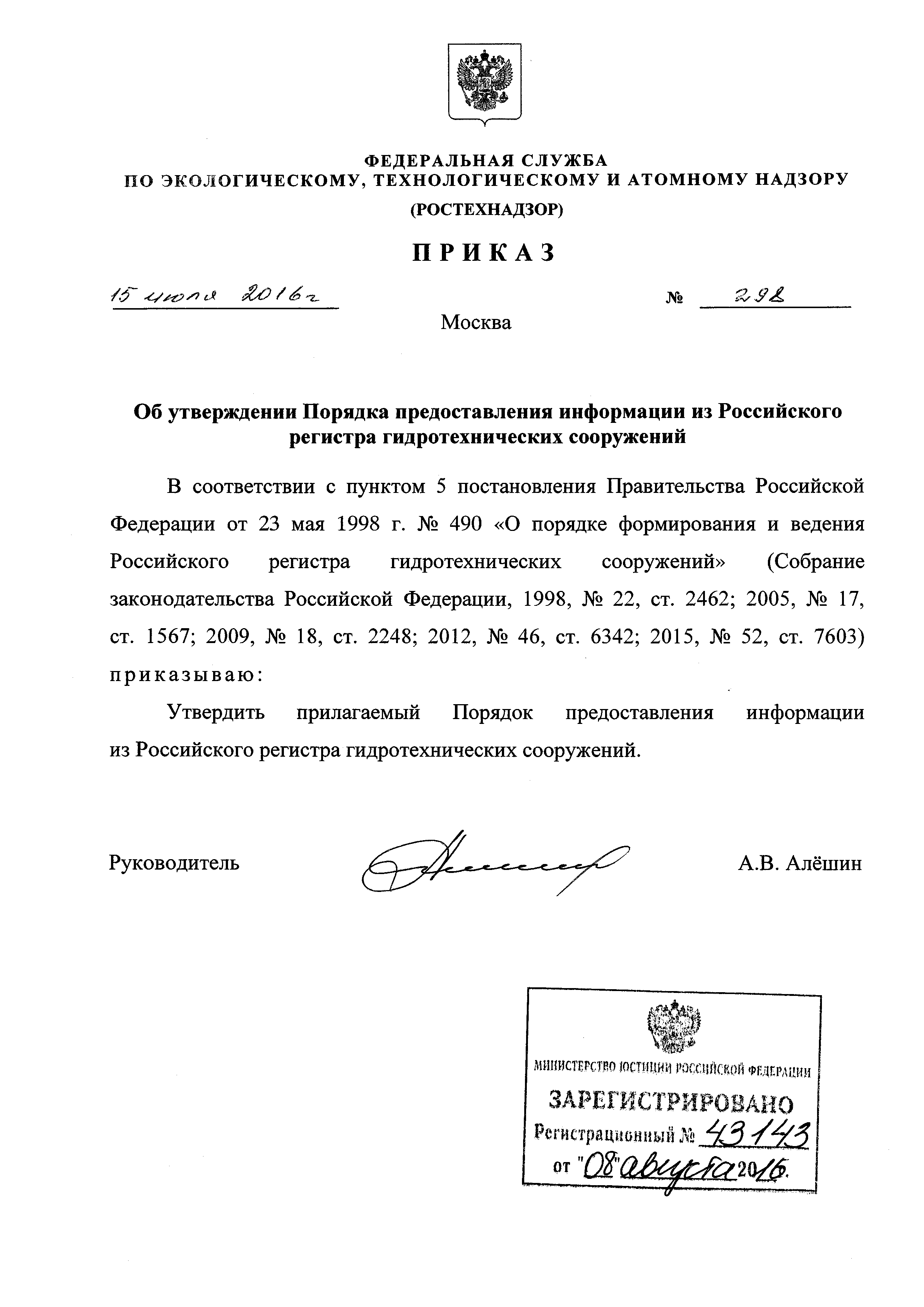 | Название рус.: | Порядок предоставления информации из Российского регистра гидротехнических сооружений |