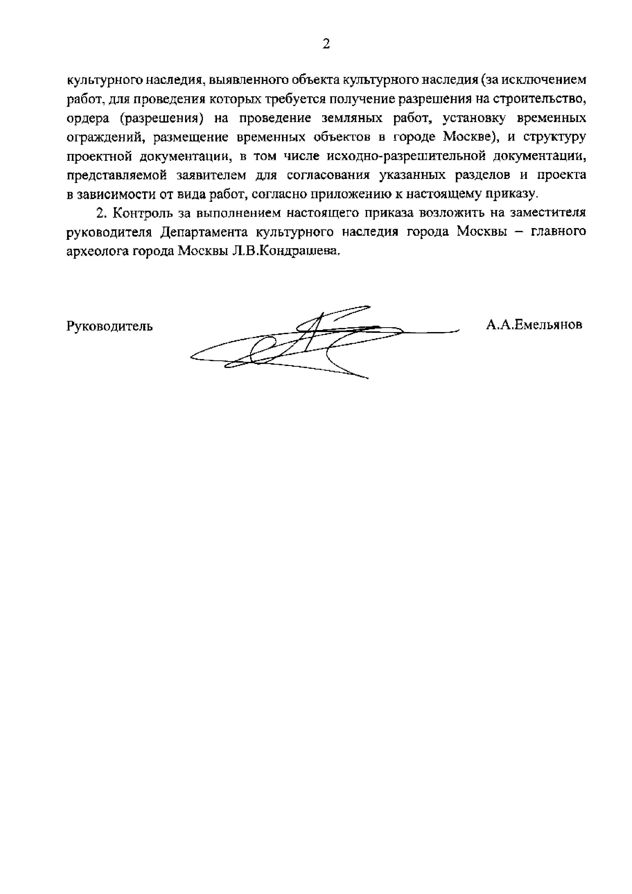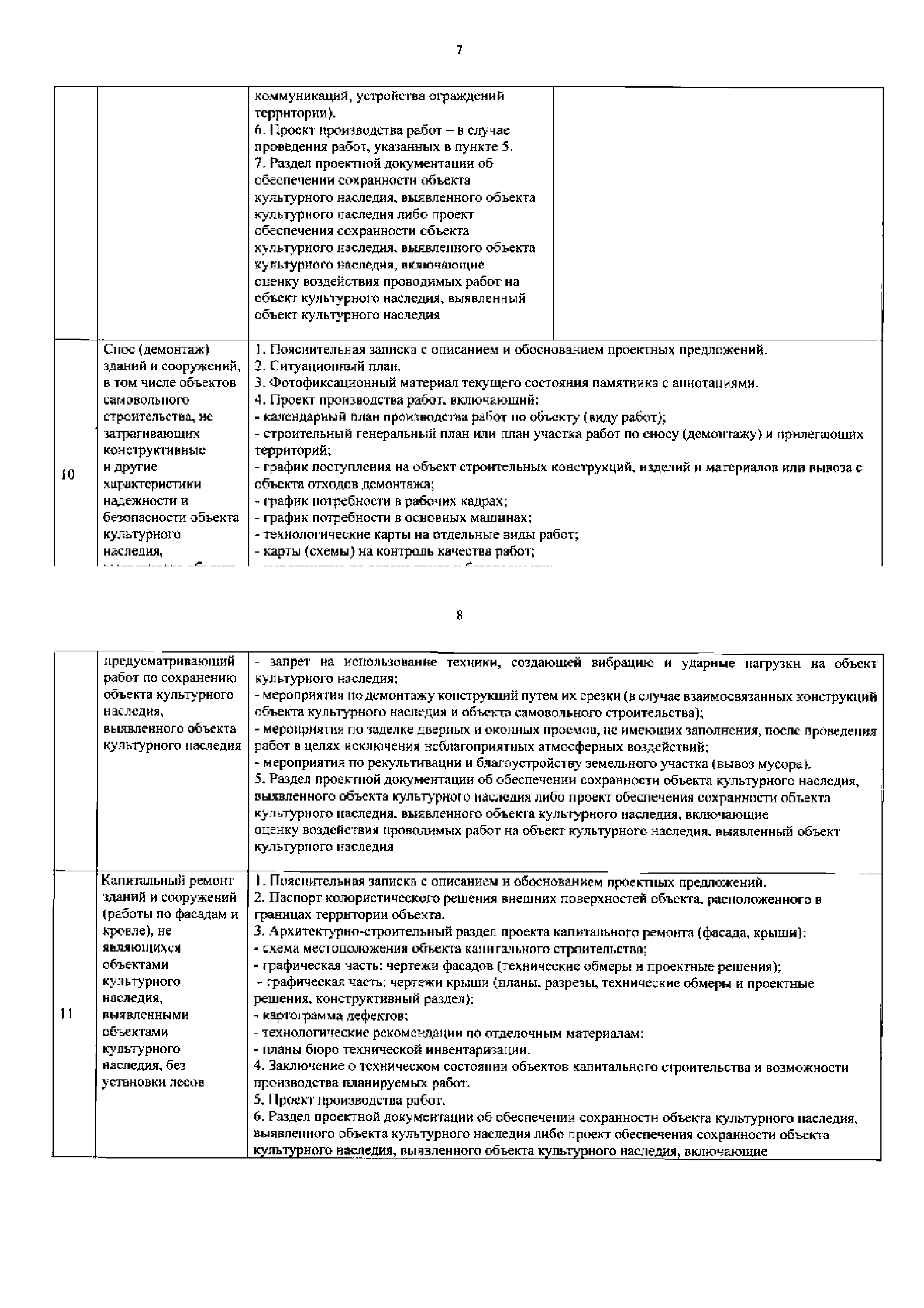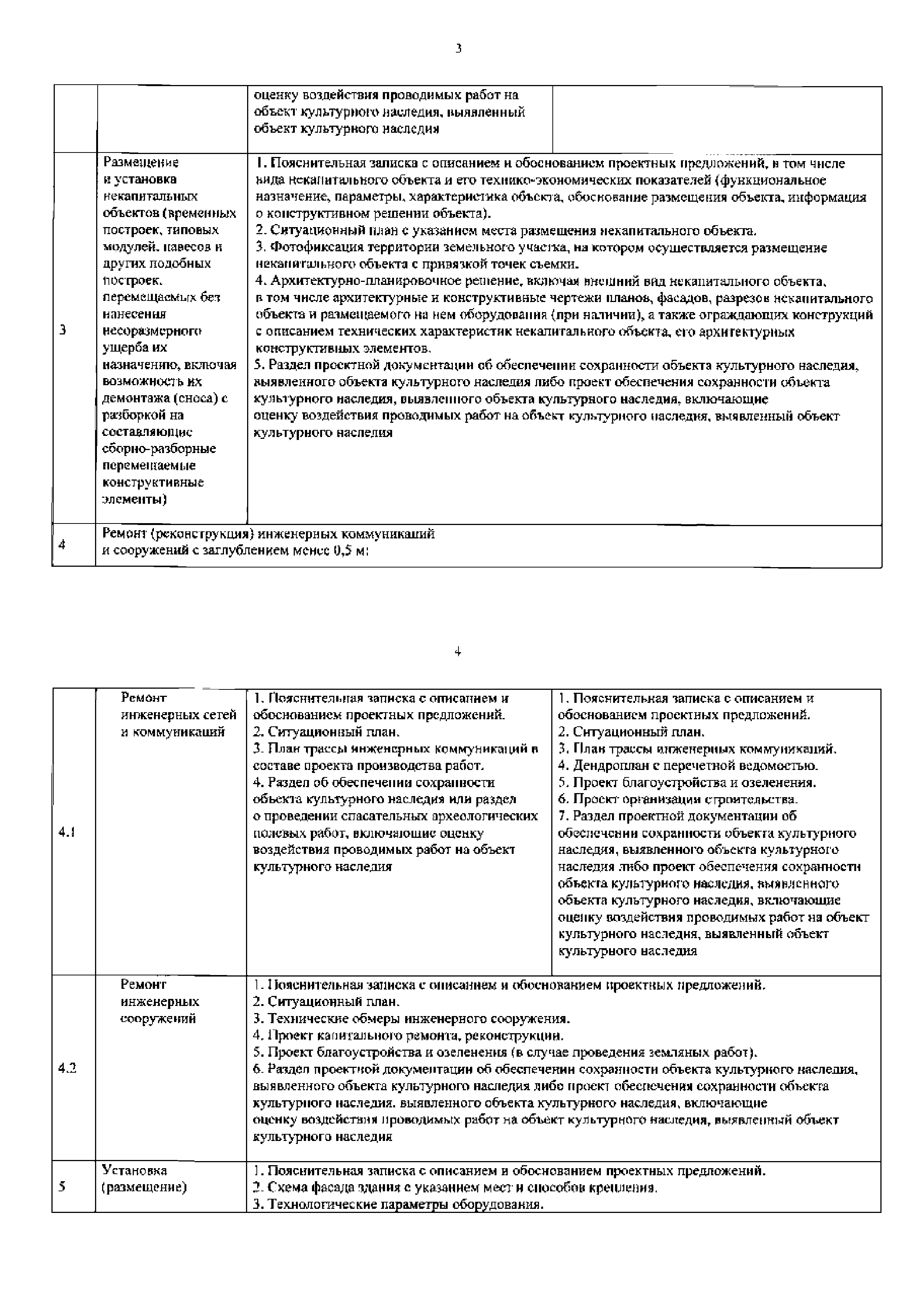 Перечень работ, требующих разработки разделов проектной документации об обеспечении сохранности объекта культурного наследия, выявленного объекта культурного наследия либо проекта обеспечения сохранности объекта культурного наследия, выявленного объекта культурного наследия при проведении изыскательских, проектных, земляных, строительных, мелиоративных, хозяйственных и иных работ в границах территории объекта культурного наследия, выявленного объекта культурного наследия либо на земельном участке, непосредственно связанном с земельным участком в границах территории объекта культурного наследия, выявленного объекта культурного наследия (за исключением работ, для проведения которых требуется получение разрешения на строительство, ордера (разрешения) на проведение земляных работ, установку временных ограждений, размещение временных объектов в городе Москве), и структура проектной документации, в том числе исходно-разрешительной документации, представляемой заявителем для согласования указанных разделов и проекта в зависимости от вида работ| Статус: | действует | | Название рус.: | Перечень работ, требующих разработки разделов проектной документации об обеспечении сохранности объекта культурного наследия, выявленного объекта культурного наследия либо проекта обеспечения сохранности объекта культурного наследия, выявленного объекта культурного наследия при проведении изыскательских, проектных, земляных, строительных, мелиоративных, хозяйственных и иных работ в границах территории объекта культурного наследия, выявленного объекта культурного наследия либо на земельном участке, непосредственно связанном с земельным участком в границах территории объекта культурного наследия, выявленного объекта культурного наследия (за исключением работ, для проведения которых требуется получение разрешения на строительство, ордера (разрешения) на проведение земляных работ, установку временных ограждений, размещение временных объектов в городе Москве), и структура проектной документации, в том числе исходно-разрешительной документации, представляемой заявителем для согласования указанных разделов и проекта в зависимости от вида работ | | Дата добавления в базу: | 01.02.2017 | | Дата актуализации: | 01.01.2021 | | Дата введения: | 18.04.2016 | | Утверждён: | 18.04.2016 Департамент культурного наследия г. Москвы (241)