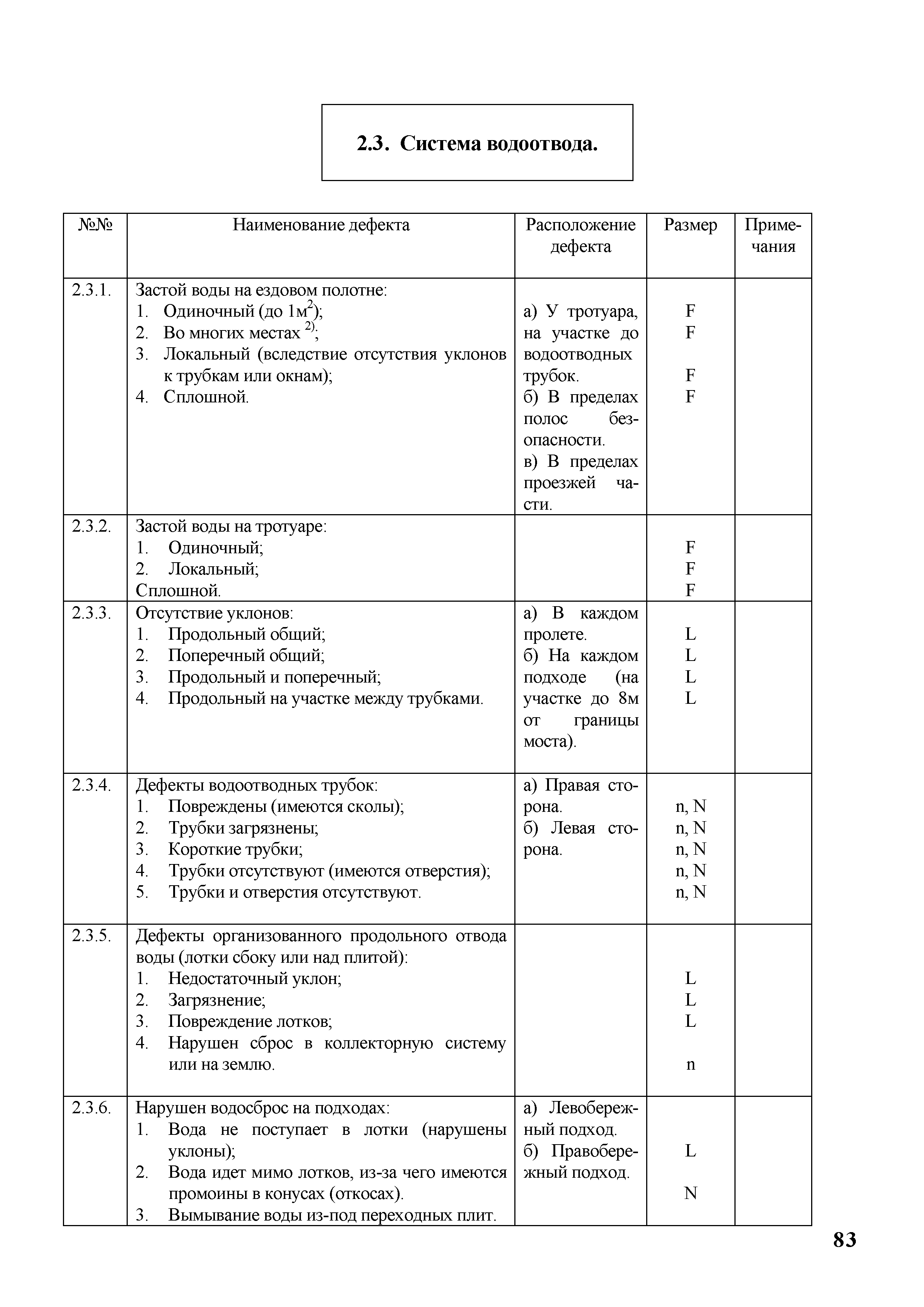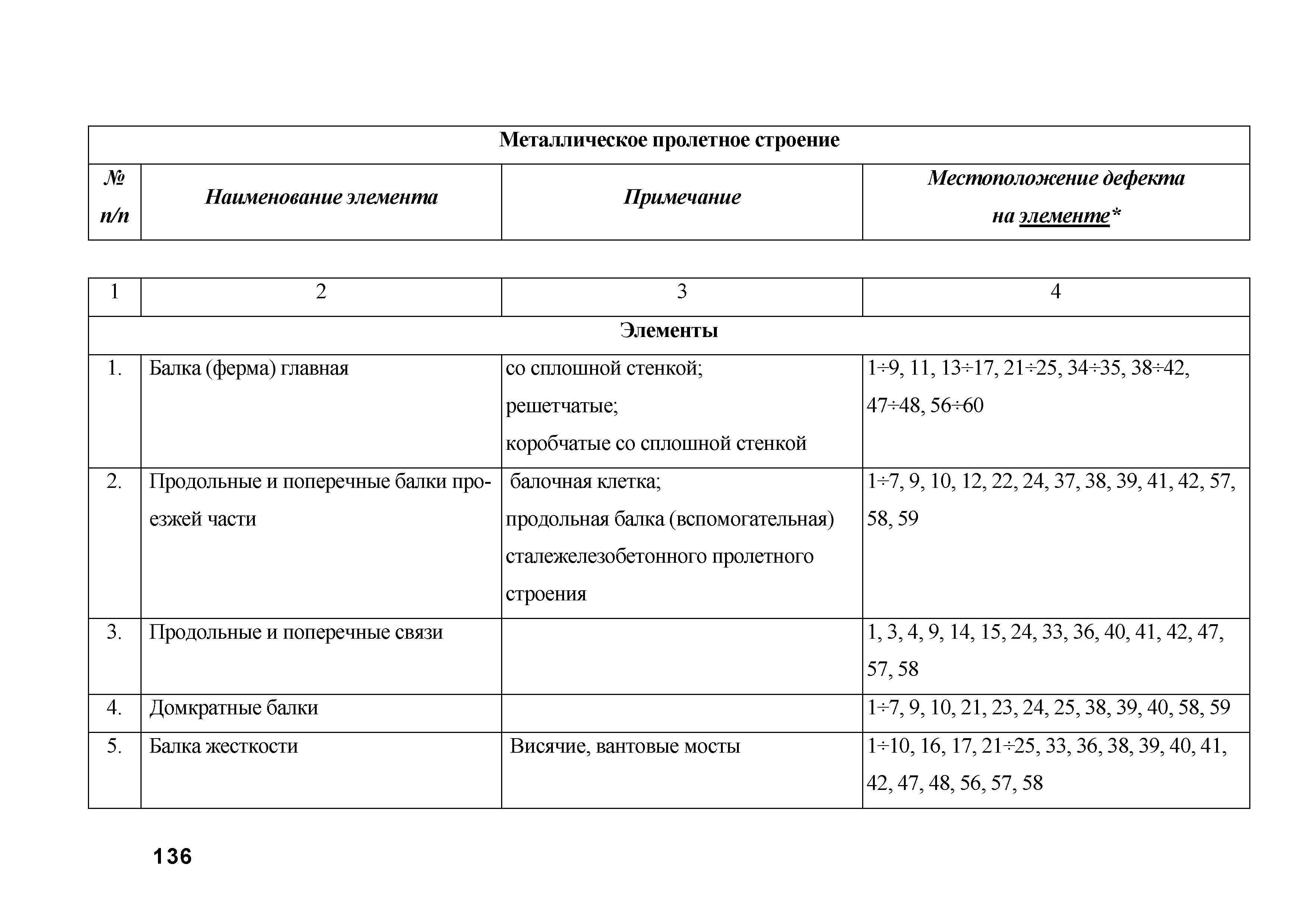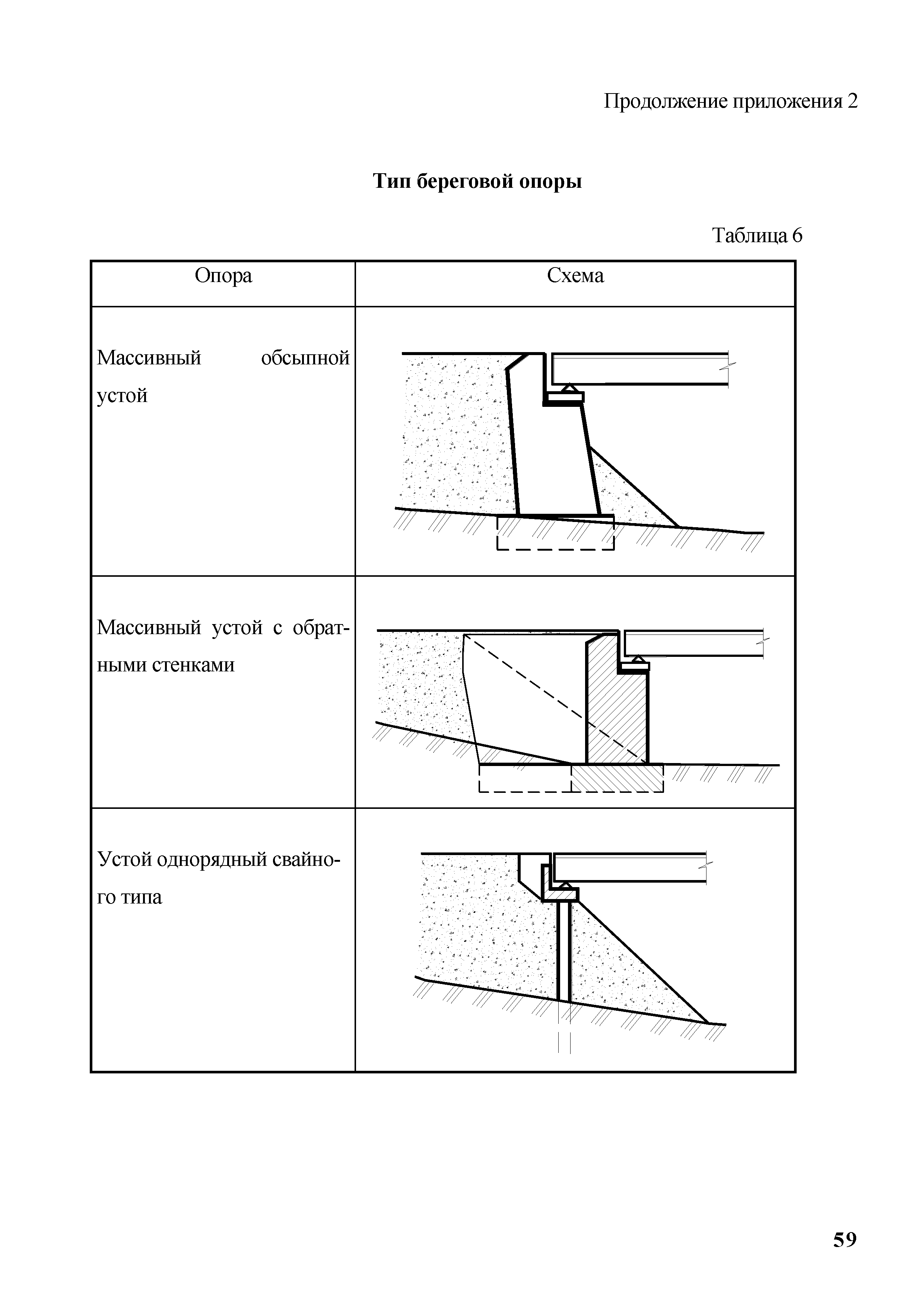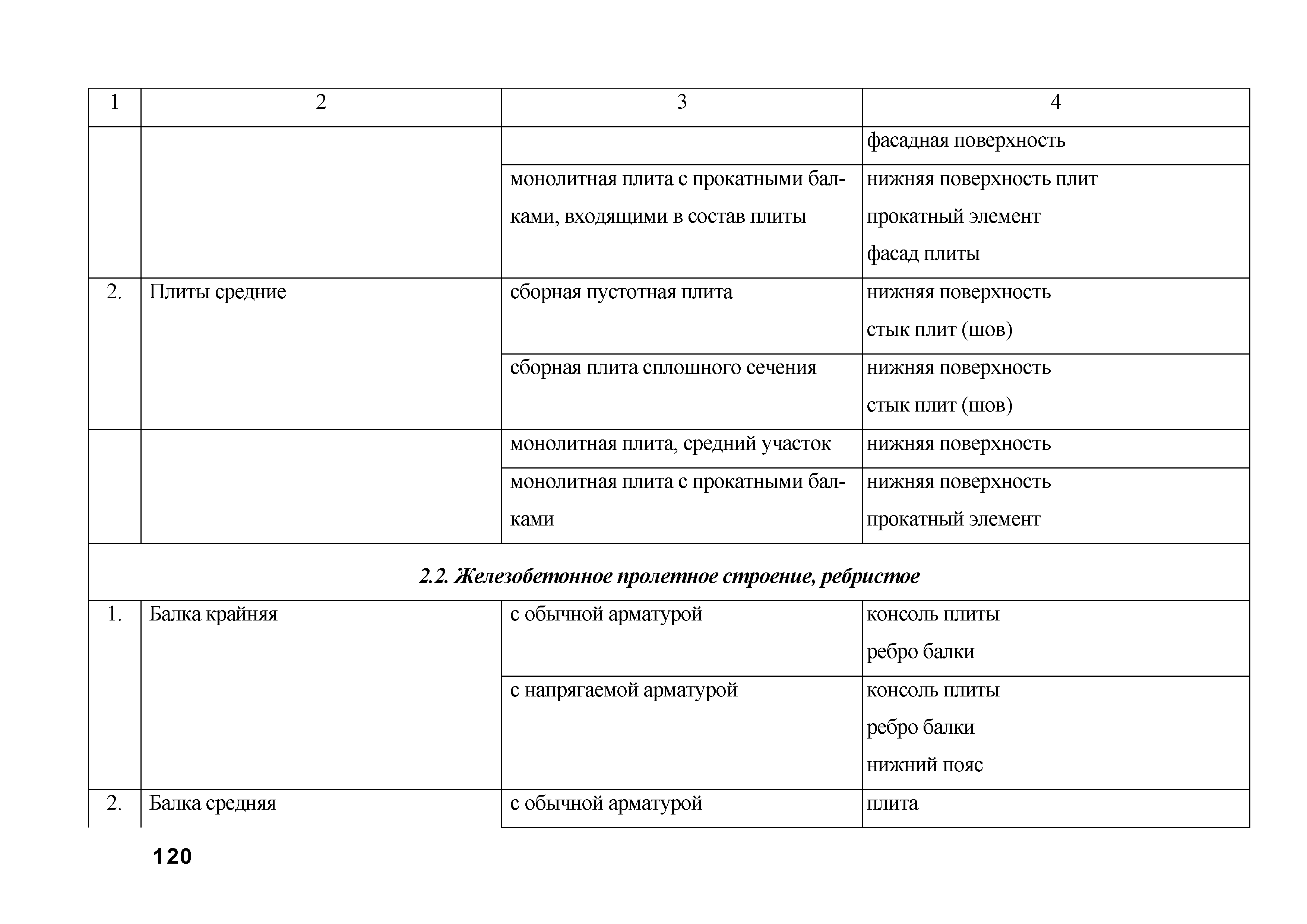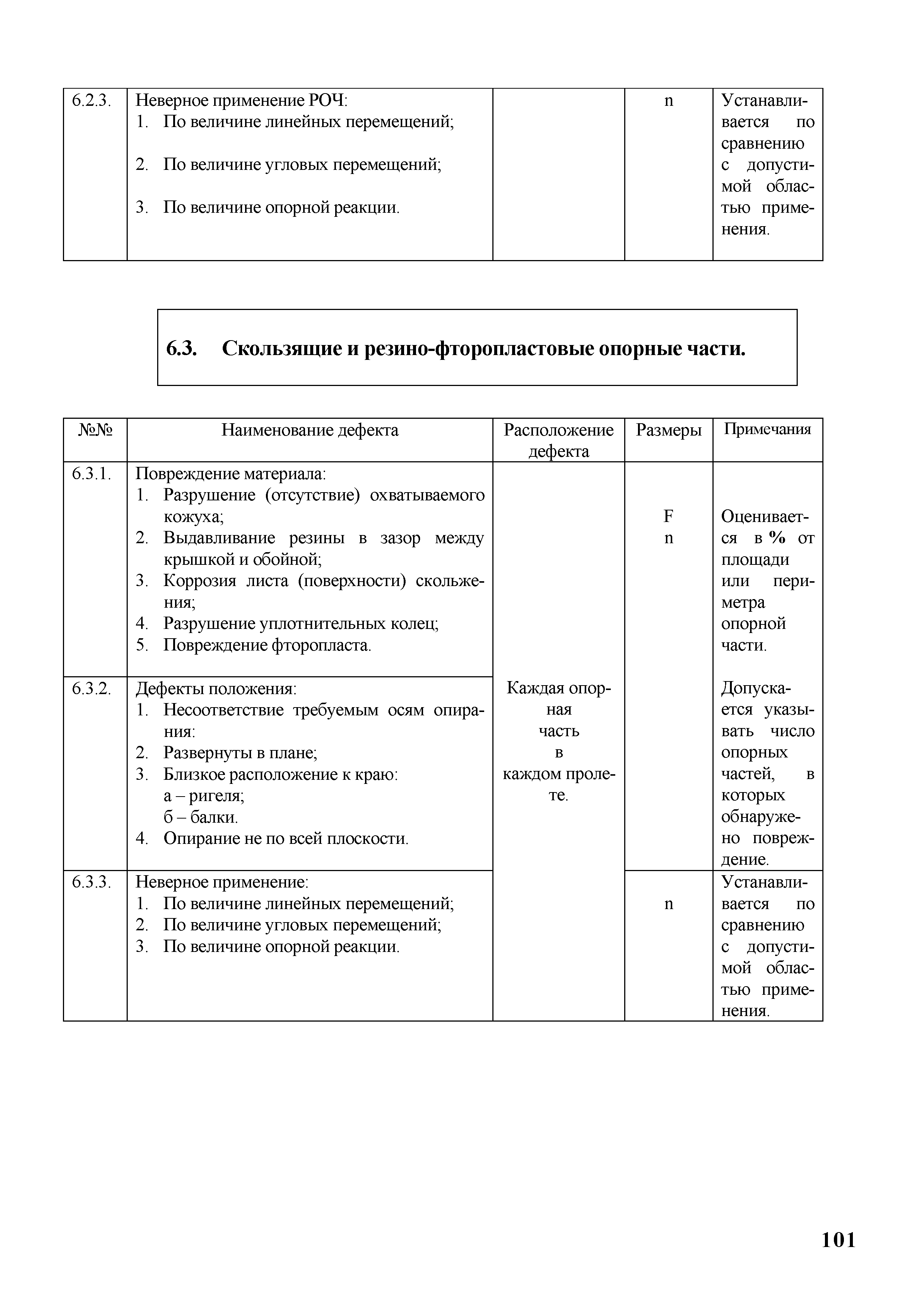 | Оглавление: | 1. Предисловие 2. Общие положения 3. Формы паспорта, порядок диагностики и записи информации. Пояснения к формам паспорта 3.1. Титульный лист паспорта 3.2. Форма 1. "Общие сведения". Пояснения к форме 1 3.3. Форма 2. "Пролетное строение". Пояснения к форме 2 3.4. Форма 3. "Опоры". Пояснения к форме 3 3.5. Форма 4. "Список технической документации". Пояснения к форме 4 3.6. Форма 5. "Ведомость дефектов". Пояснения к форме 5 3.7. Форма 6. "Состояние сооружения". Пояснения к форме 6 3.8. Форма Д. "Дополнительная информация". Пояснения к форме "Д" 3.9. Пояснительная записка, пояснения Приложение 1. Перечень федеральных округов Приложение 2. Таблицы для заполнения форм паспорта Приложение 3. Перечень дефектов, включаемых в форму 5 Приложение 4. Каталог конструкций и элементов Приложение 5. Оценка состояния Приложение 6. Документы, используемые при заполнении форм паспорта |